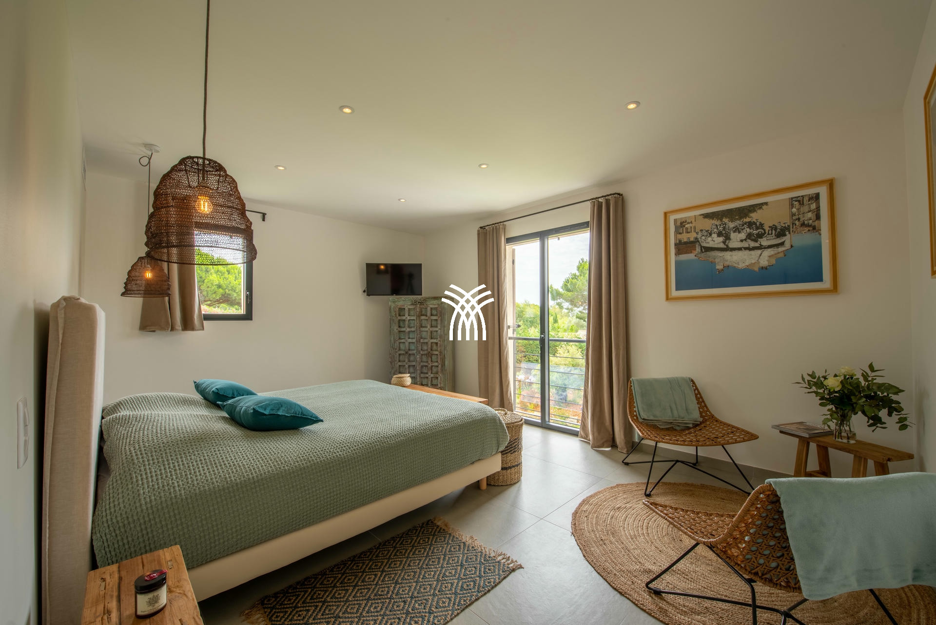 With its six bedrooms and six bathrooms, it can accommodate up to 12 travelers in absolute comfort. The vast living spaces, tastefully decorated, harmoniously open onto the exterior, where a heated 10x5 meter pool, a pool house with a bar, and an outdoor kitchen create an ideal atmosphere for fully enjoying beautiful days.