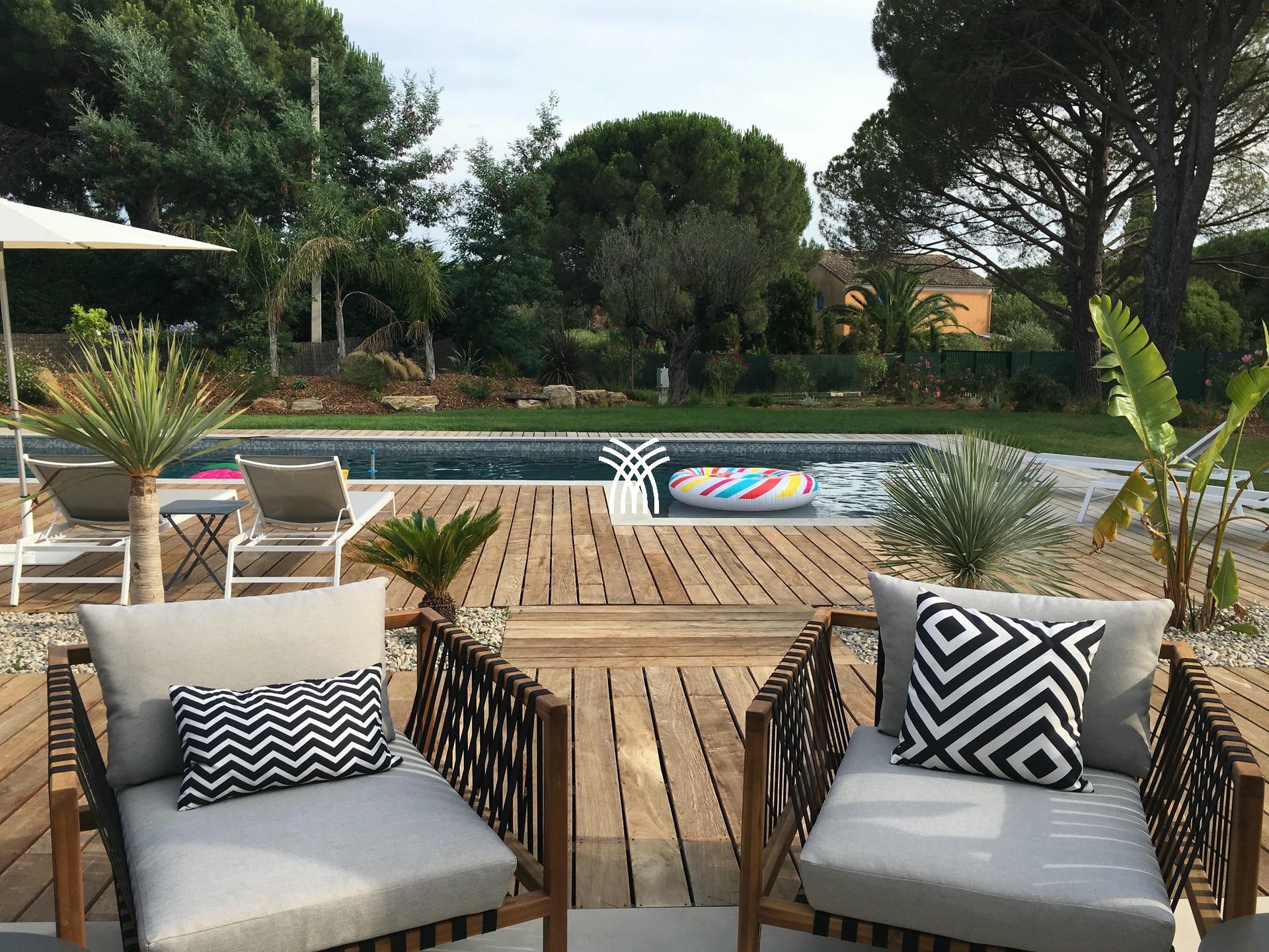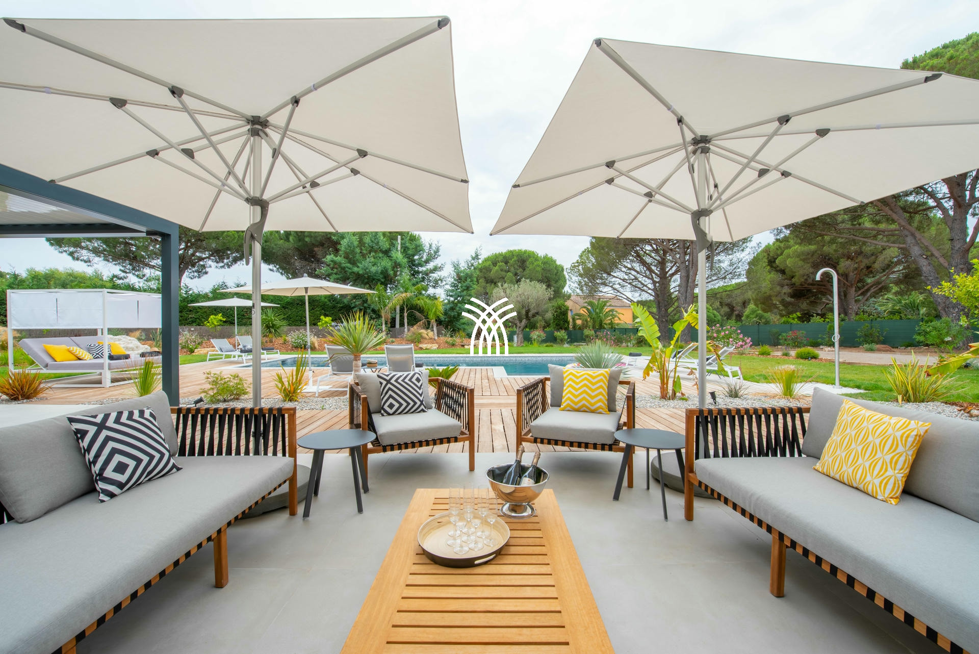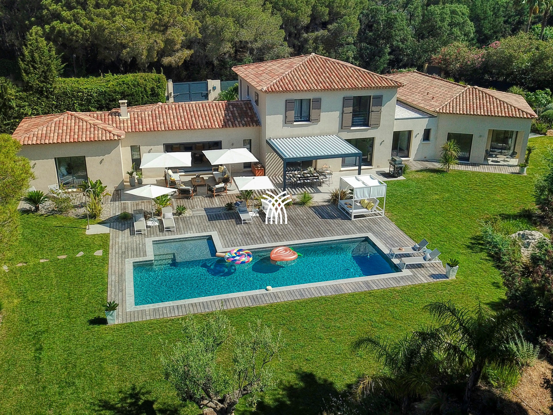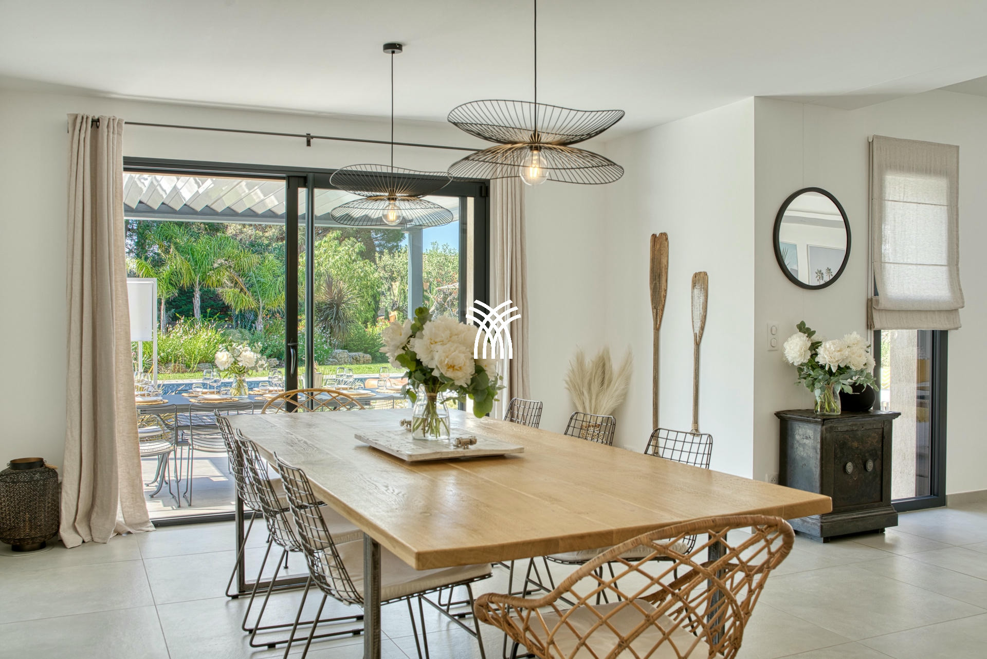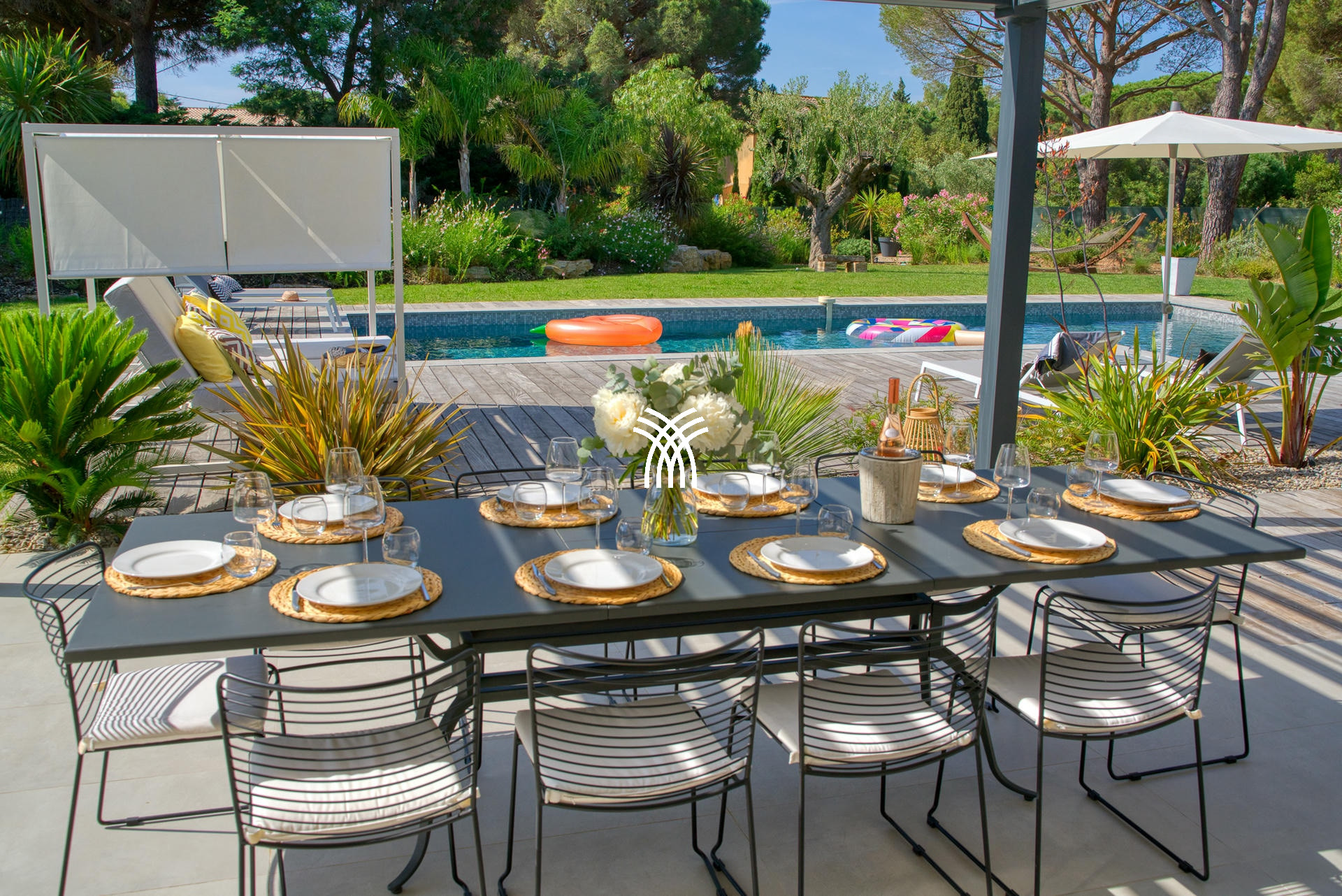 Outside, the pool surrounded by large terraces invites relaxation under the Saint-Tropez sun, while the shaded dining areas and barbecue offer a perfect space for family or friends' lunches and dinners.