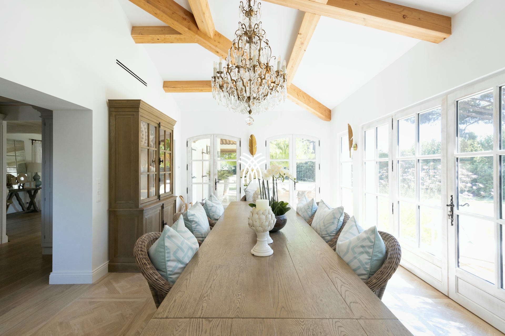 The villa is appealing with its high-end amenities: staff room, large laundry room, cold room, barbecue, fireplace, air conditioning, video surveillance system, Wi-Fi, as well as access to the domain's tennis courts. Children are welcome in a secure and privileged environment, with a sea view in the background.