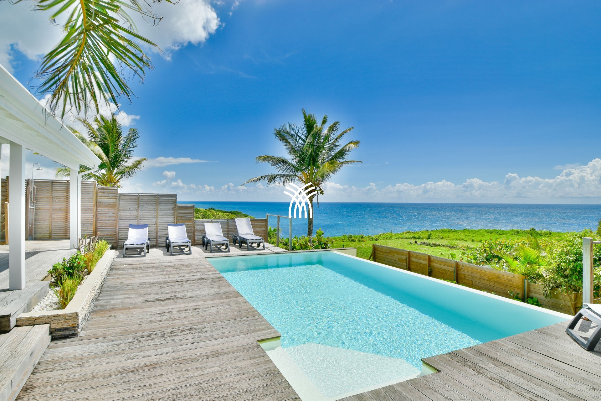 Located in Sainte-Anne, Ocean Guadeloupe villa offers a dream setting with its 180 ° view of the ocean and the beach of Caravelle. With a capacity up to eight people, this luxurious villa has four air-conditioned bedrooms all with sea view as well as three bathrooms with shower, one with bathtub. The semi-independent kitchen gives way to the living room, with the ocean as a backdrop. Perched above the cliff, let yourself be tempted by Ocean Guadeloupe villa, perfect residence for a stay under the sun.