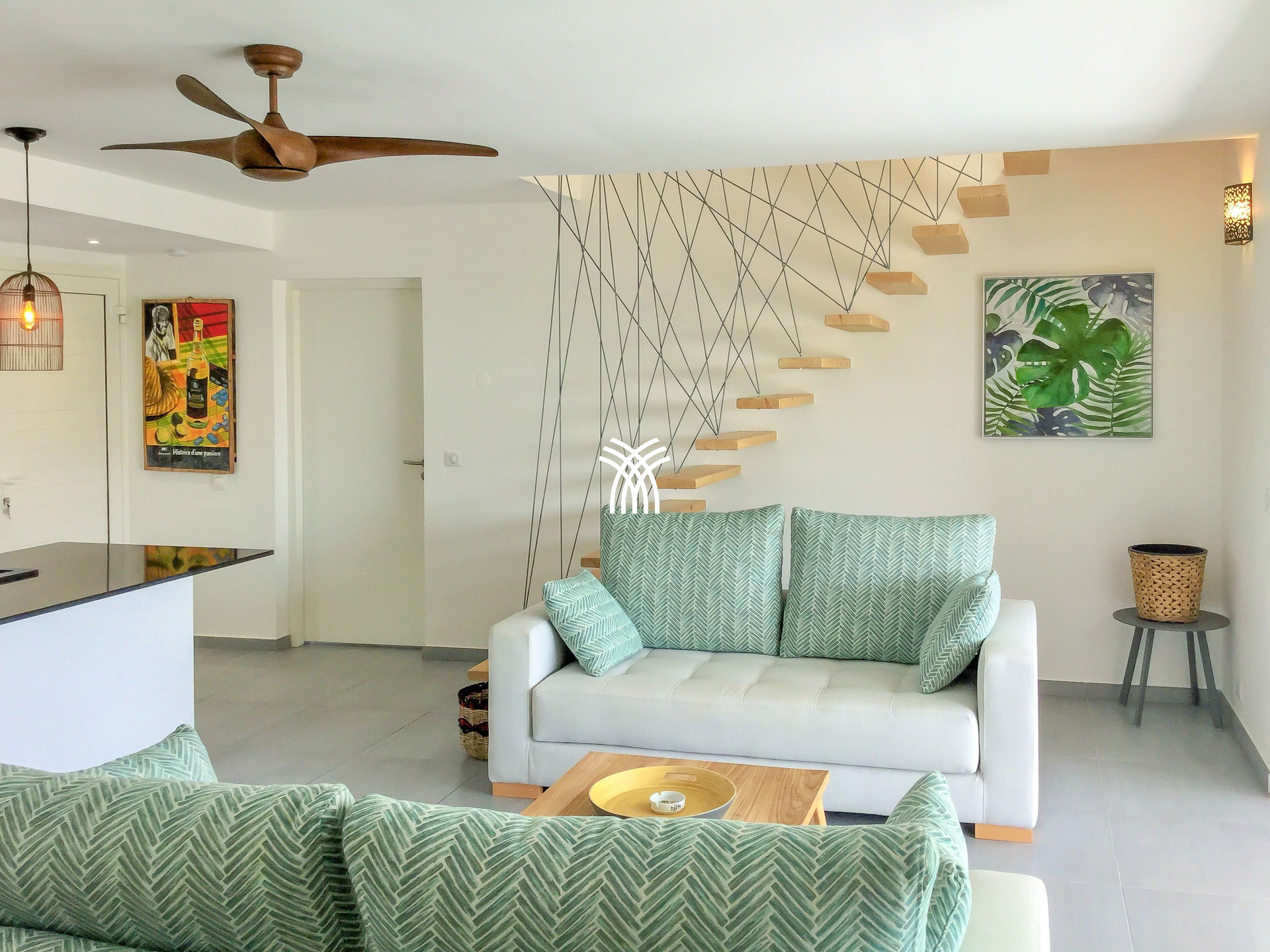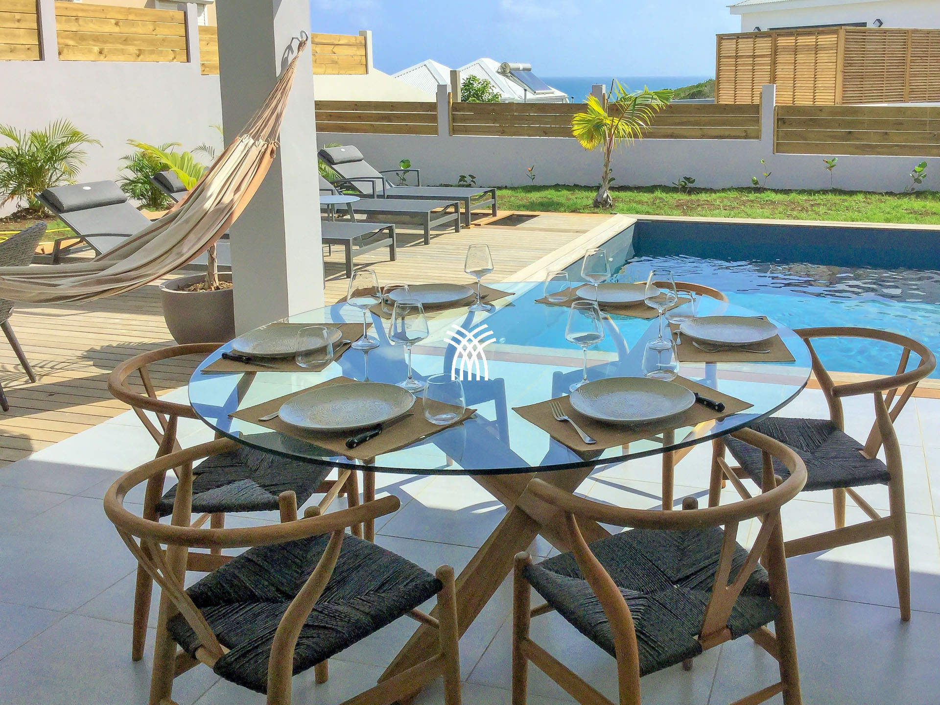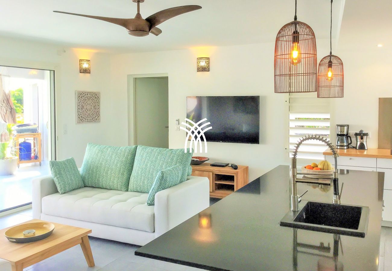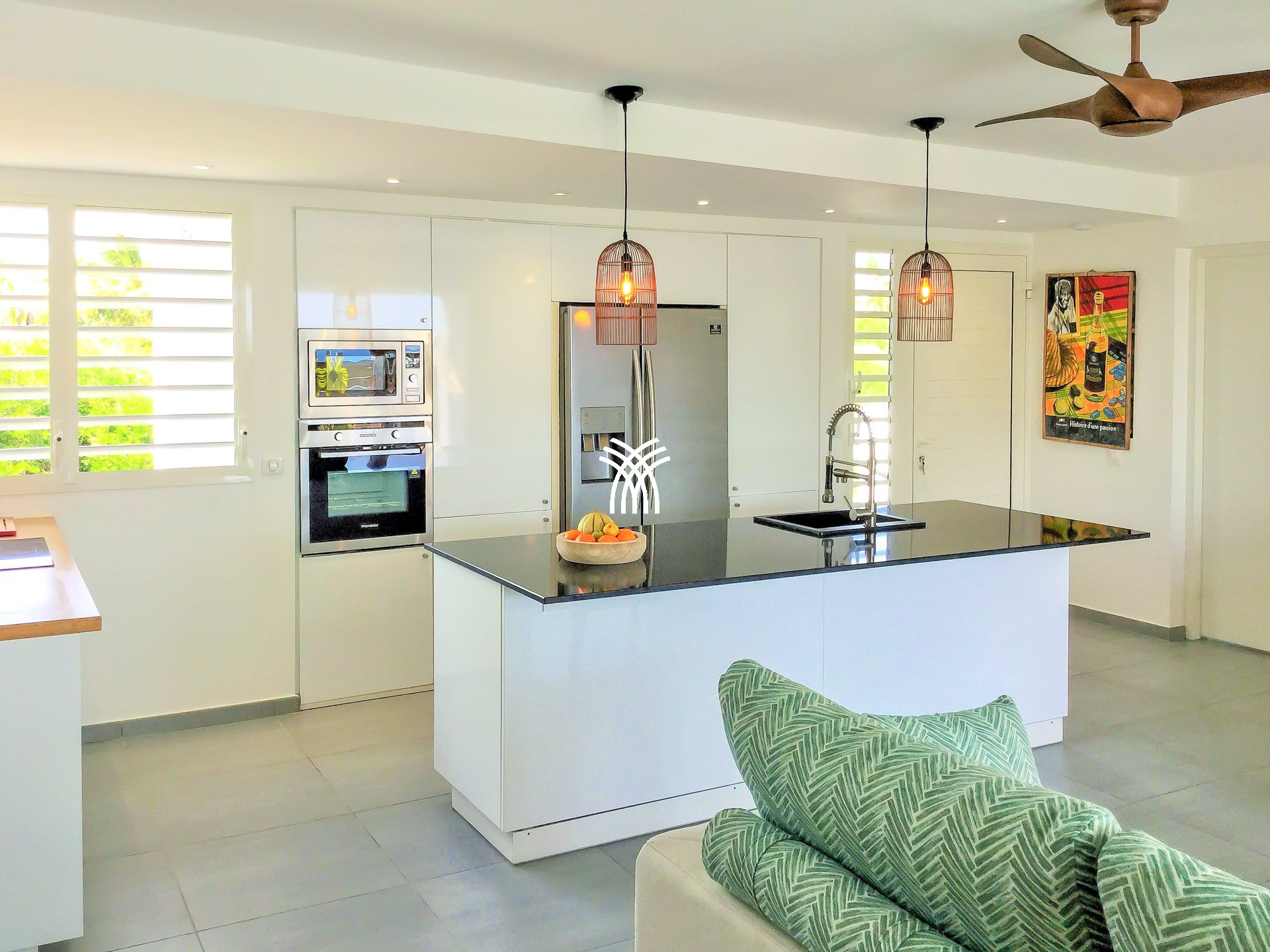 Built in 2020, the villa is located in a quiet environment at the end of a residential cul-de-sac, a few steps from a 14-kilometre coastal path lined with preserved beaches such as Anse à Saint, Anse à Jacques or Petit Havre. Its central location in Sainte-Anne makes it a strategic starting point for exploring all of Guadeloupe, whether towards the beaches of Grande-Terre or the tropical landscapes of Basse-Terre.
