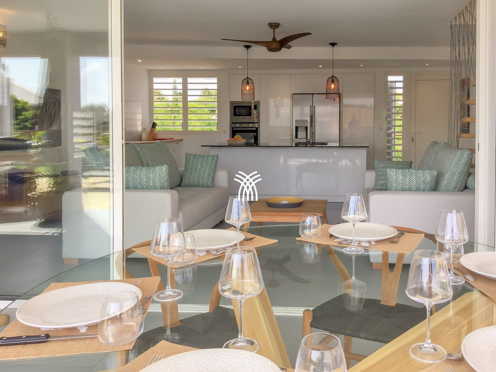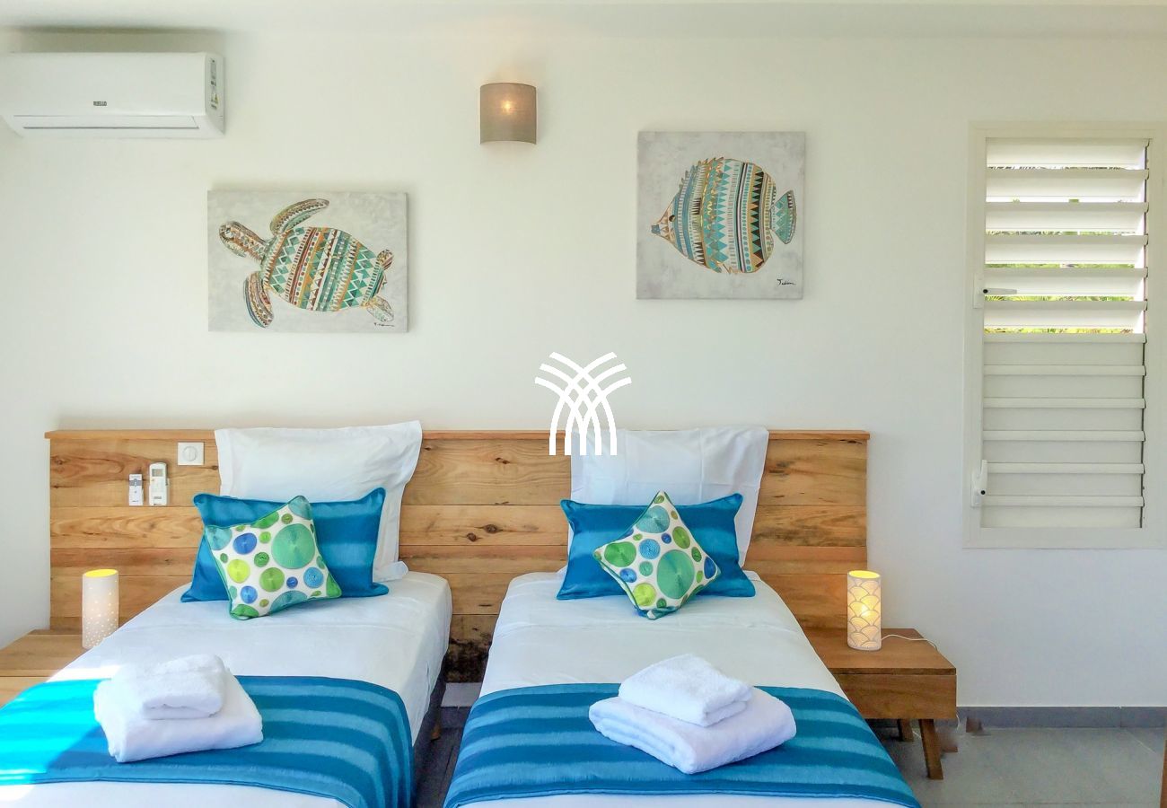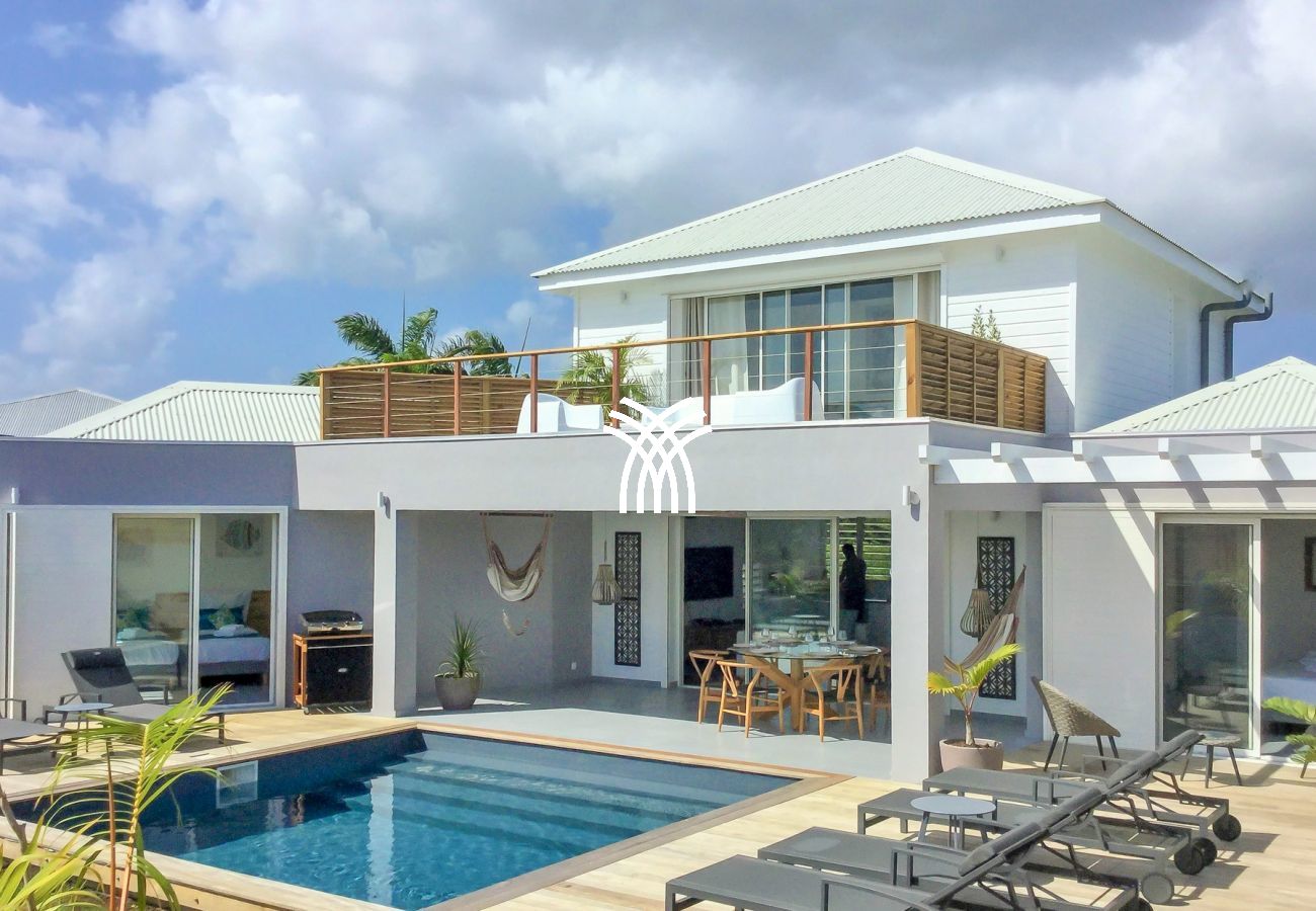 Nestled in the heart of Sainte-Anne, one of the most sought-after communes of Grande-Terre, Villa Cocoon embodies the elegance of a charming villa rental in Guadeloupe. Perfect for family holidays or trips with friends, this contemporary 140 m² house offers absolute comfort in a peaceful and refined atmosphere. Designed to accommodate up to 7 people (with a maximum of 6 adults), it features three spacious suites, each with an en-suite bathroom, air conditioning, walk-in wardrobe and study.