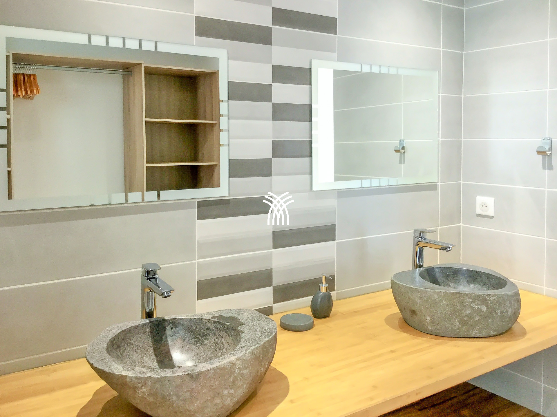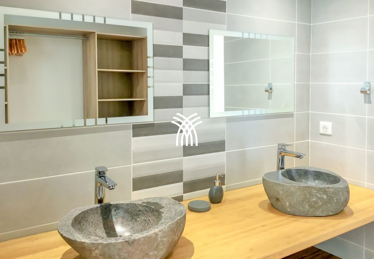 The interior decoration, refined and carefully crafted, highlights brand new, design-oriented, and particularly comfortable furniture. You will find a welcoming living room with television and satellite channels, as well as a modern kitchen perfectly equipped, including an American refrigerator, a Nespresso machine, an oven, a dishwasher, and everything necessary for your meals in complete autonomy. A utility room with a washing machine completes the equipment.