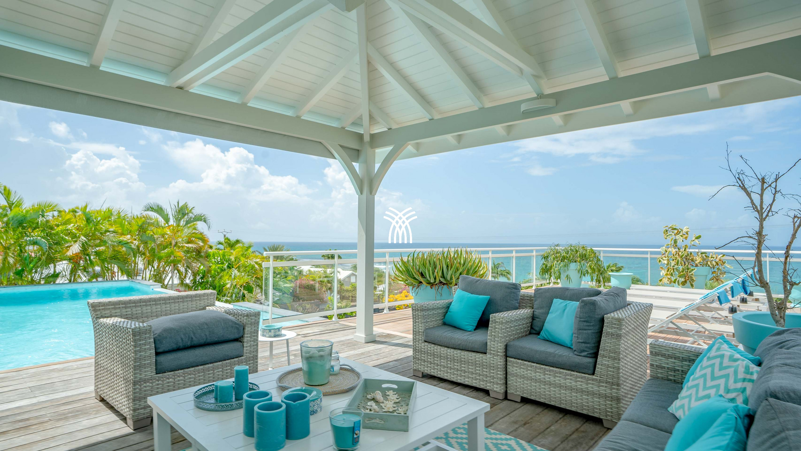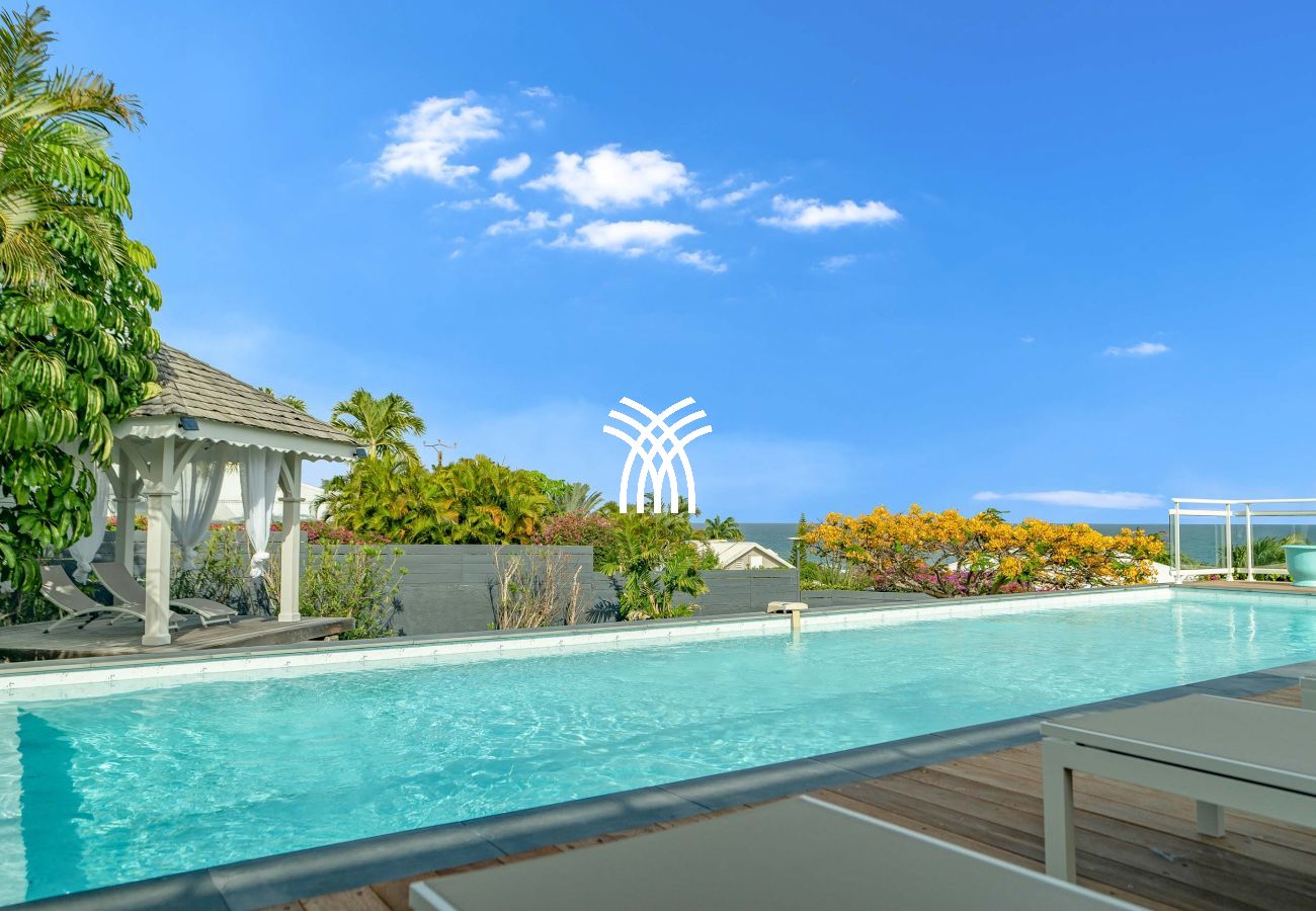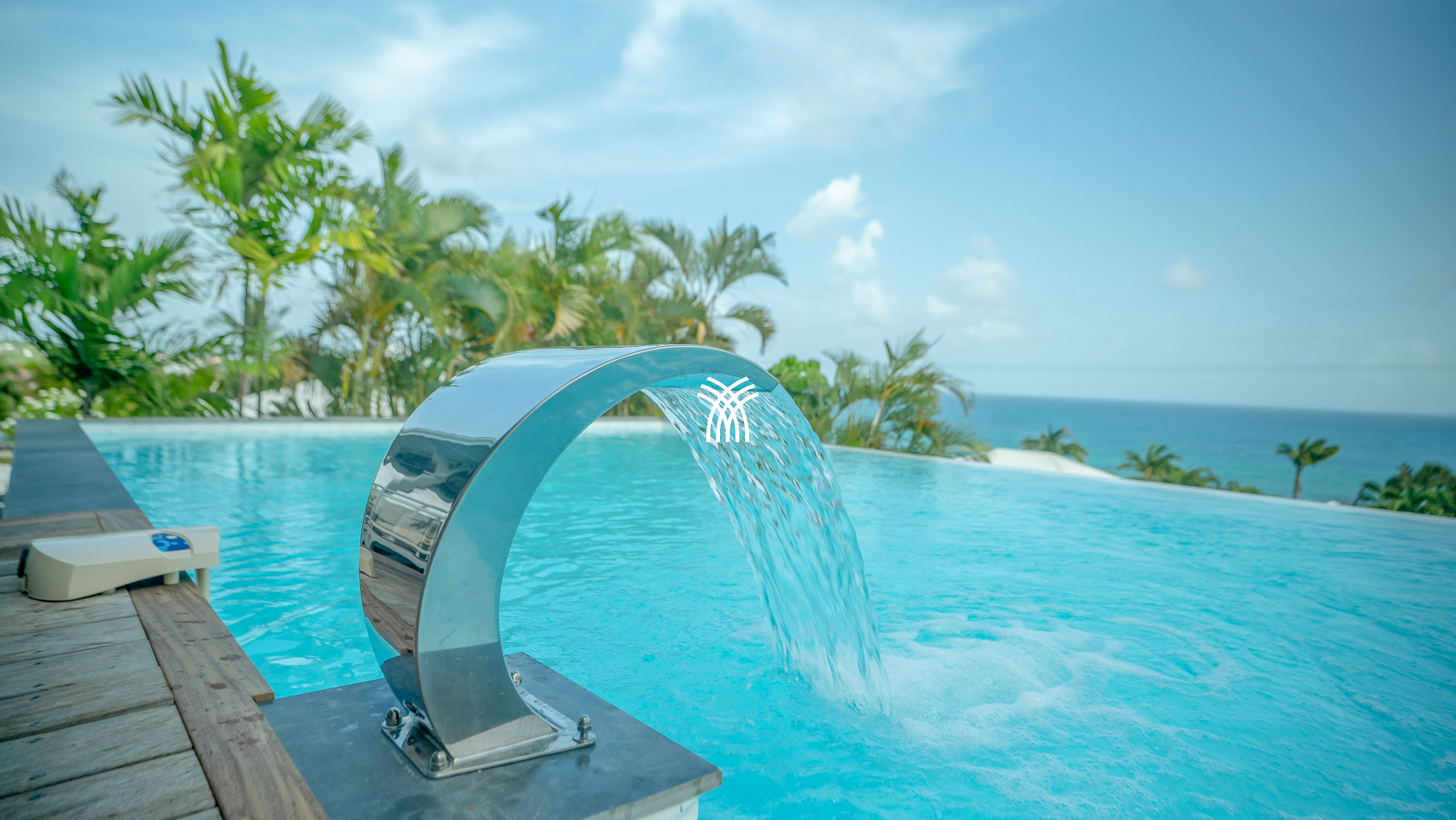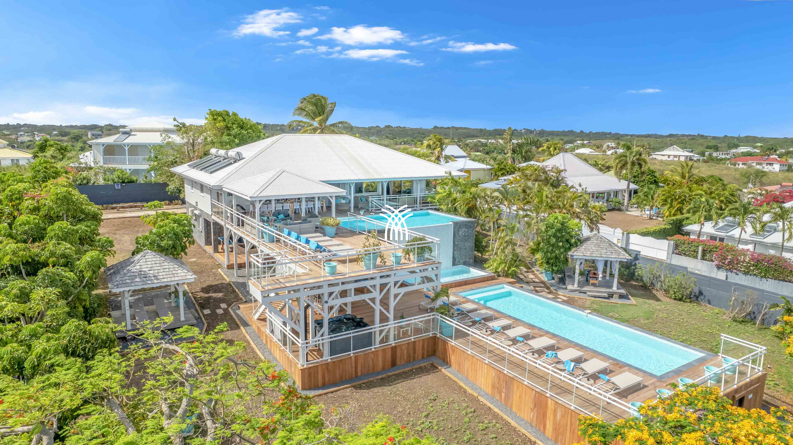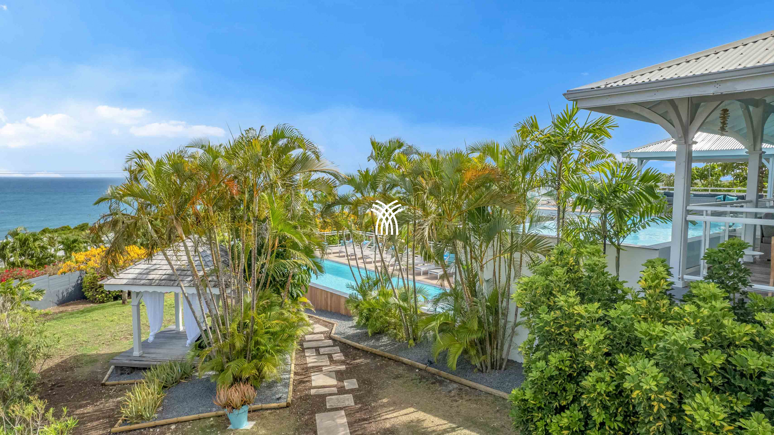 Outside, the villa reveals a true haven of peace with its three swimming pools, including an infinity pool with a breathtaking view of the ocean. Imagine starting your days facing a spectacular 180° view of Marie-Galante, Les Saintes and Basse-Terre, or relaxing in the jacuzzi at the end of the day, lulled by the trade winds. The children's pool also guarantees safe play moments for the little ones, while the petanque court promises convivial moments under the Caribbean sun.