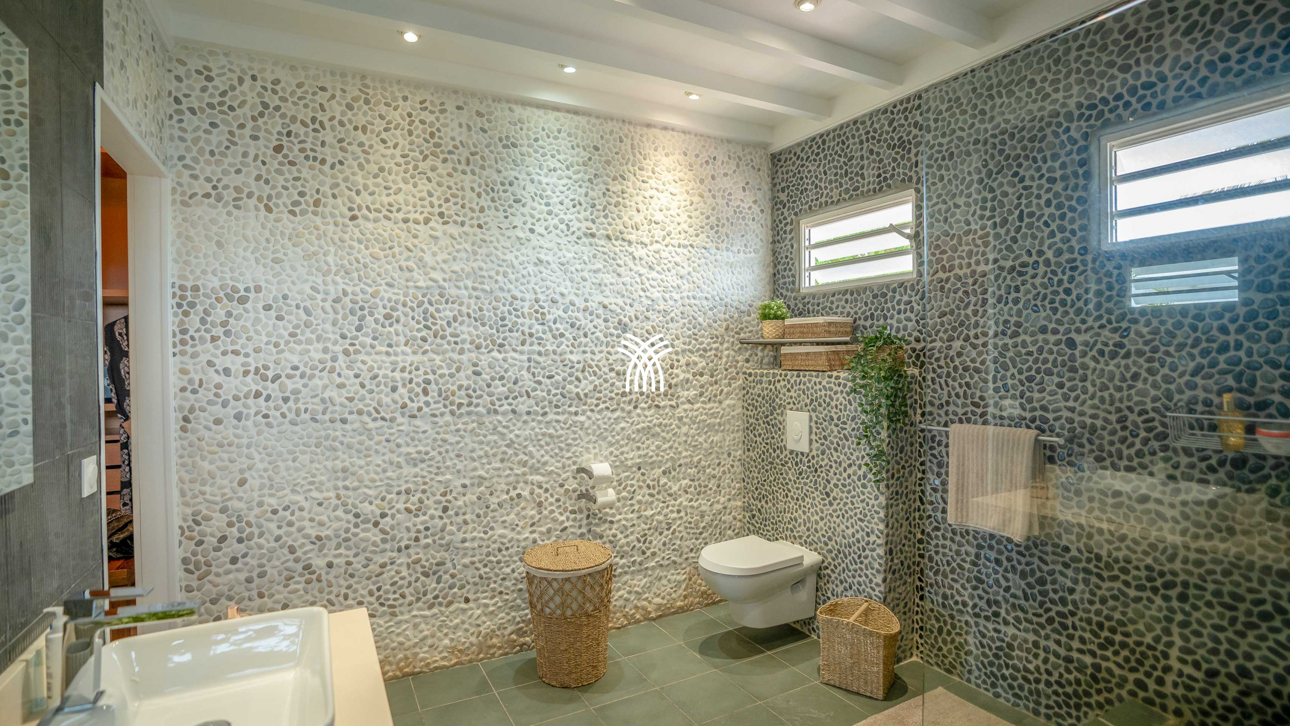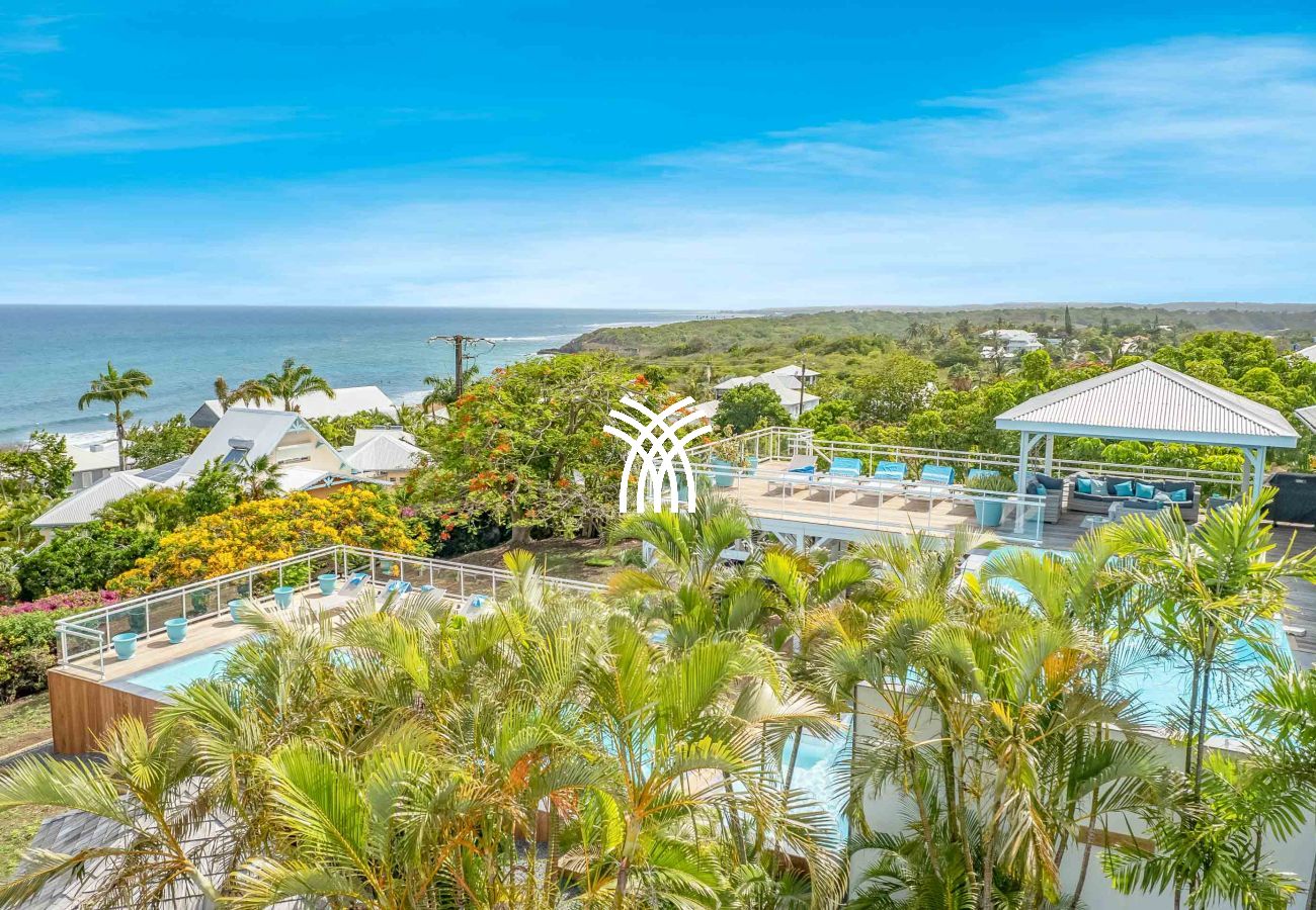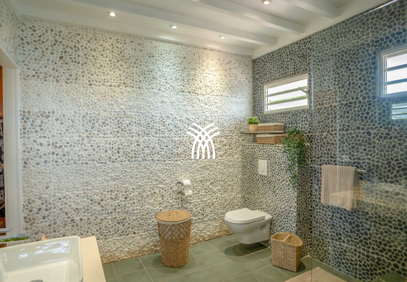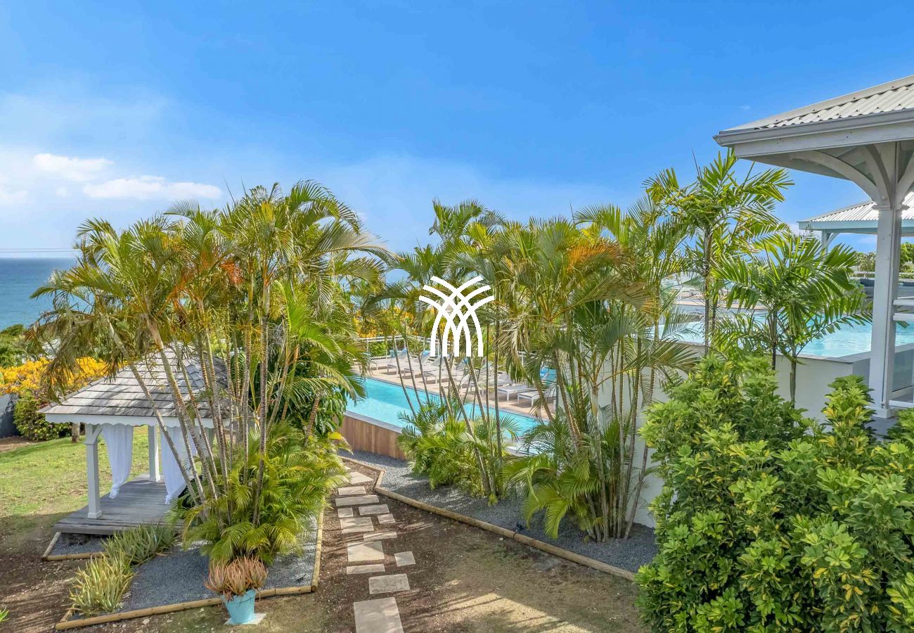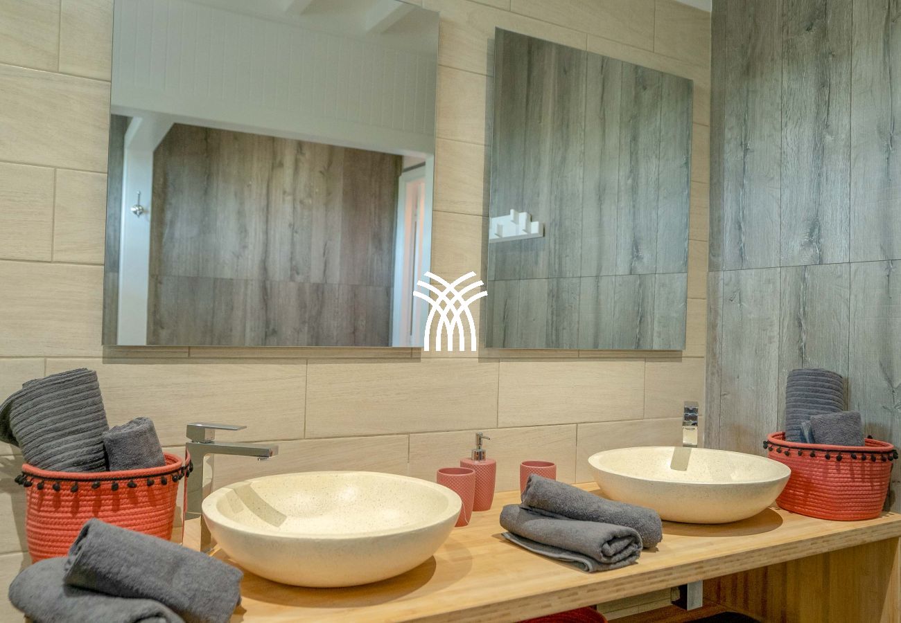 Outside, the villa reveals a true haven of peace with its three swimming pools, including an infinity pool with a breathtaking view of the ocean. Imagine starting your days facing a spectacular 180° view of Marie-Galante, Les Saintes and Basse-Terre, or relaxing in the jacuzzi at the end of the day, lulled by the trade winds. The children's pool also guarantees safe play moments for the little ones, while the petanque court promises convivial moments under the Caribbean sun.