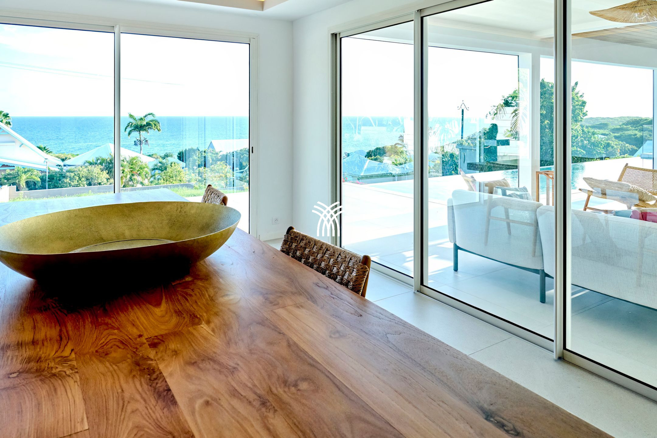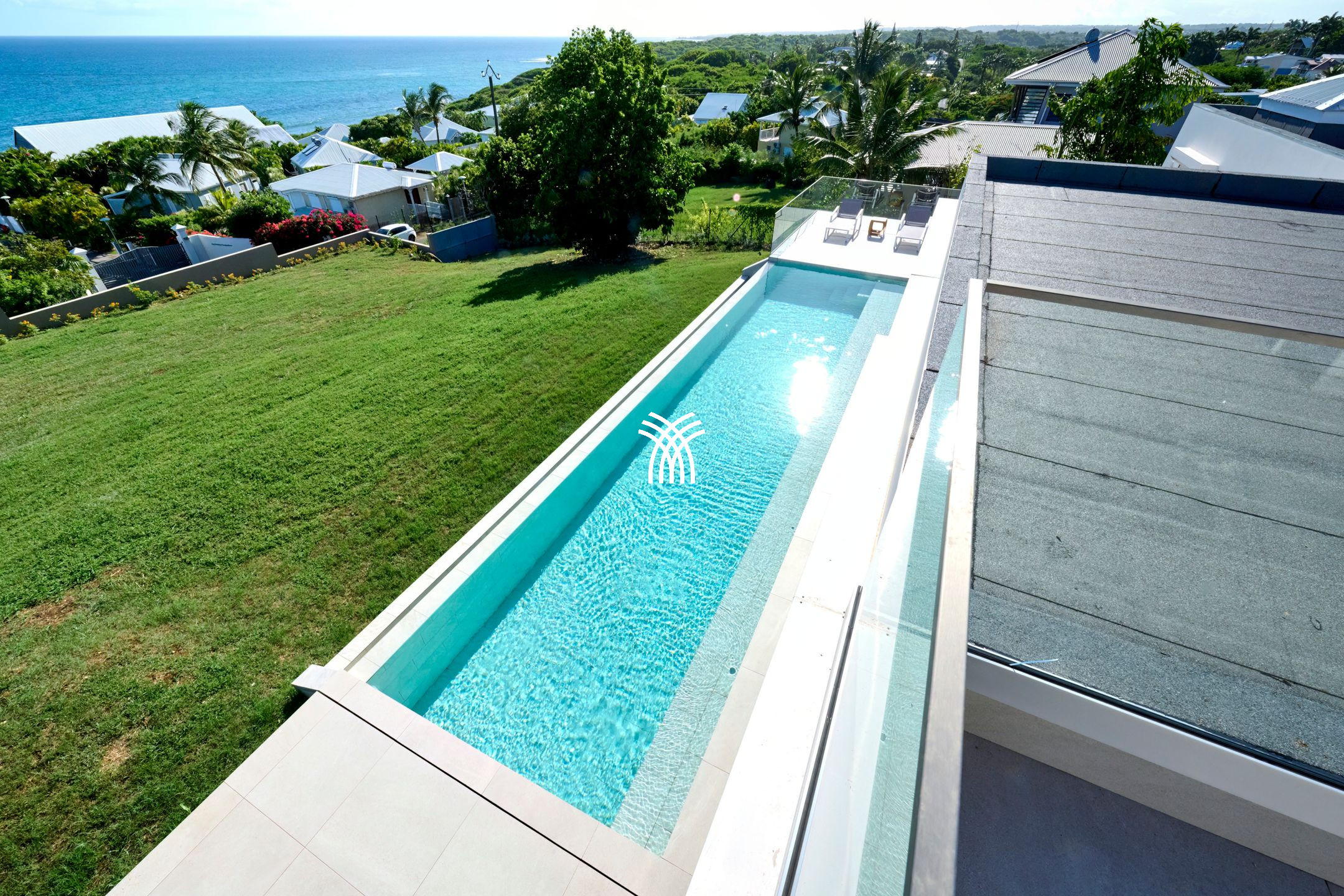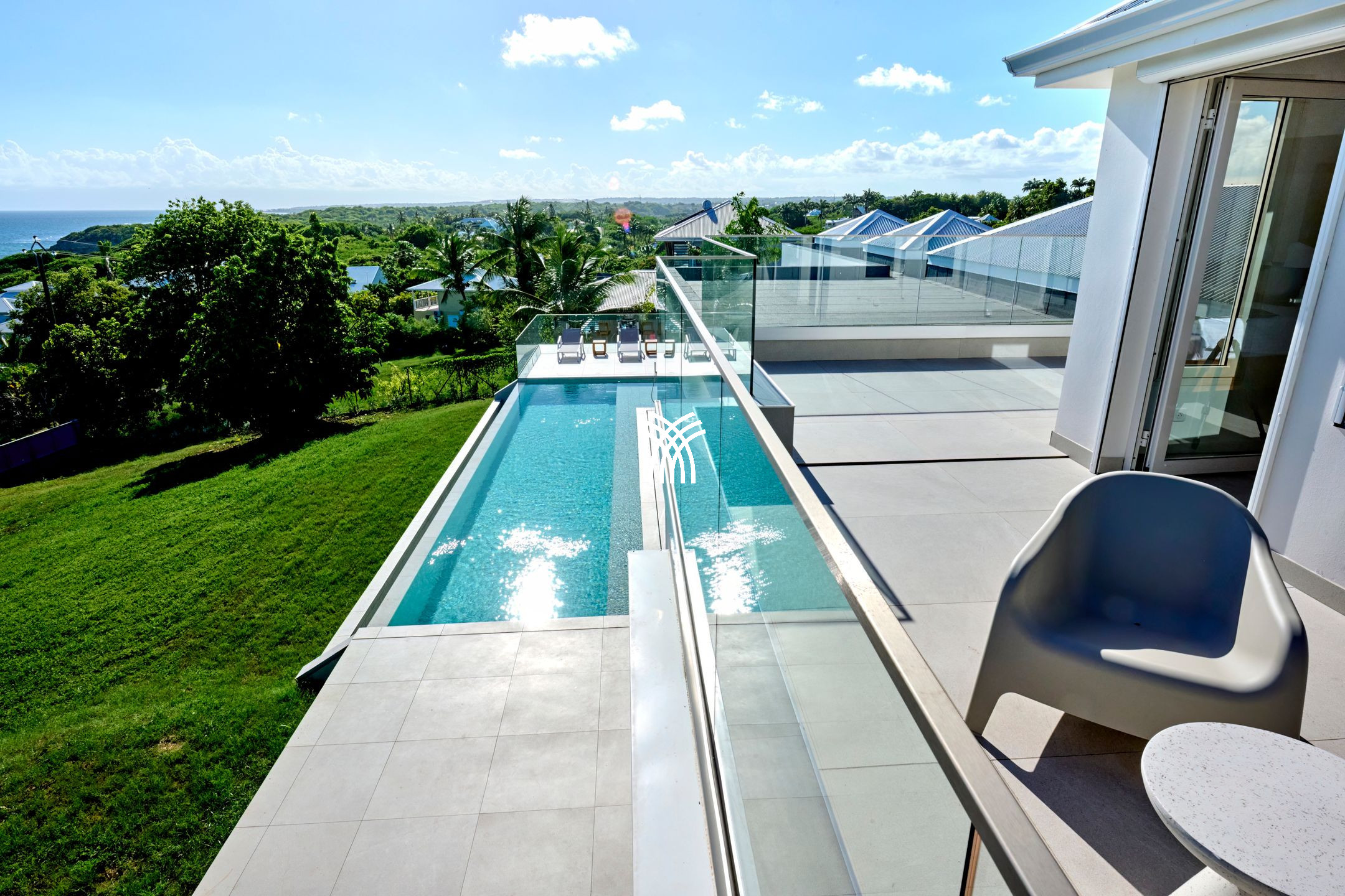 Villa Yin and Yang Guadeloupe with an area of 300m2 and with a deck of 125 m2 is equipped with modern and high-end materials. With breathtaking views of the island of Marie-Galante, Villa Yin and Yang Guadeloupe is also perfectly exposed, trade winds allow it to be always ventilated.