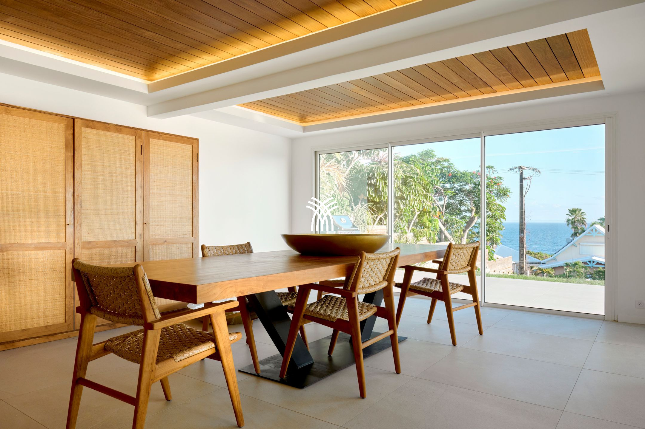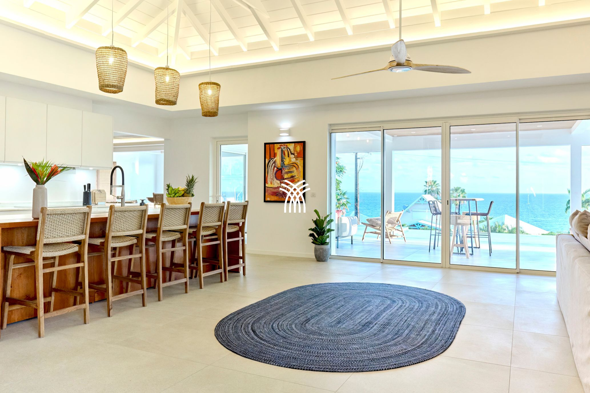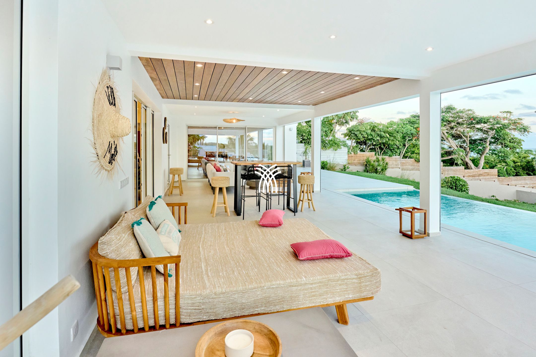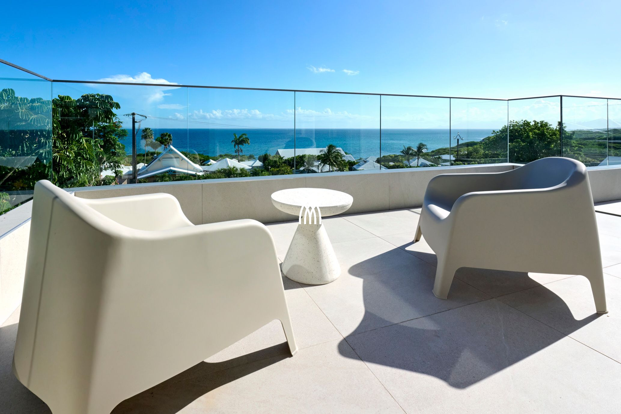 Villa Yin and Yang Guadeloupe with an area of 300m2 and with a deck of 125 m2 is equipped with modern and high-end materials. With breathtaking views of the island of Marie-Galante, Villa Yin and Yang Guadeloupe is also perfectly exposed, trade winds allow it to be always ventilated.