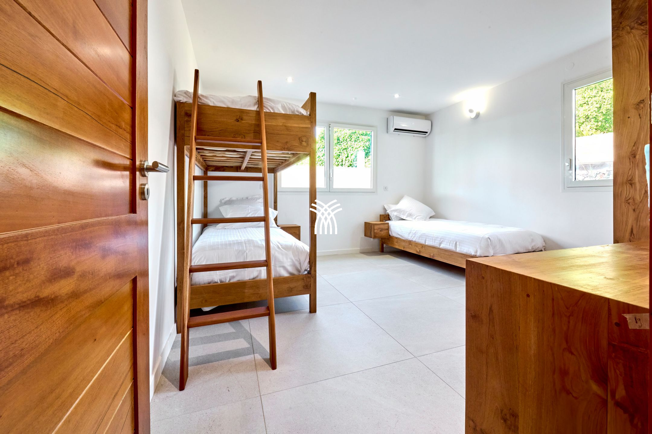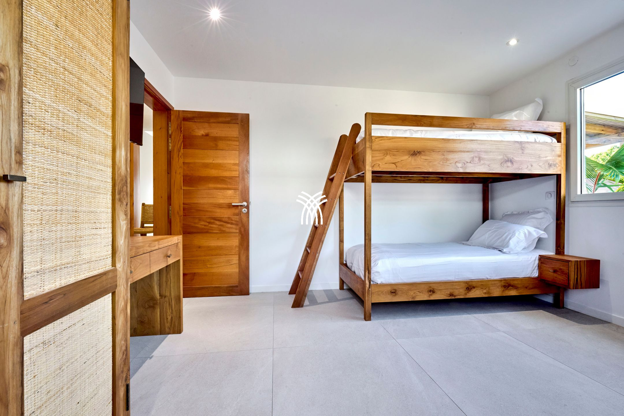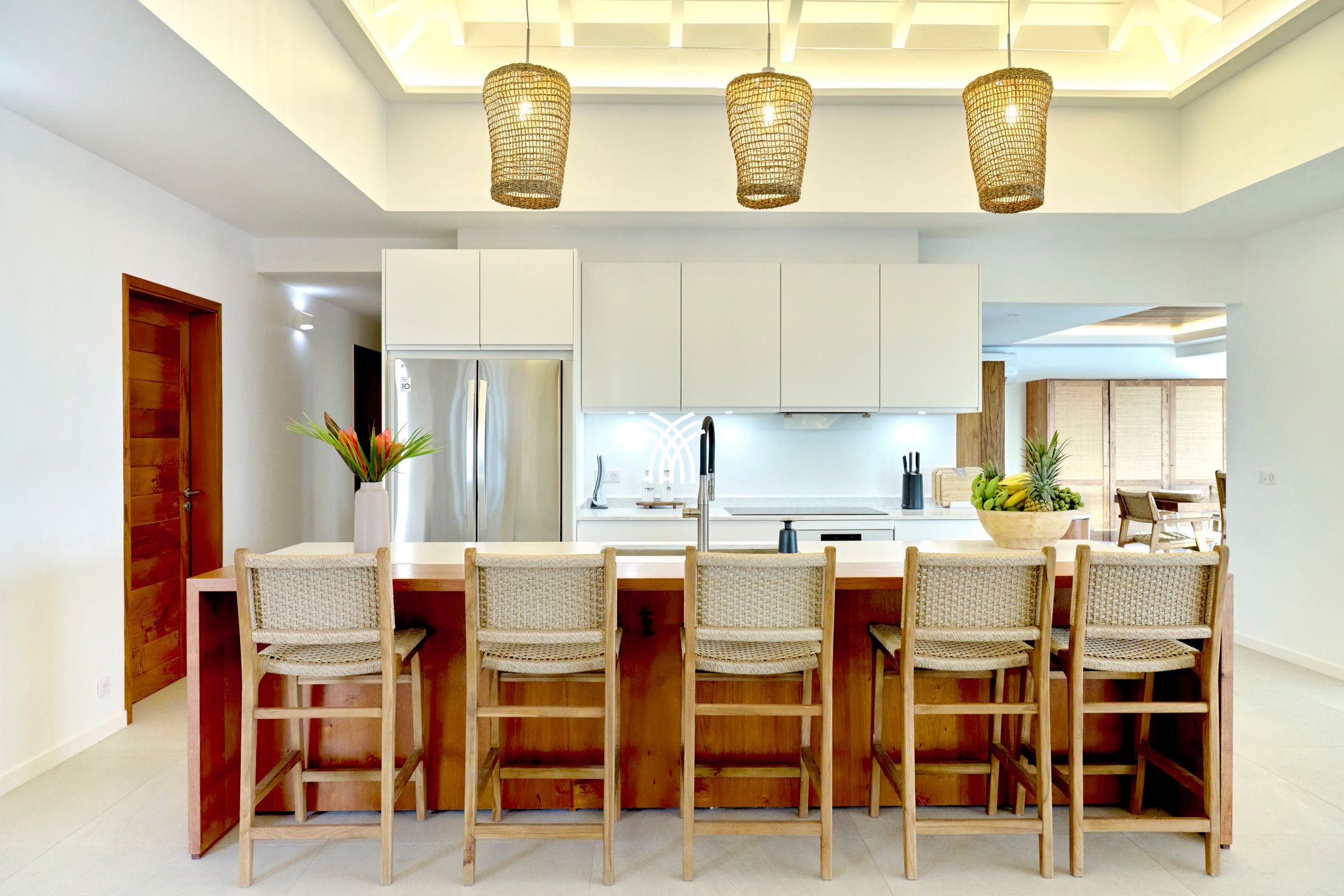 Locally inspired, Villa Flibustier elegantly combines Creole authenticity and modern comfort, offering a refined and functional space that can accommodate up to 10 adults and 2 babies. With its 220 m² of carefully designed spaces, it has five air-conditioned bedrooms, including a sumptuous master suite with dressing room, private bathroom and direct access to the terrace with sea view. The other rooms, equipped with Queen Size beds or twin beds, also benefit from private or shared shower rooms, and in turn offer ocean views or a peaceful garden setting. A mezzanine open to the living room can accommodate two additional children thanks to pull-out beds.