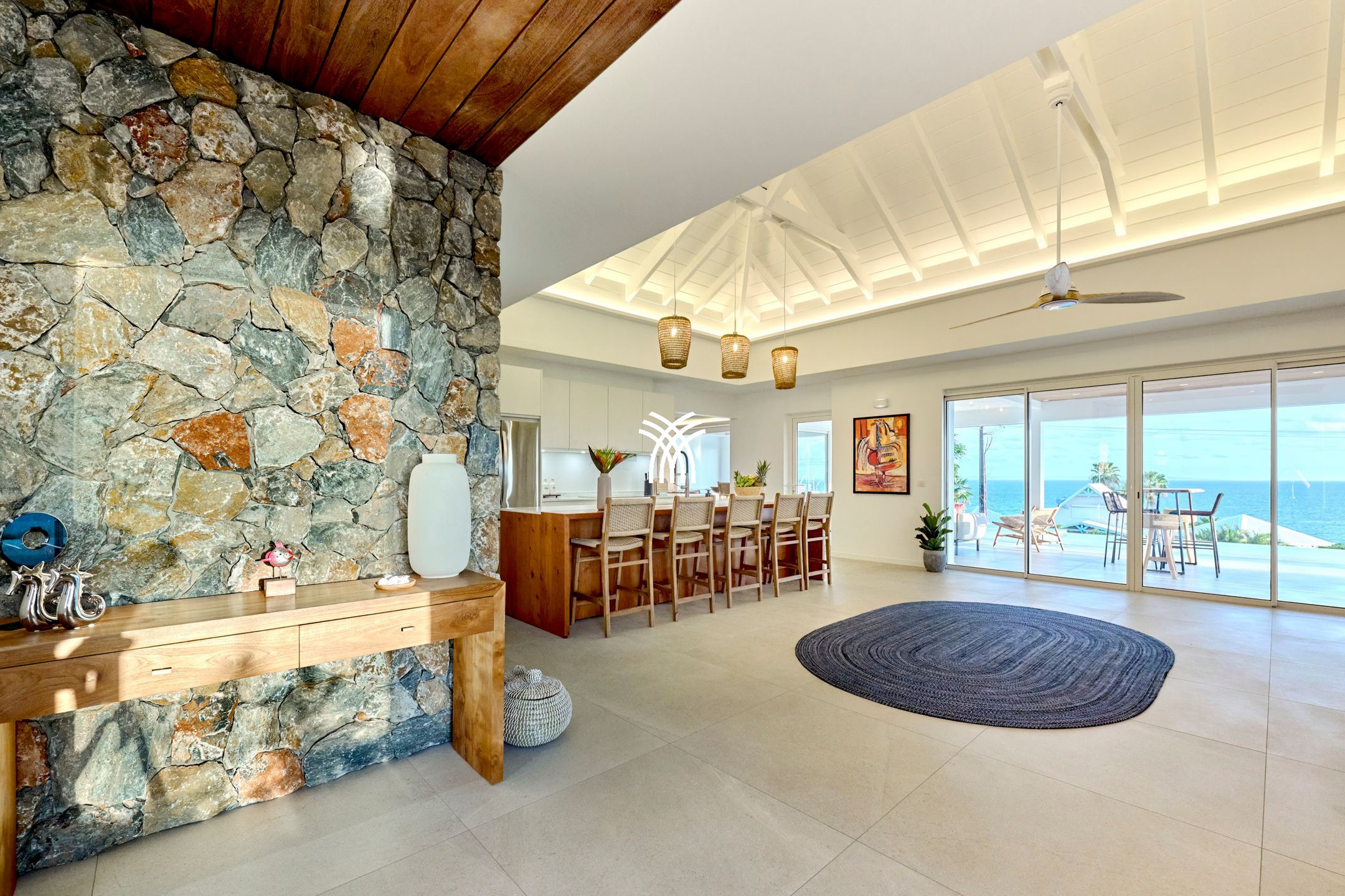 Designed to welcome families and groups of friends in search of space and elegance, Villa Kazla unfolds generous volumes, careful decoration and a perfect harmony between interior and exterior. The living spaces, widely open onto the terrace and horizon, naturally extend the view towards the pool and the ocean. The villa offers several comfortable bedrooms, each with a unique atmosphere, allowing everyone to enjoy their privacy while sharing true moments of conviviality. Noble materials, contemporary furniture and light tones create a peaceful ambiance ideal for exceptional holidays.