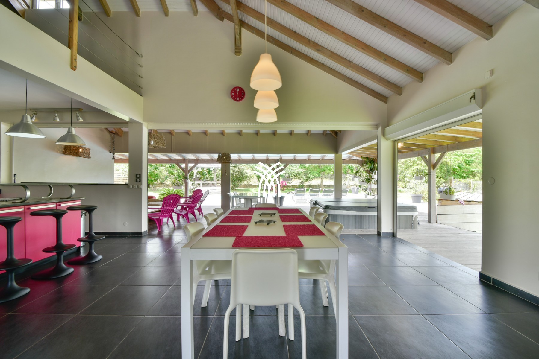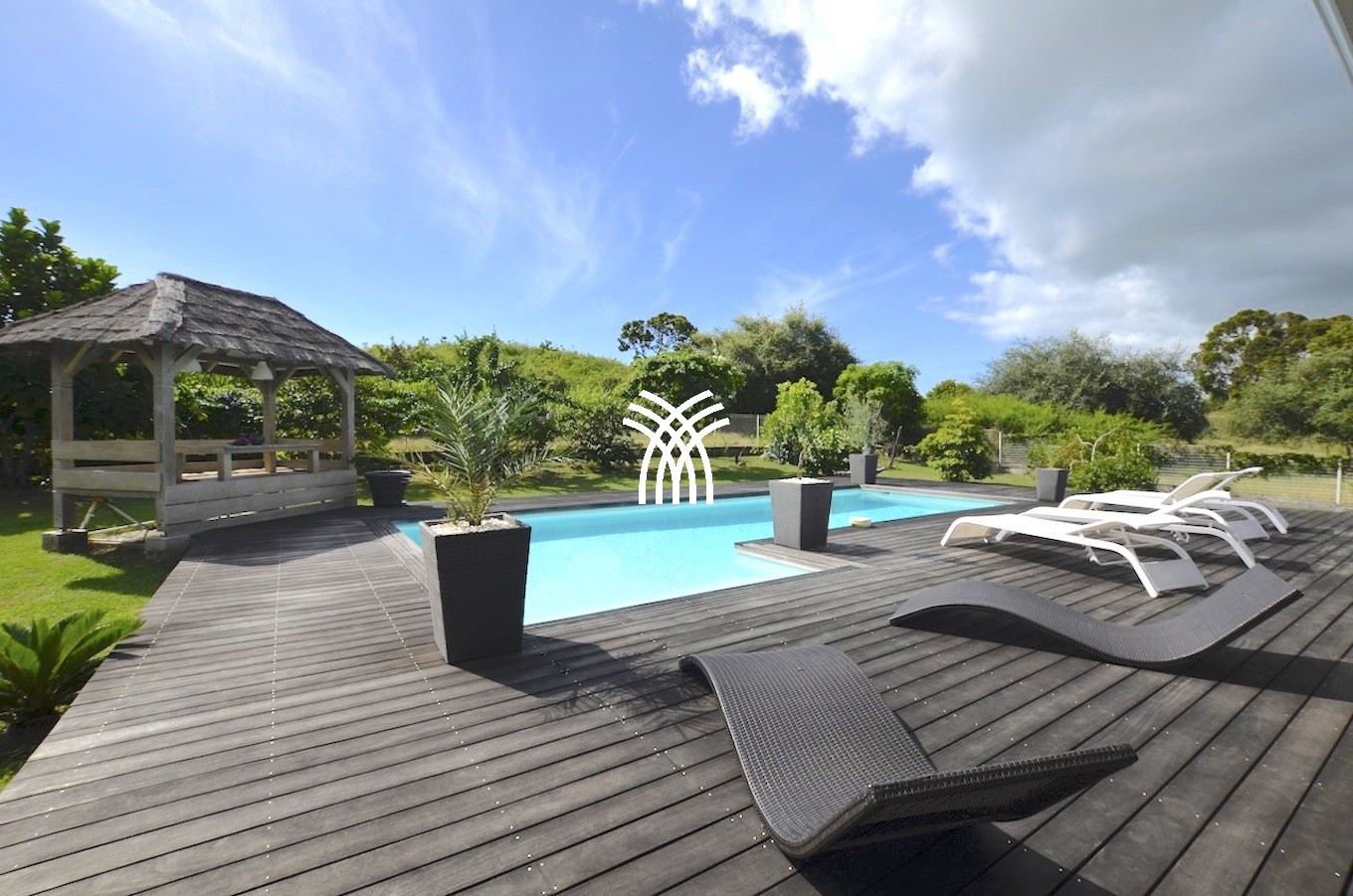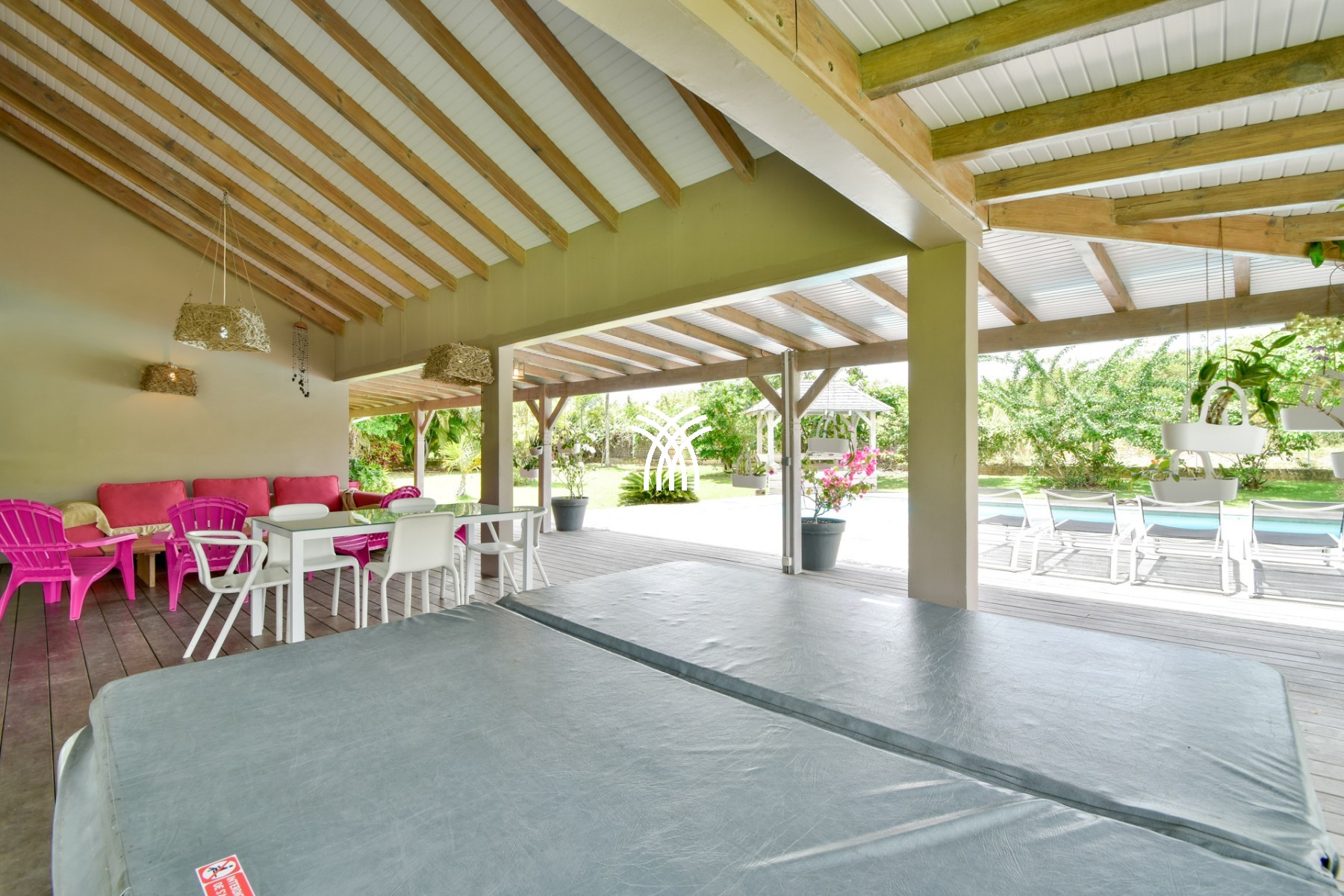 Lounge with pergola by the pool