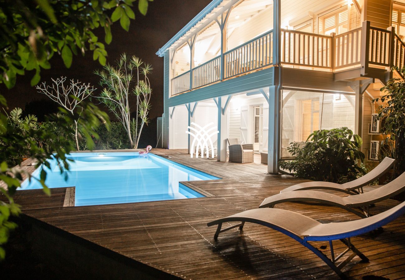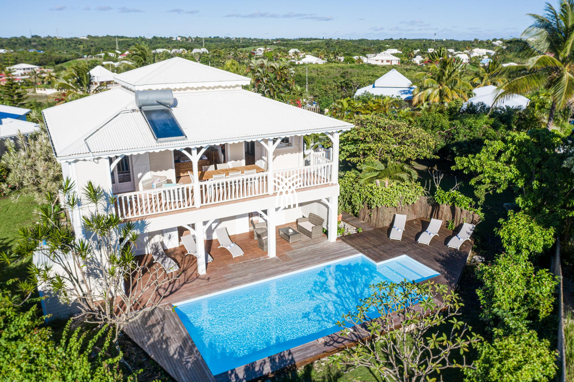 Nestled between Sainte-Anne and Saint-François, in the peaceful and residential Helleux district, Villa Vanilla is a true oasis of tranquillity. Located just 500 metres from the magnificent Pierre & Vacances beach, this sumptuous villa offers an idyllic setting for memorable holidays with family or friends.