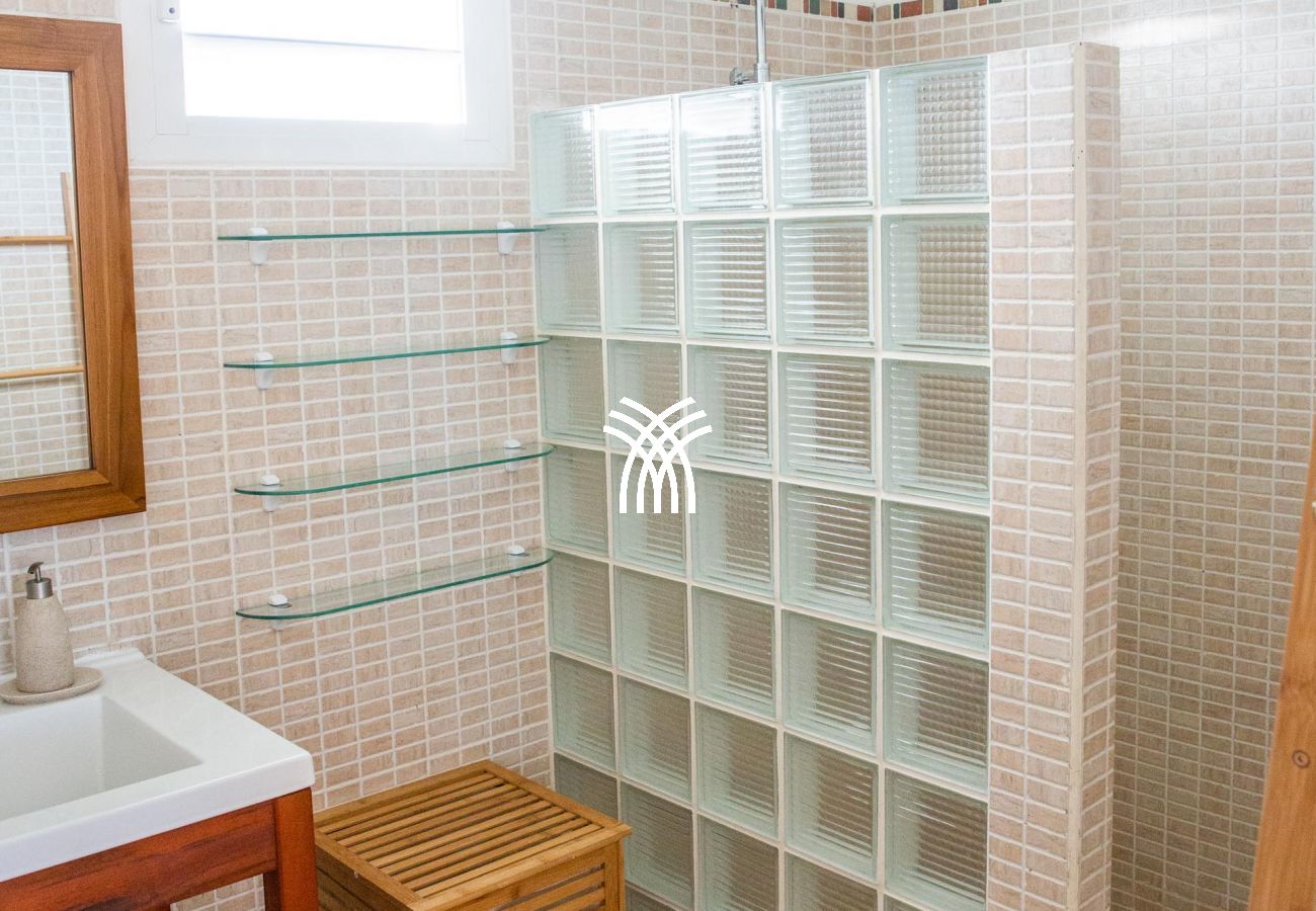 On the ground floor, three air-conditioned bedrooms, fitted with single beds convertible to King-size beds, are perfect for accommodating children or friends. Two shared shower rooms, as well as a third shower room accessible from the terrace, complete this space, ideal after a day at the beach or by the pool. The ground floor also houses a garage with a laundry area, adding to the villa's functionality.