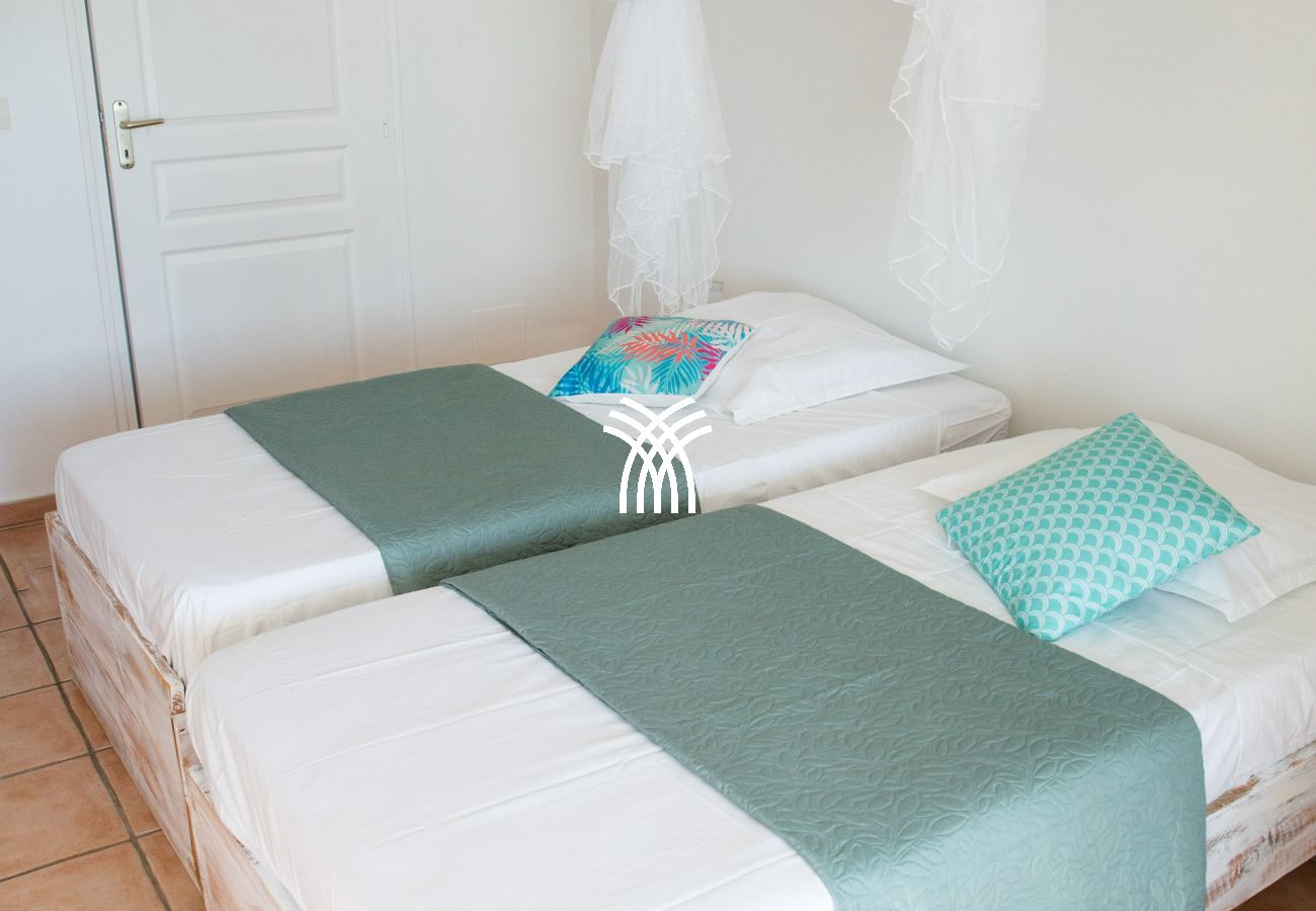 With an area of 194 m², Villa Vanilla extends over two levels and can accommodate up to 10 people thanks to its five spacious and air-conditioned bedrooms. Upstairs, two elegant sea-view suites promise comfort and privacy. The main suite, equipped with a King-size bed (180 cm), features a dressing room and a private shower room with separate toilets. A second suite, with a Queen-size bed (160 cm), also offers a private shower room with separate toilets. The fully equipped American-style kitchen opens onto a terrace with ocean views, ideal for enjoying meals outdoors. The bright living room extends this experience, inviting relaxation with an unobstructed sea view.