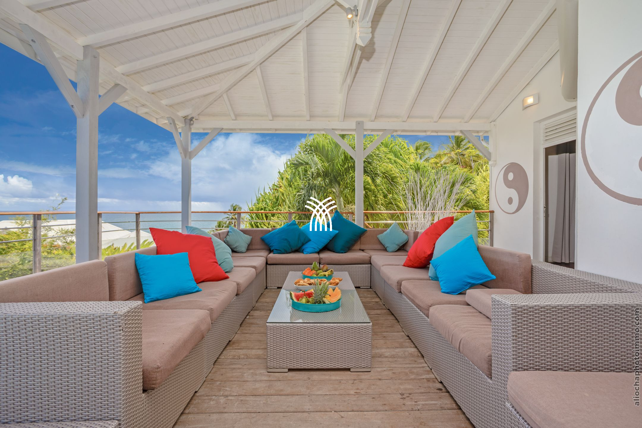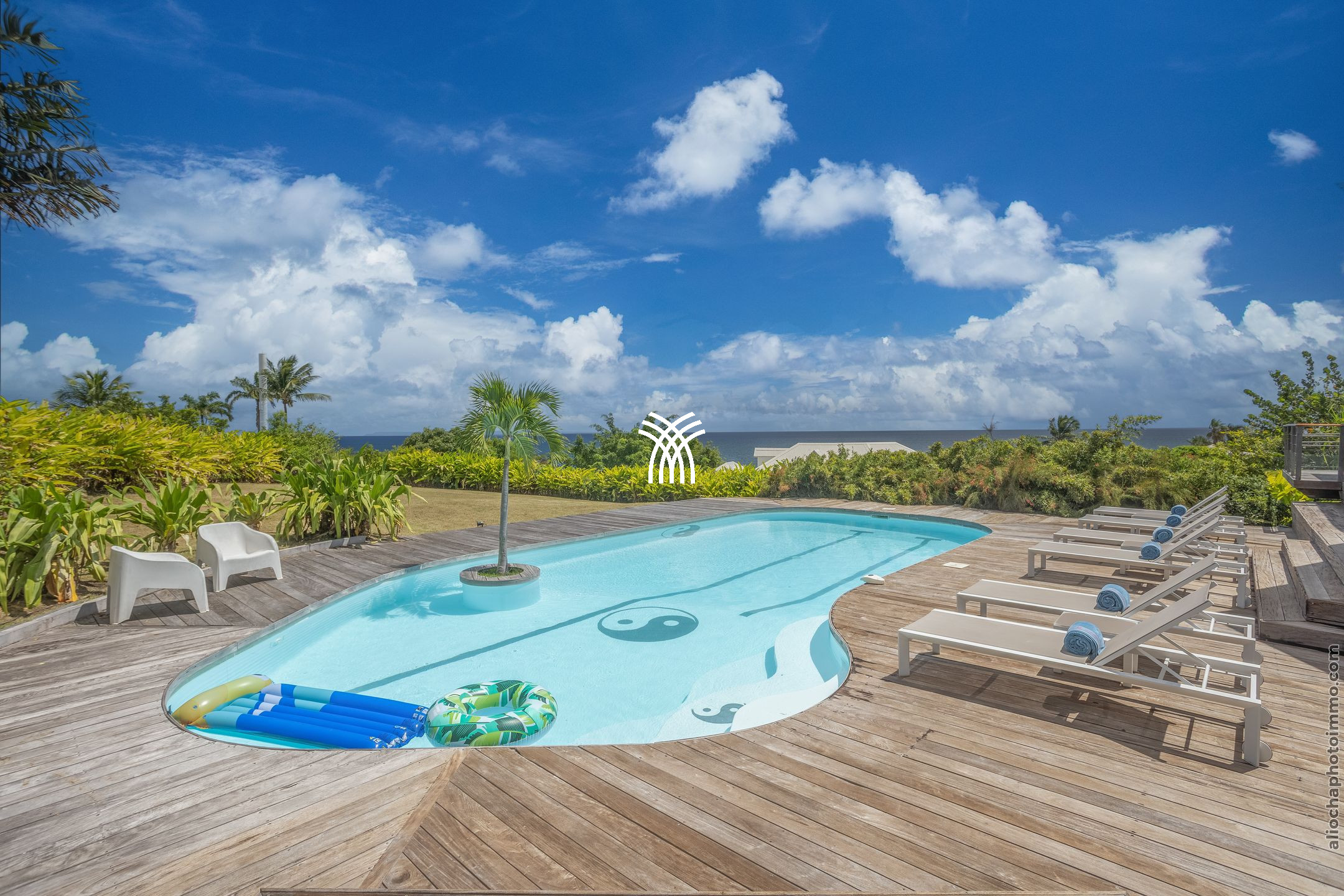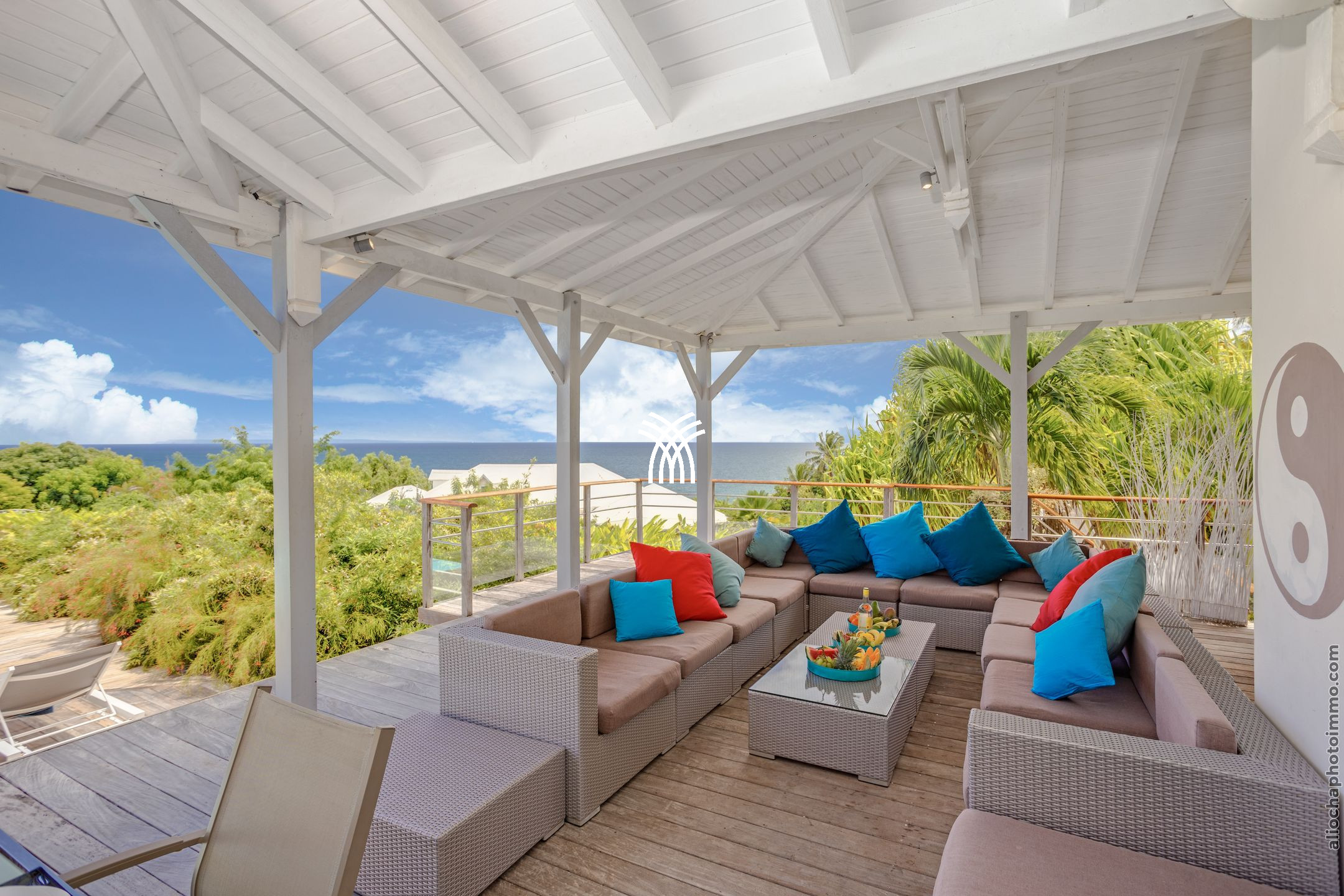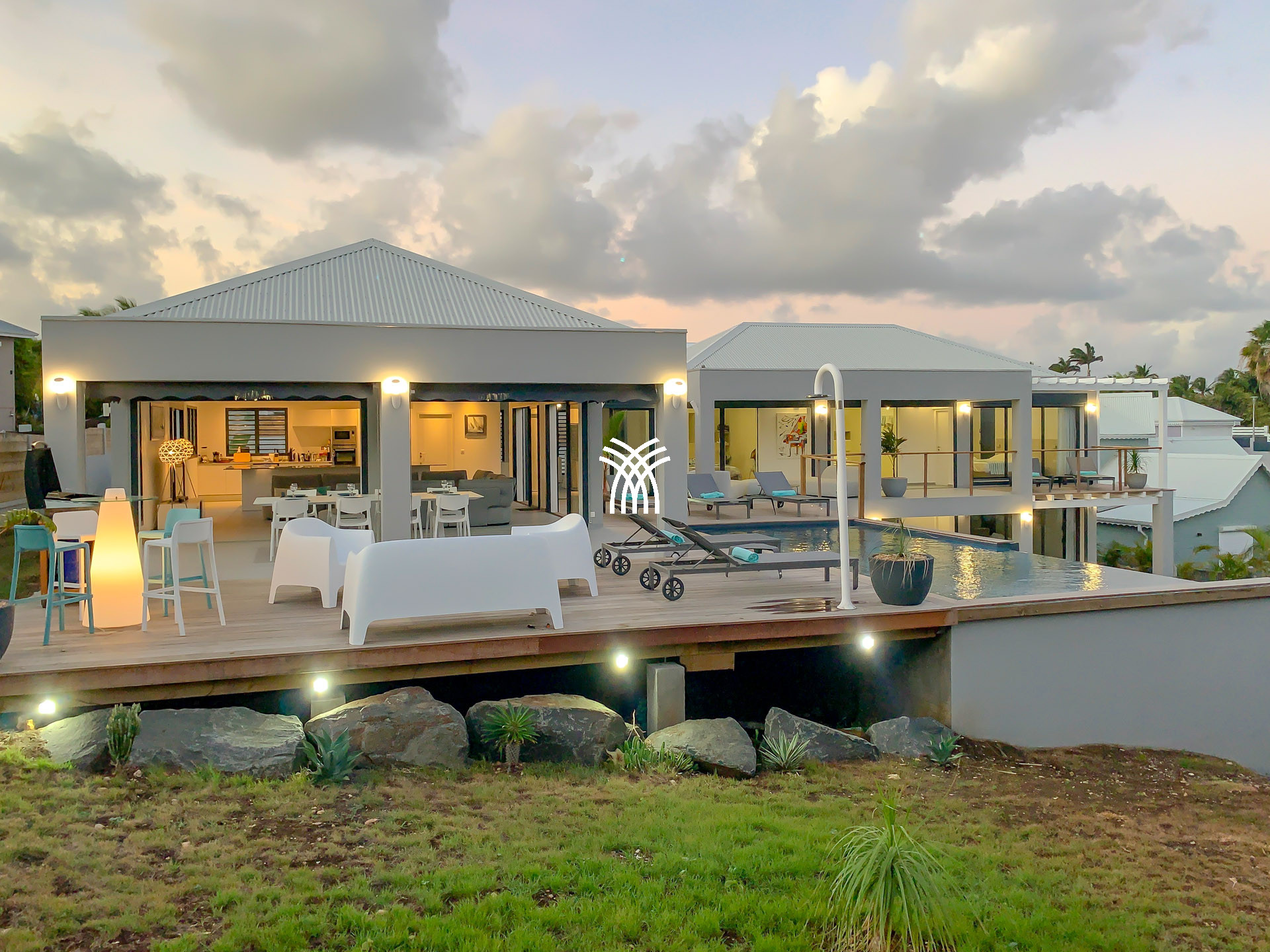 Villa Yin and Yang Guadeloupe with an area of 300m2 and with a deck of 125 m2 is equipped with modern and high-end materials. With breathtaking views of the island of Marie-Galante, Villa Yin and Yang Guadeloupe is also perfectly exposed, trade winds allow it to be always ventilated.