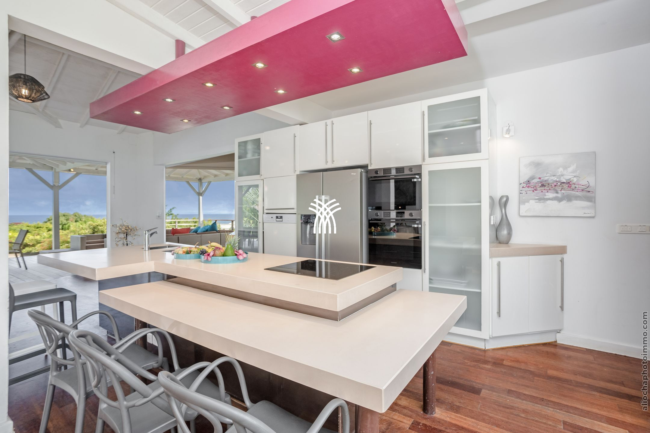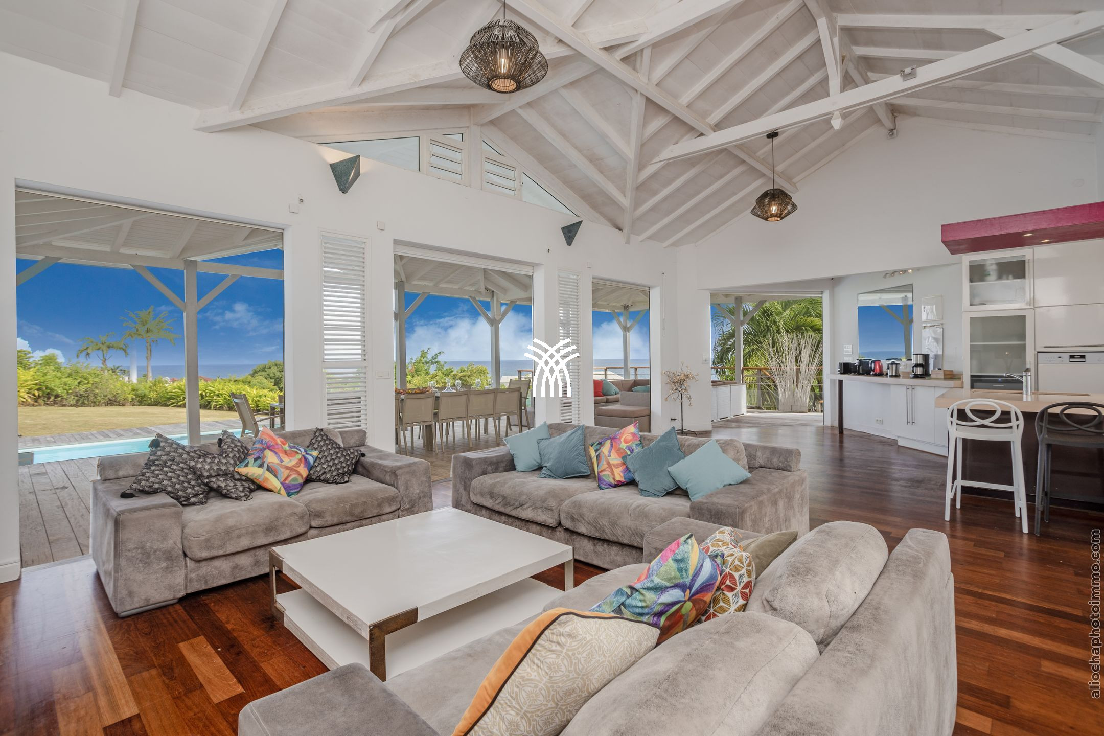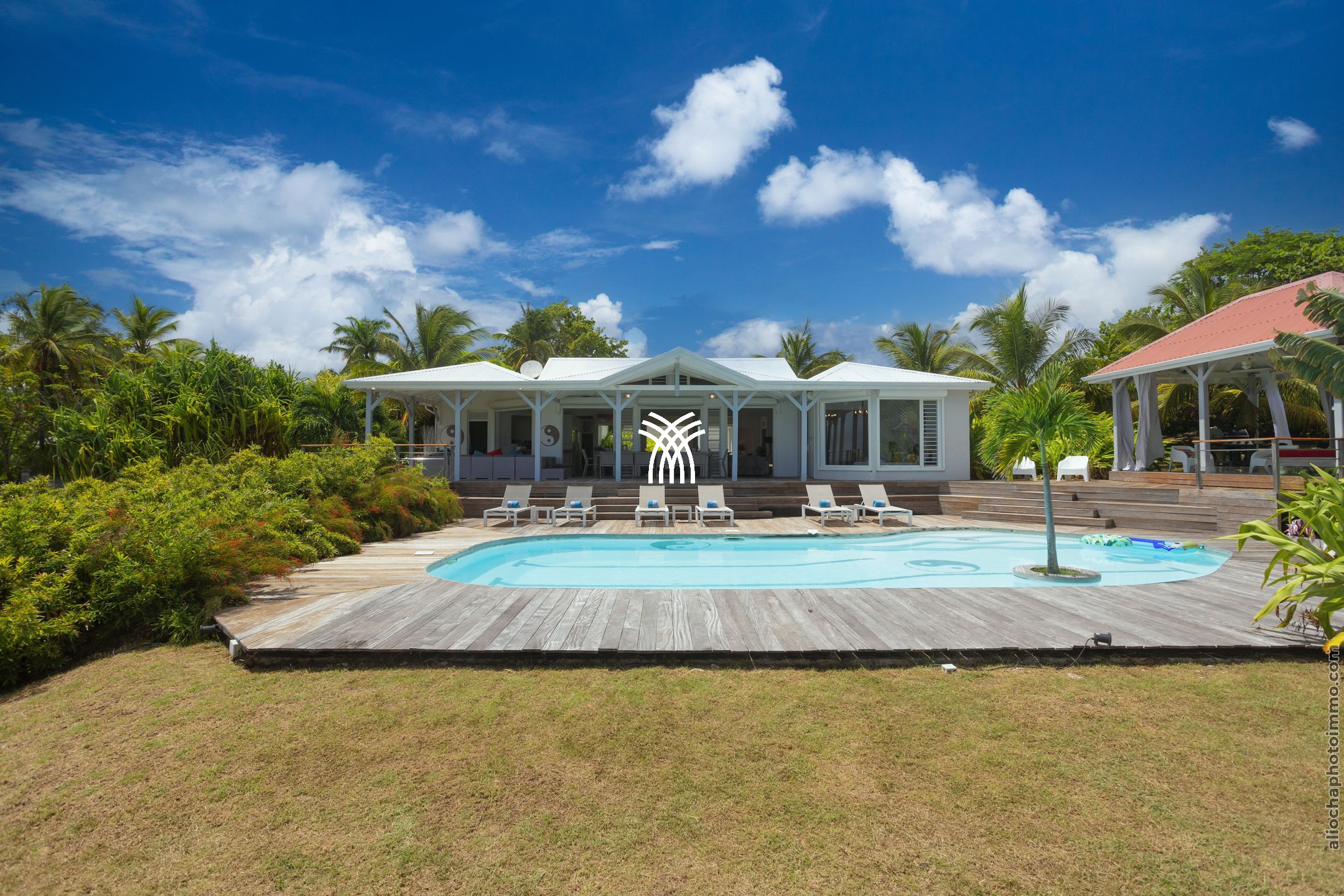 Villa Yin and Yang Guadeloupe with an area of 300m2 and with a deck of 125 m2 is equipped with modern and high-end materials. With breathtaking views of the island of Marie-Galante, Villa Yin and Yang Guadeloupe is also perfectly exposed, trade winds allow it to be always ventilated.