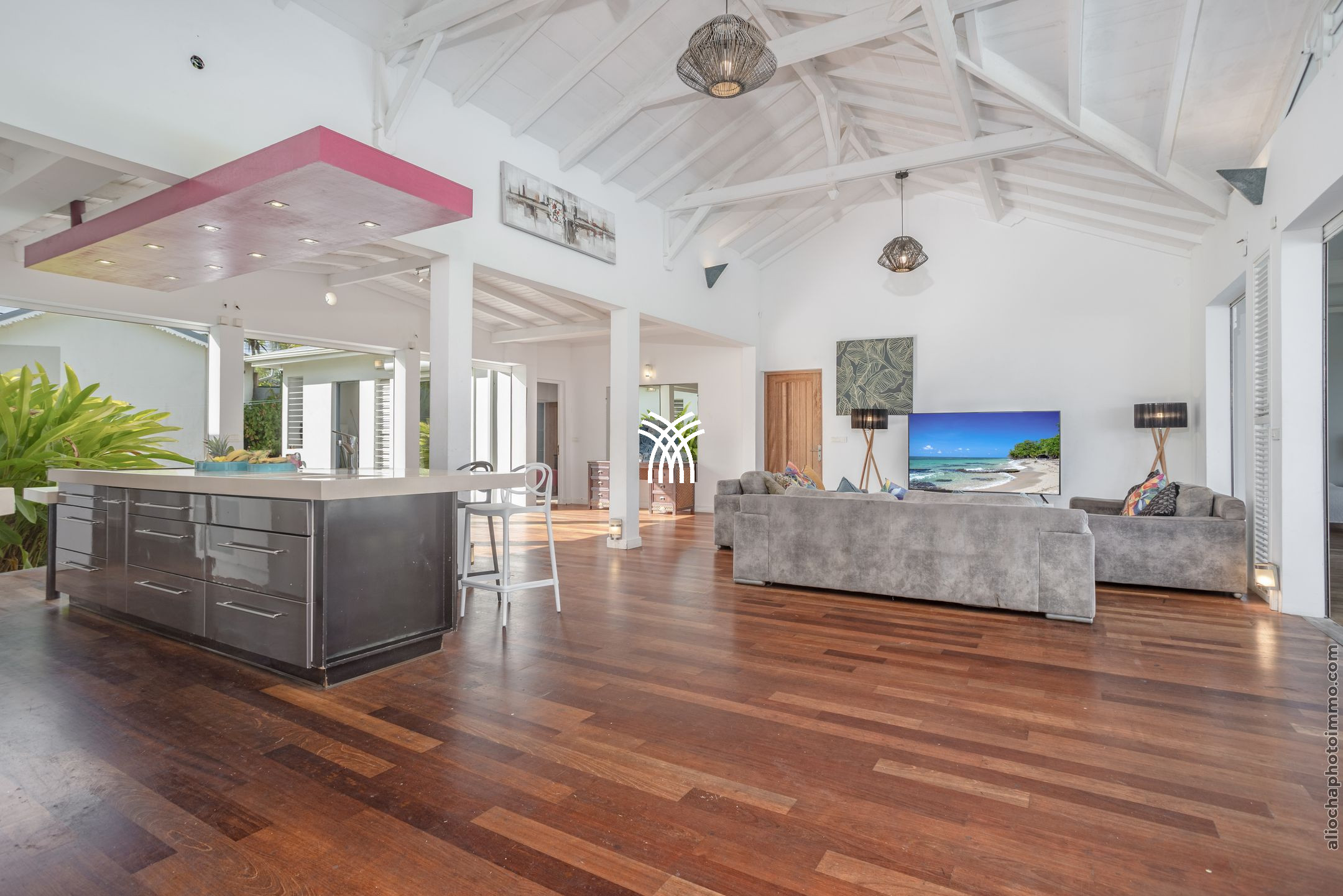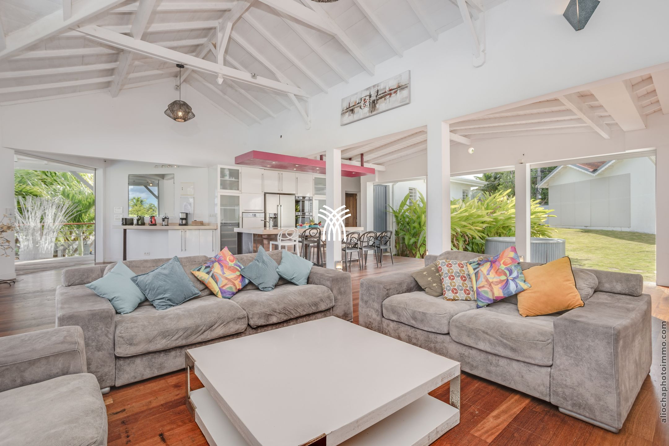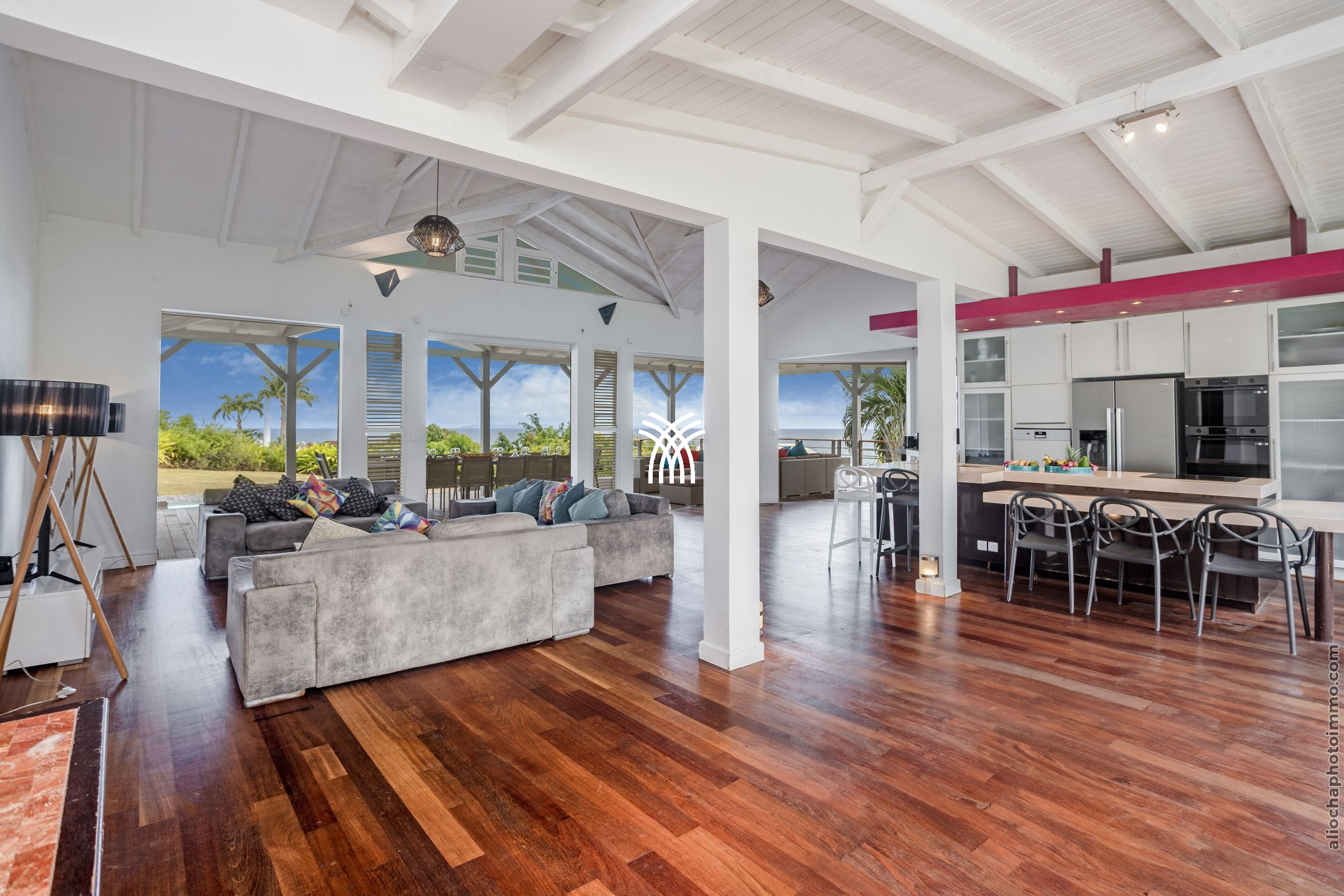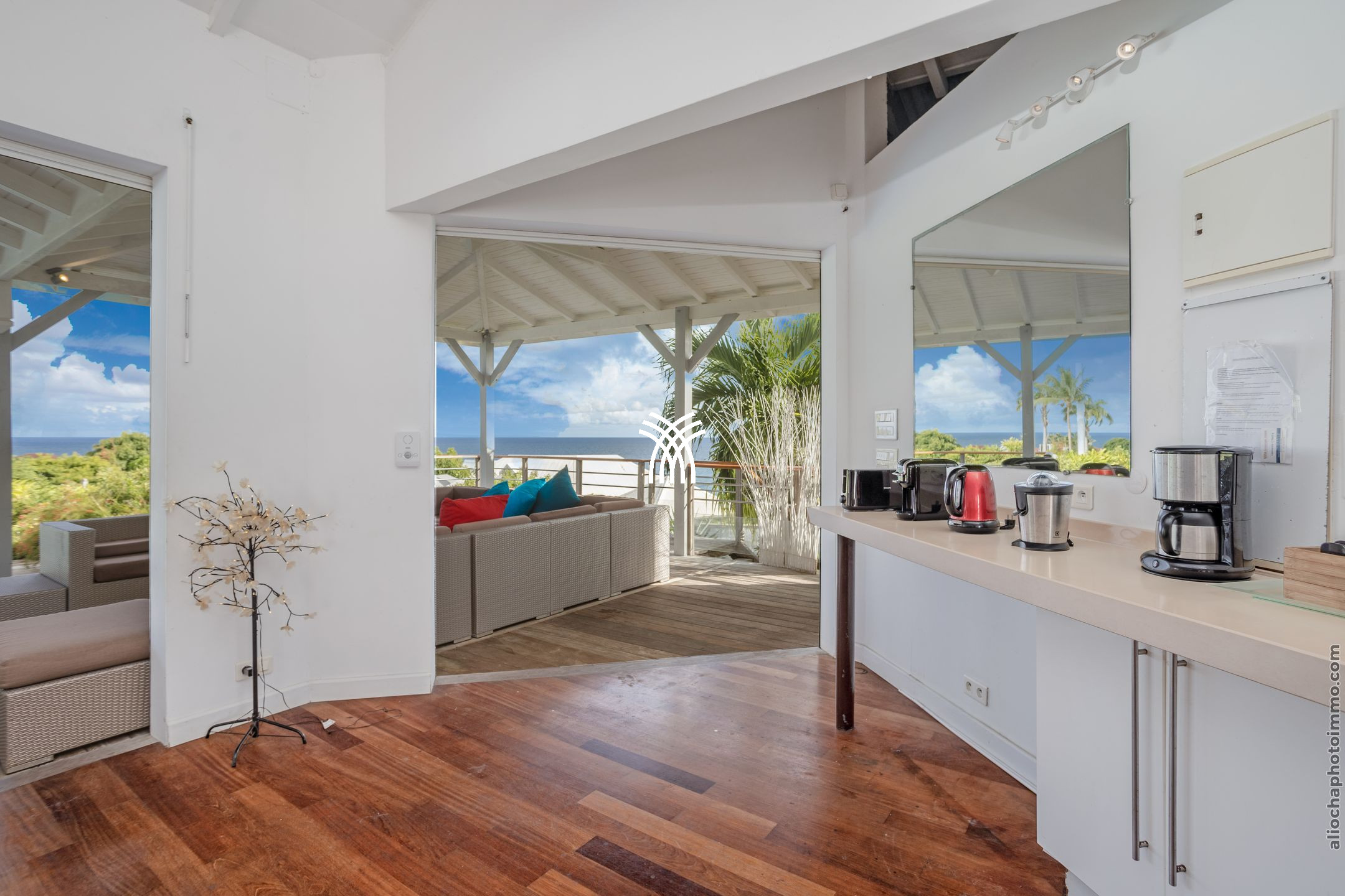 Villa Yin and Yang Guadeloupe with an area of 300m2 and with a deck of 125 m2 is equipped with modern and high-end materials. With breathtaking views of the island of Marie-Galante, Villa Yin and Yang Guadeloupe is also perfectly exposed, trade winds allow it to be always ventilated.