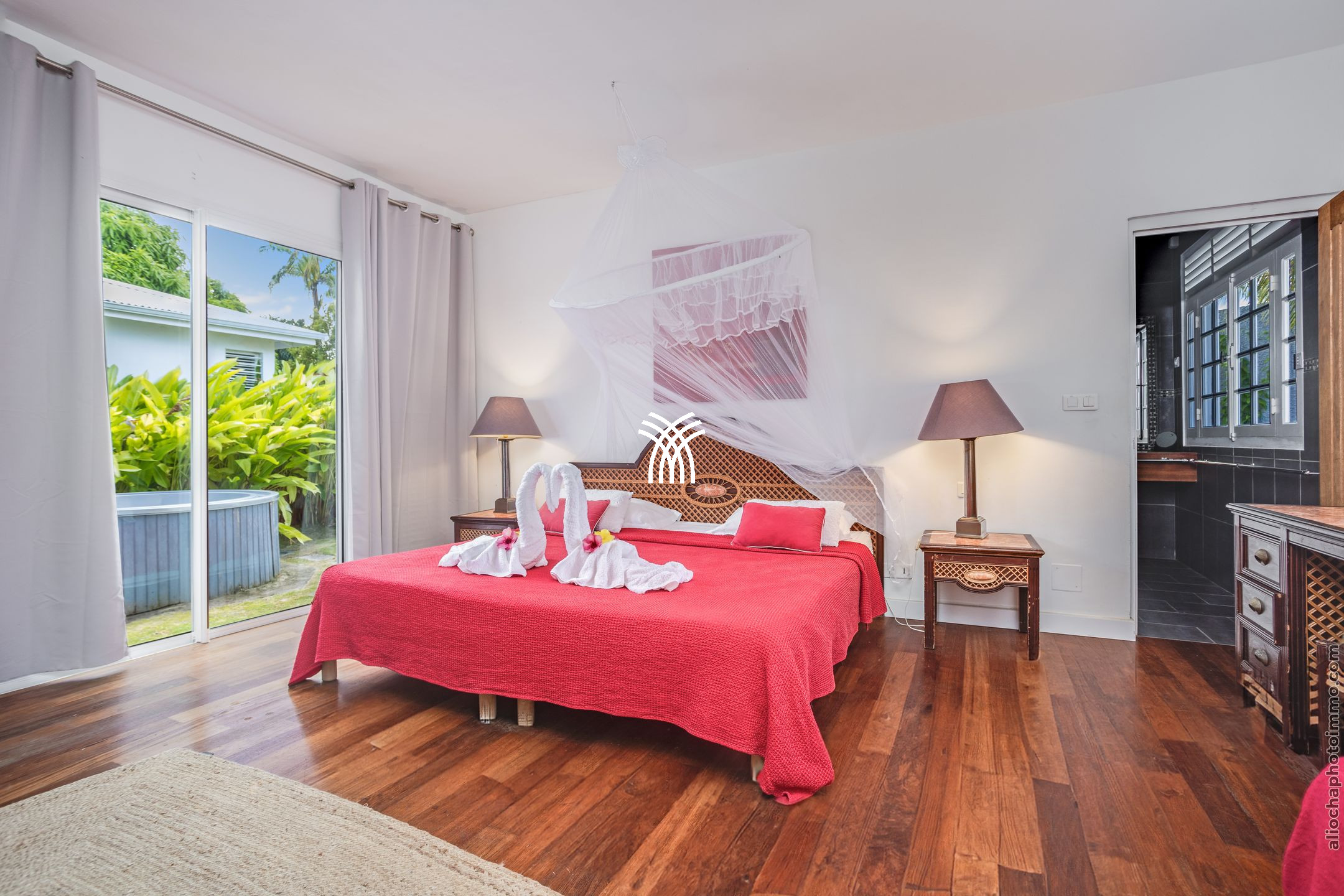 The exterior is a real haven of peace with its 400 m² of terrace designed for relaxation and conviviality. Several lounge areas allow you to relax in the shade or in the sun, while the outdoor bar and the numerous sun loungers offer an idyllic setting in front of the sparkling pool. Between Creole charm and high-end services, Villa Flibustier is the promise of an unforgettable stay in Sainte-Anne.