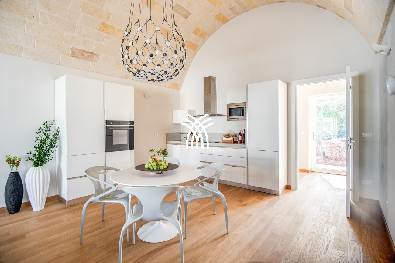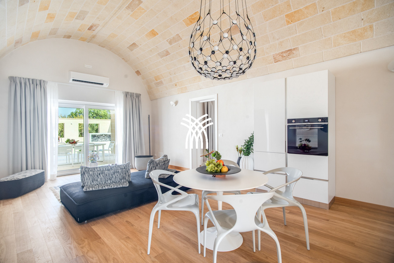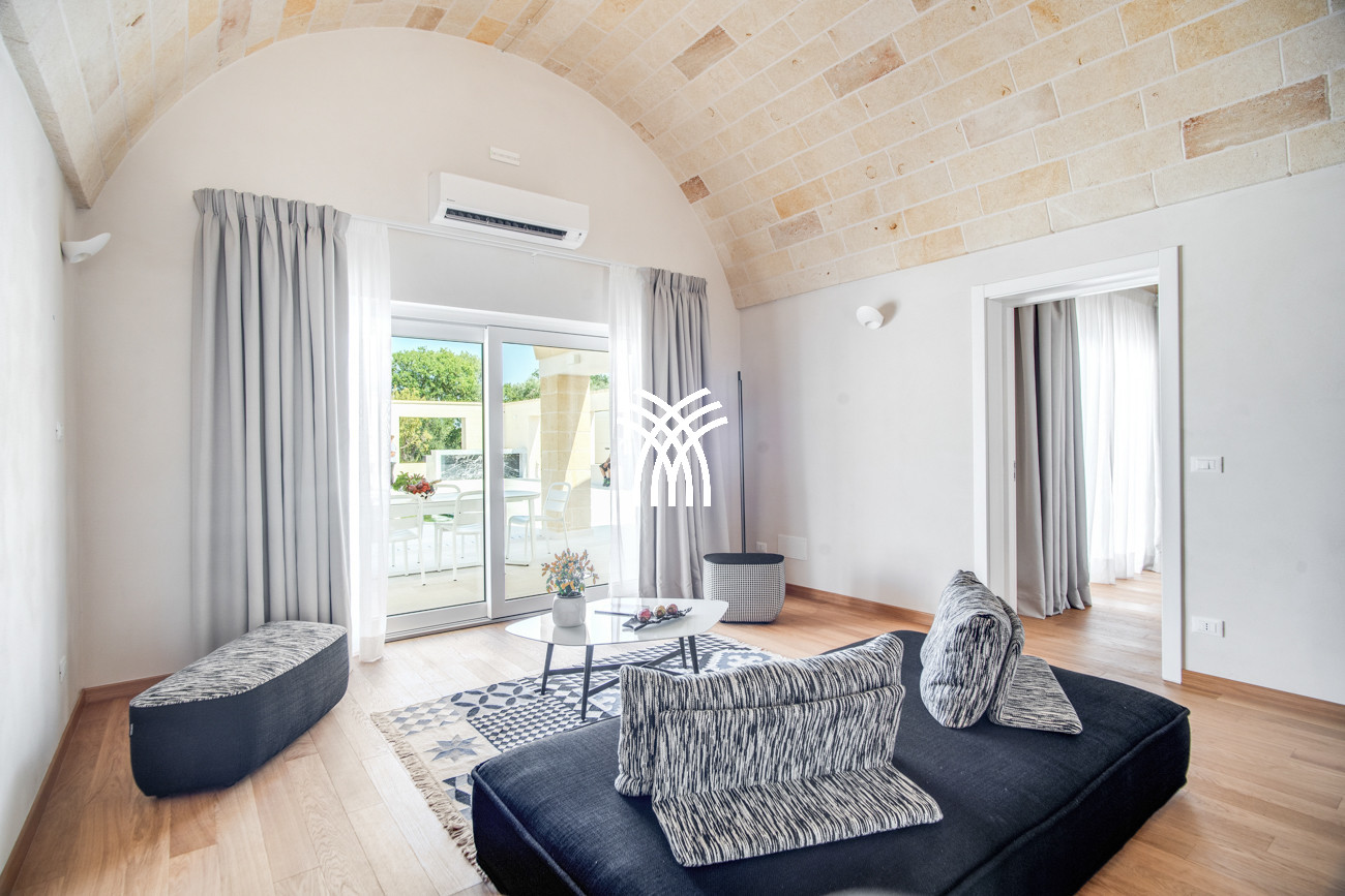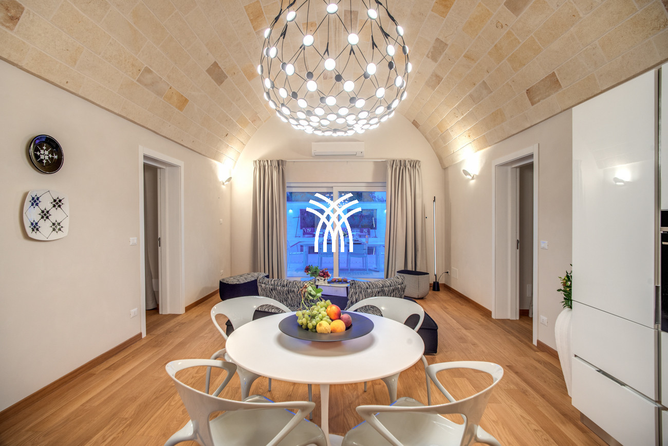Designed with sophistication and soul, Villa Jehudiel features 125 square meters of living space adorned with exposed stone vaults, an iconic architectural element of Salento that evokes timeless beauty. Inside, the villa offers two stylish bedrooms with en suite bathrooms, a guest bathroom, and a spacious living area with a fully equipped kitchen. Modern comforts blend seamlessly with artisanal design, including high-end furnishings, plasma TV with satellite, Wi-Fi, independently controlled climate systems, and premium appliances.