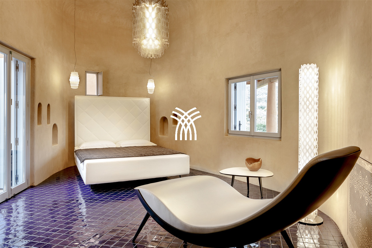 Inspired by the traditional Sardinian “Sa Palas,” the red cloth and gold-thread bodice worn on special occasions as a symbol of prosperity and joy, Villa Palas reveals itself as a residence of rare elegance, precious in spirit and refined in every detail. Set in the sun-drenched south of Italy, within the magnificent island landscape of Sardinia, this exceptional property stands among the most remarkable addresses for a luxury villa rental Sardinia experience and represents a distinguished choice for a luxury villa rental Italy. Located in the prestigious Is Molas Resort in Pula, the villa combines architectural sophistication with generous private outdoor living.