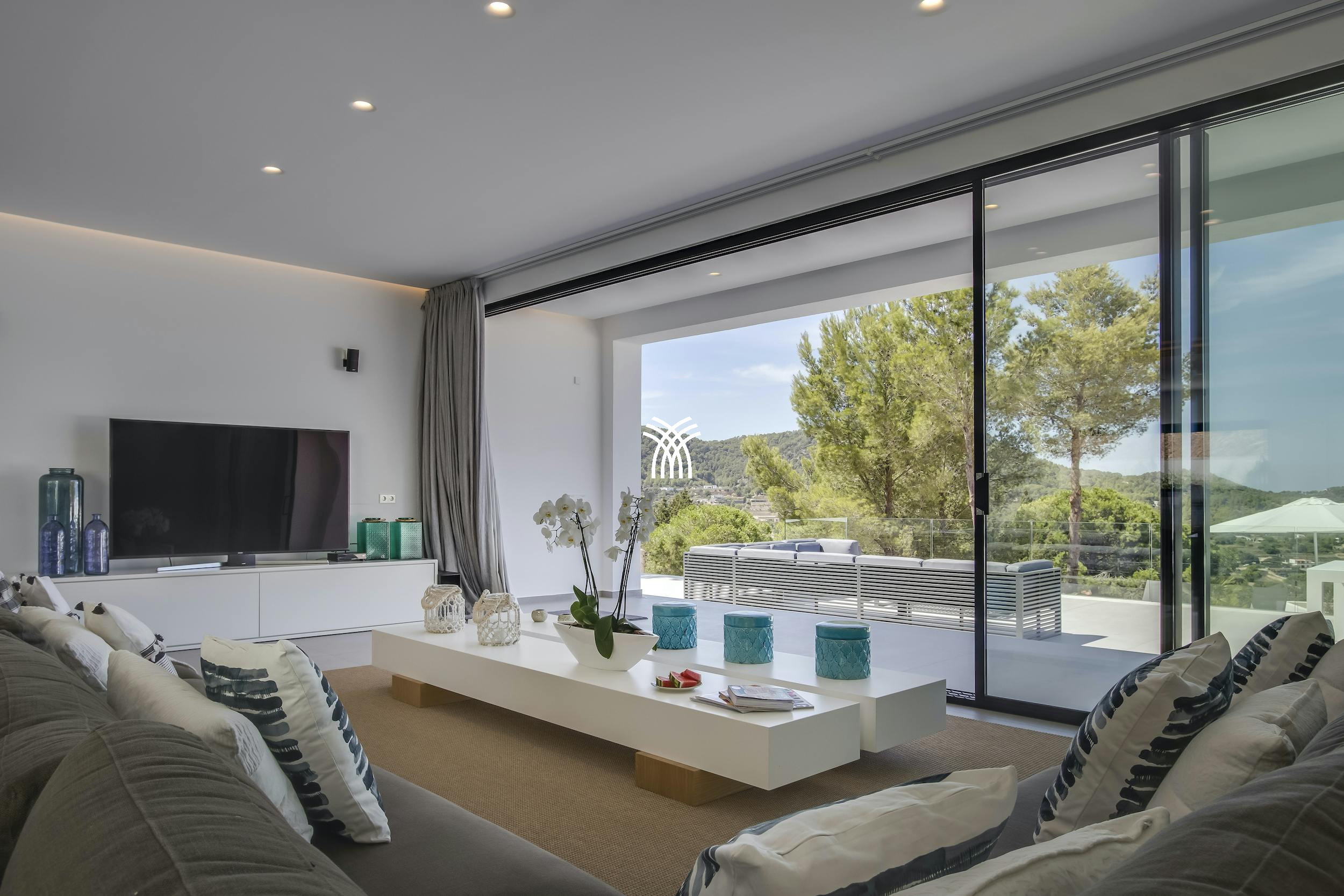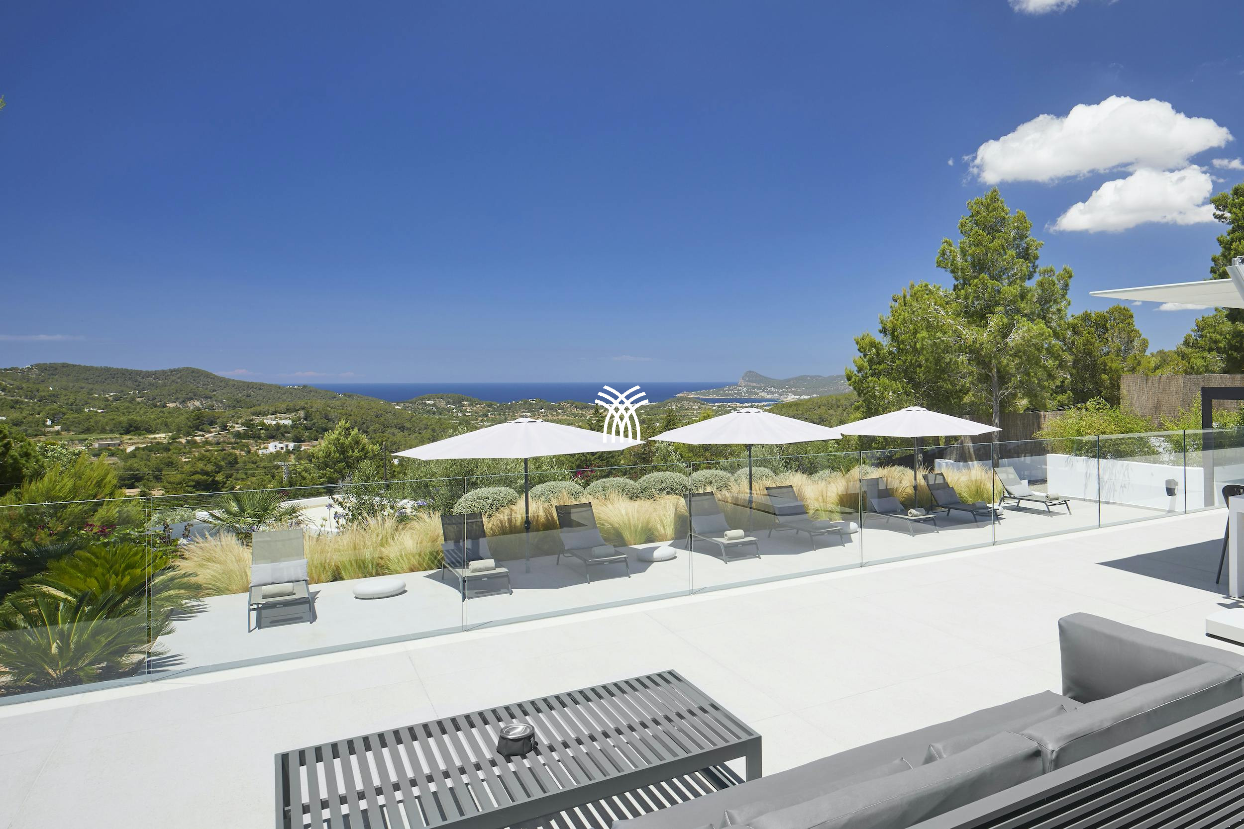 Perched high in the hills above KM5, this extraordinary mountain-top retreat offers an unrivaled Luxury Villa Rental Ibiza experience with panoramic views stretching across the glittering coastline to Salinas, Formentera, Cala Jondal, and Porroig.