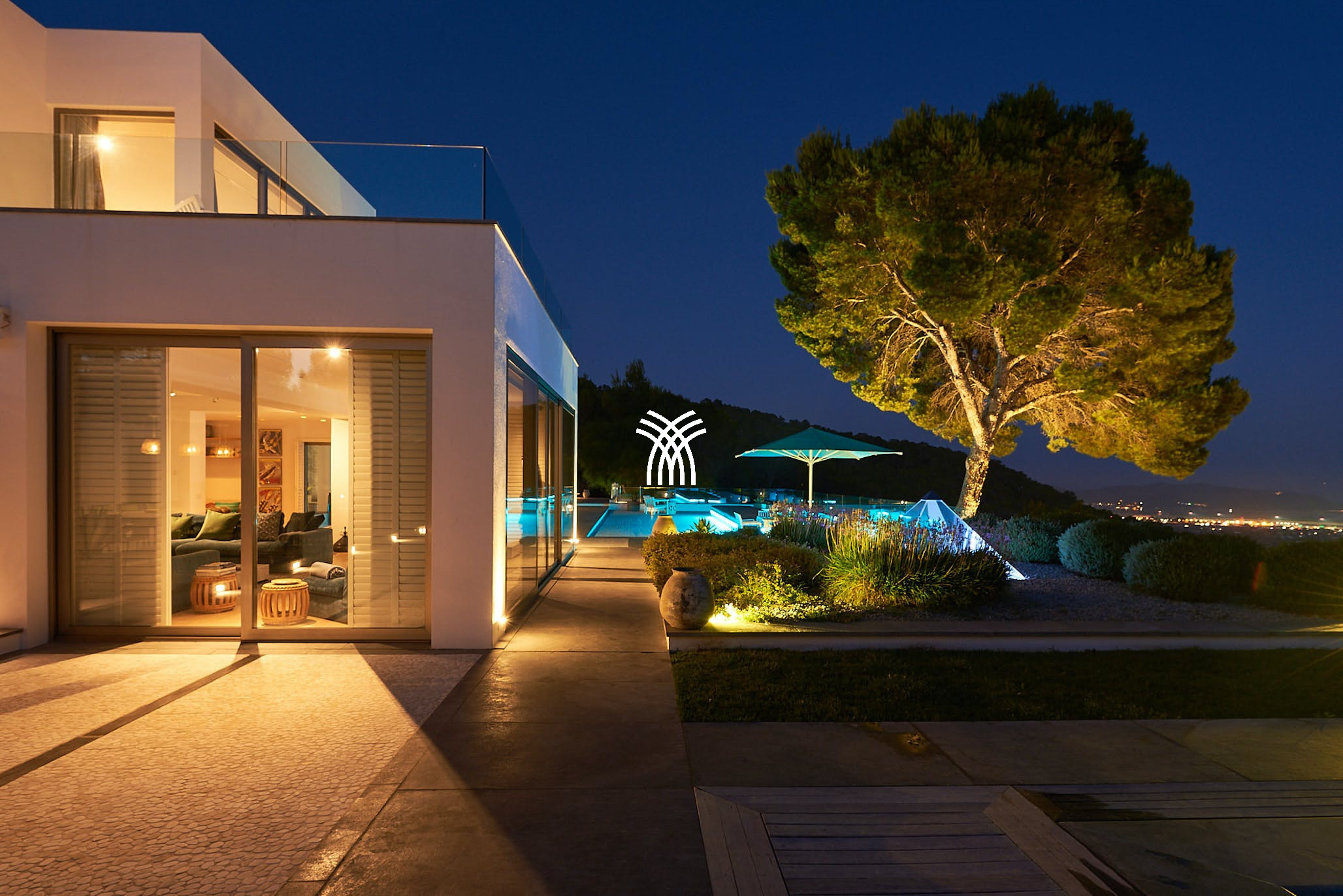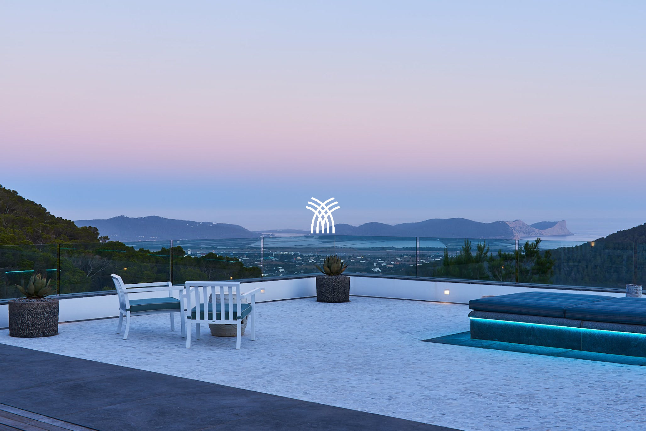 Perched high in the hills above KM5, this extraordinary mountain-top retreat offers an unrivaled Luxury Villa Rental Ibiza experience with panoramic views stretching across the glittering coastline to Salinas, Formentera, Cala Jondal, and Porroig.