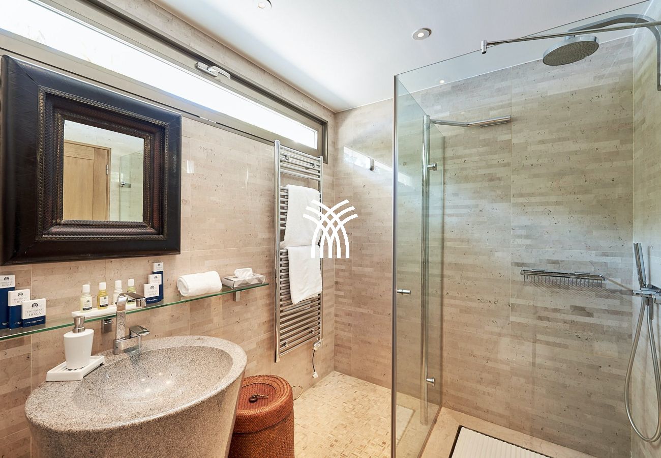 Inside, the villa’s design radiates understated sophistication, with hand-selected luxury furnishings and high-end materials that blend comfort with contemporary flair. Every room is equipped with air conditioning and central heating, ensuring year-round comfort.