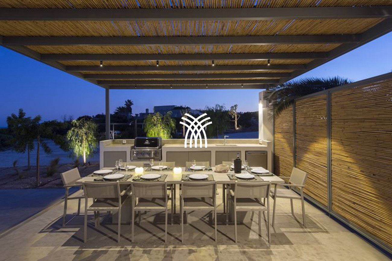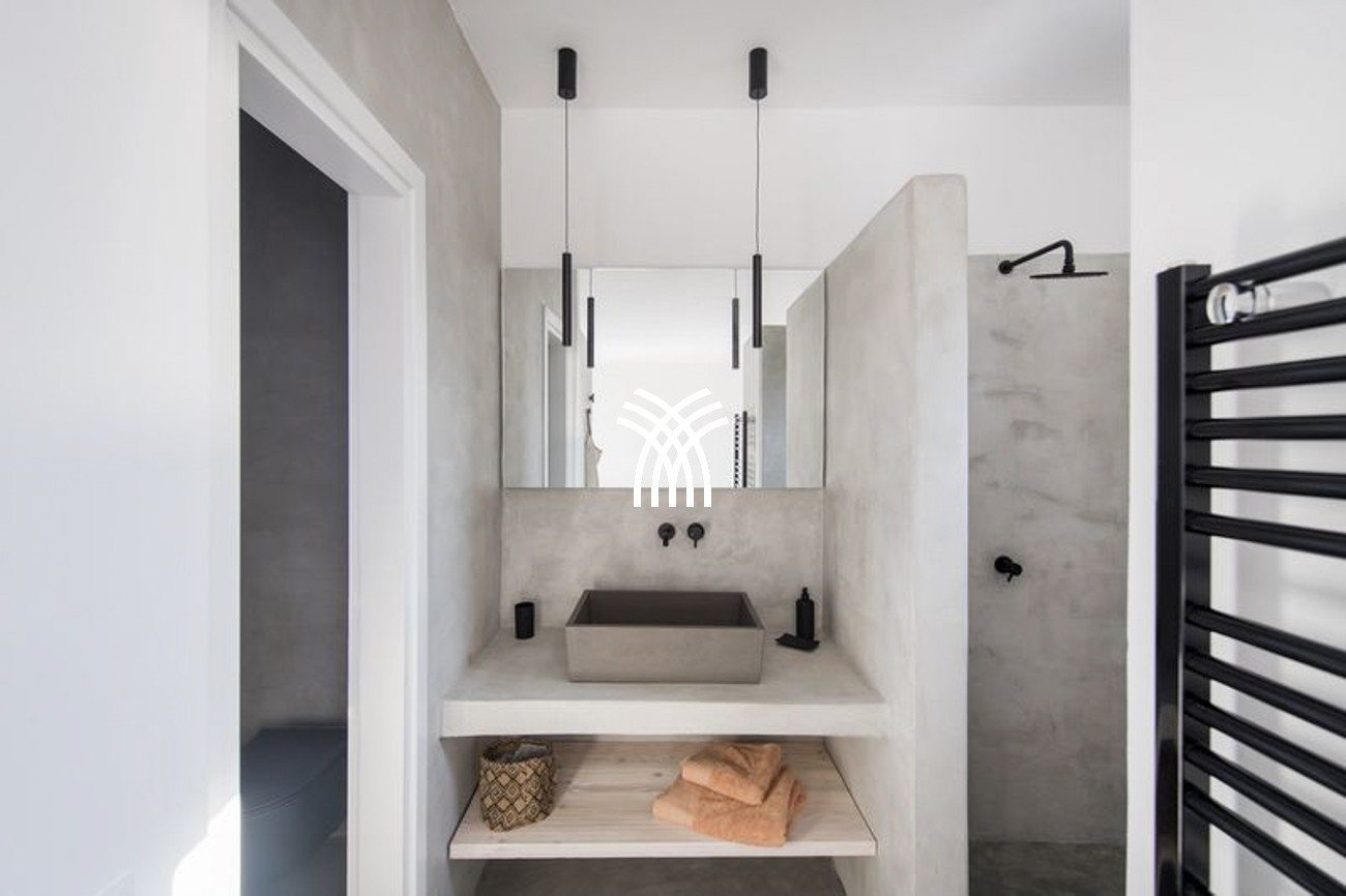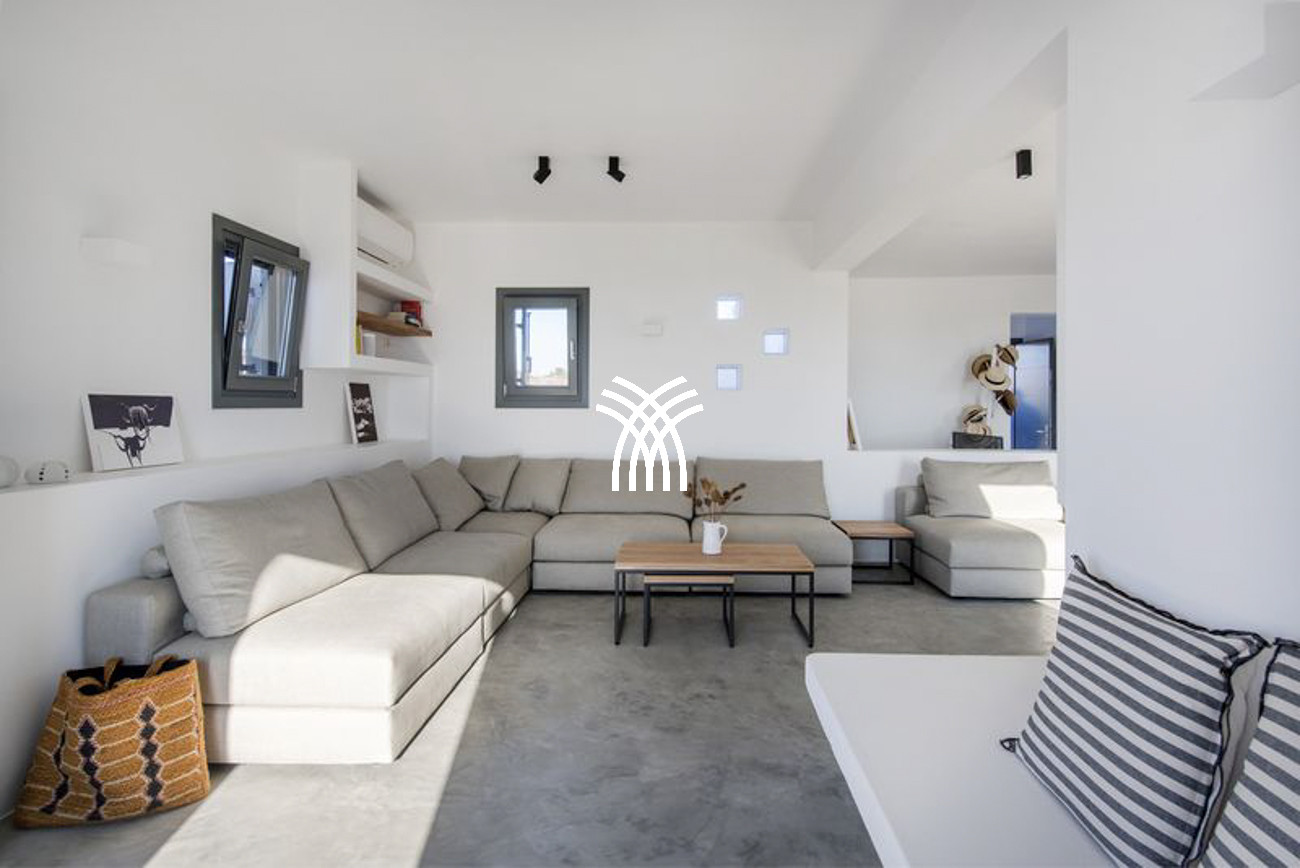 Spanning 350 square meters, the villa reveals luminous and generously proportioned living spaces enhanced by clean lines and minimalist aesthetics, while the soft white exterior echoes the timeless charm of Greek architecture with a distinctly modern expression. Every element has been carefully curated to create a warm, sophisticated ambiance where contemporary luxury meets authentic Mediterranean character.