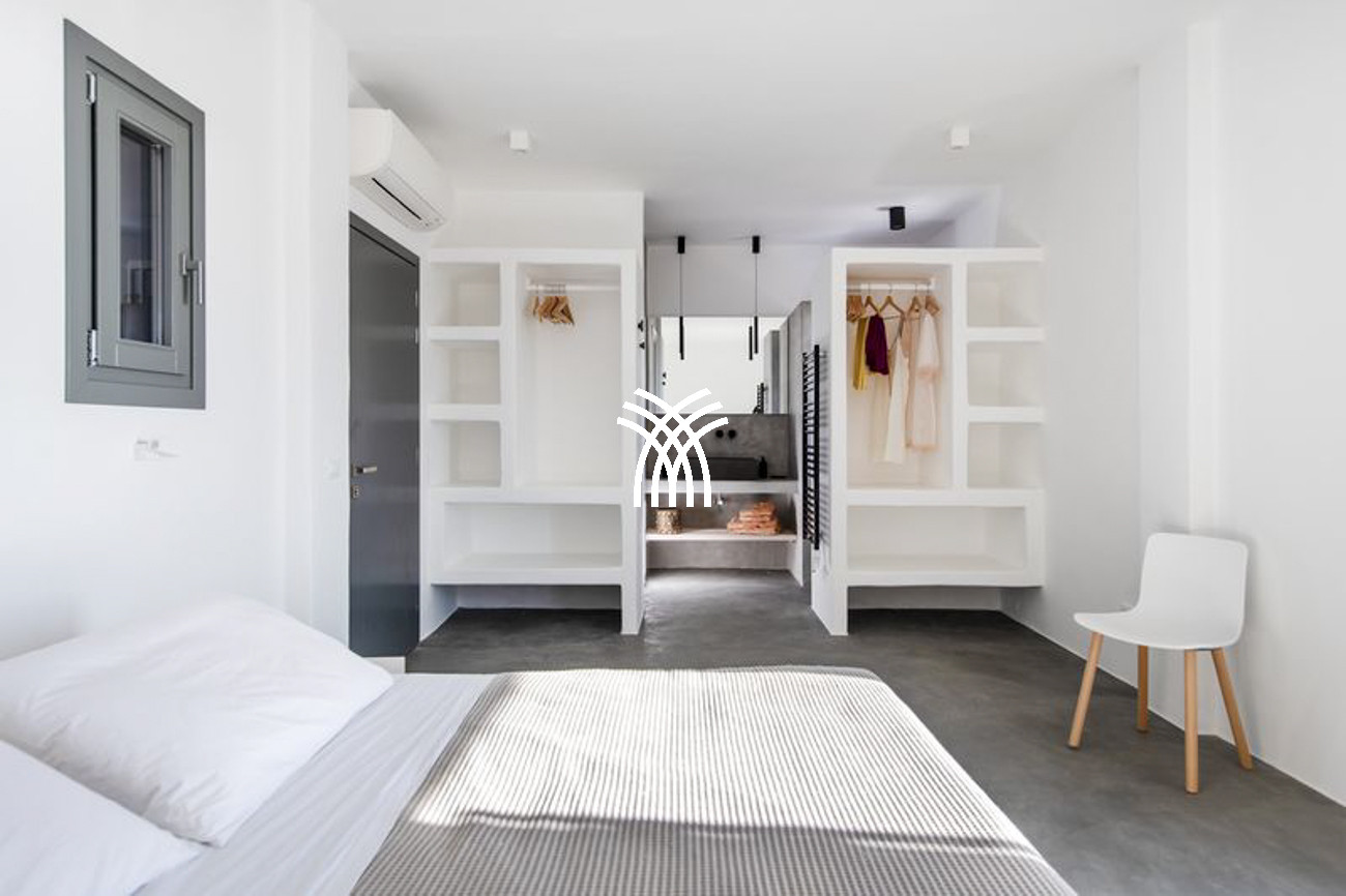 Nestled on the Santa Maria peninsula in Paros, just 500 meters from an equipped beach, Villa Ela unfolds as a contemporary retreat where refined design, privacy, and the gentle rhythm of the Aegean converge in perfect harmony. Conceived as an elegant sanctuary in the heart of the Cyclades, this exceptional residence welcomes up to twelve guests across six beautifully appointed bedrooms, each with its own private bathroom, offering an atmosphere of comfort and discretion that elevates every moment of the stay.