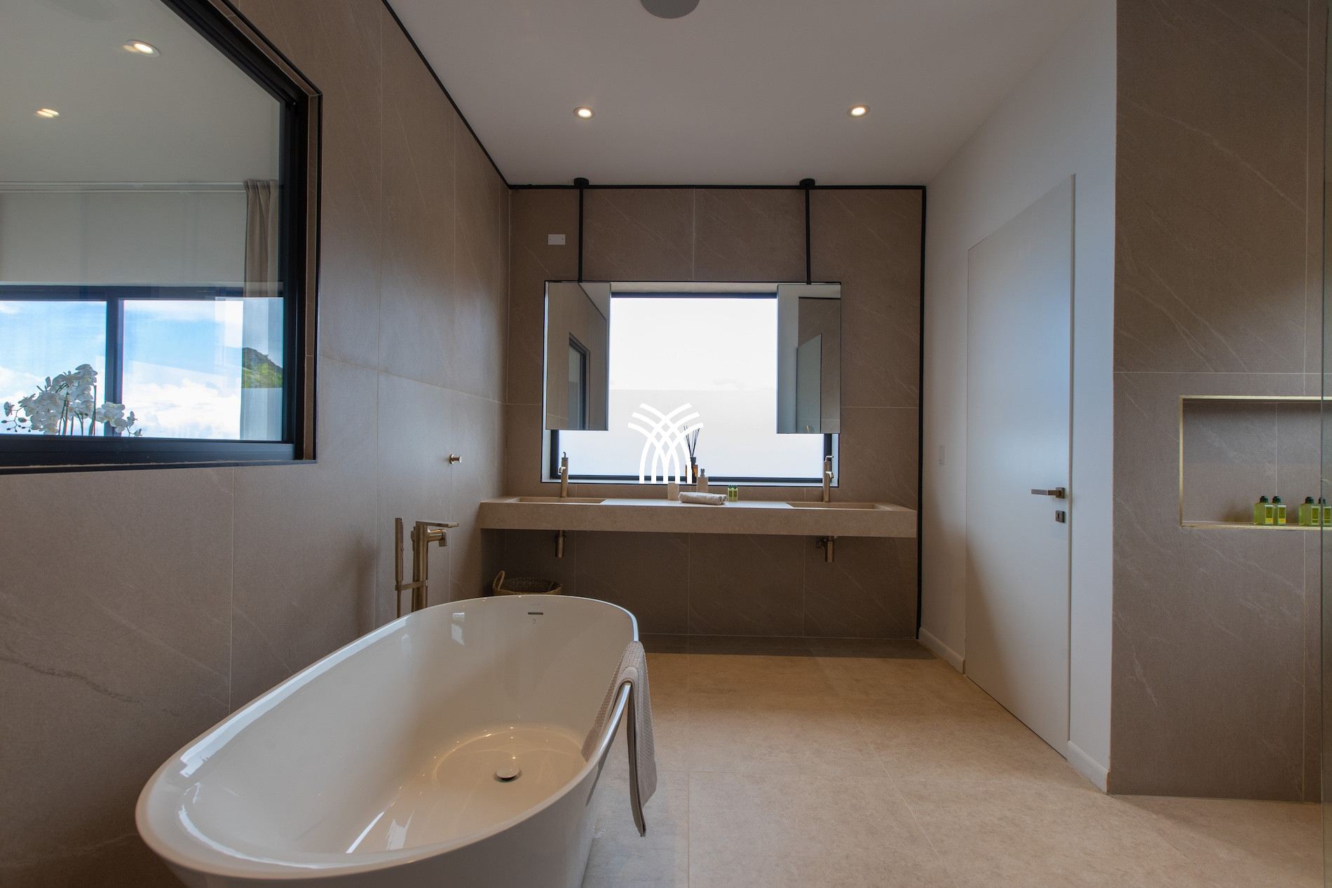 The six rooms, spread across three levels, offer absolute privacy and unparalleled comfort. Each has its own adjoining bathroom, with refined finishes and a panoramic ocean view. The main suite stands out with its elegant bathtub, inviting moments of relaxation facing a breathtaking landscape. The experience is elevated by Italian-style showers and rest areas designed for absolute well-being.