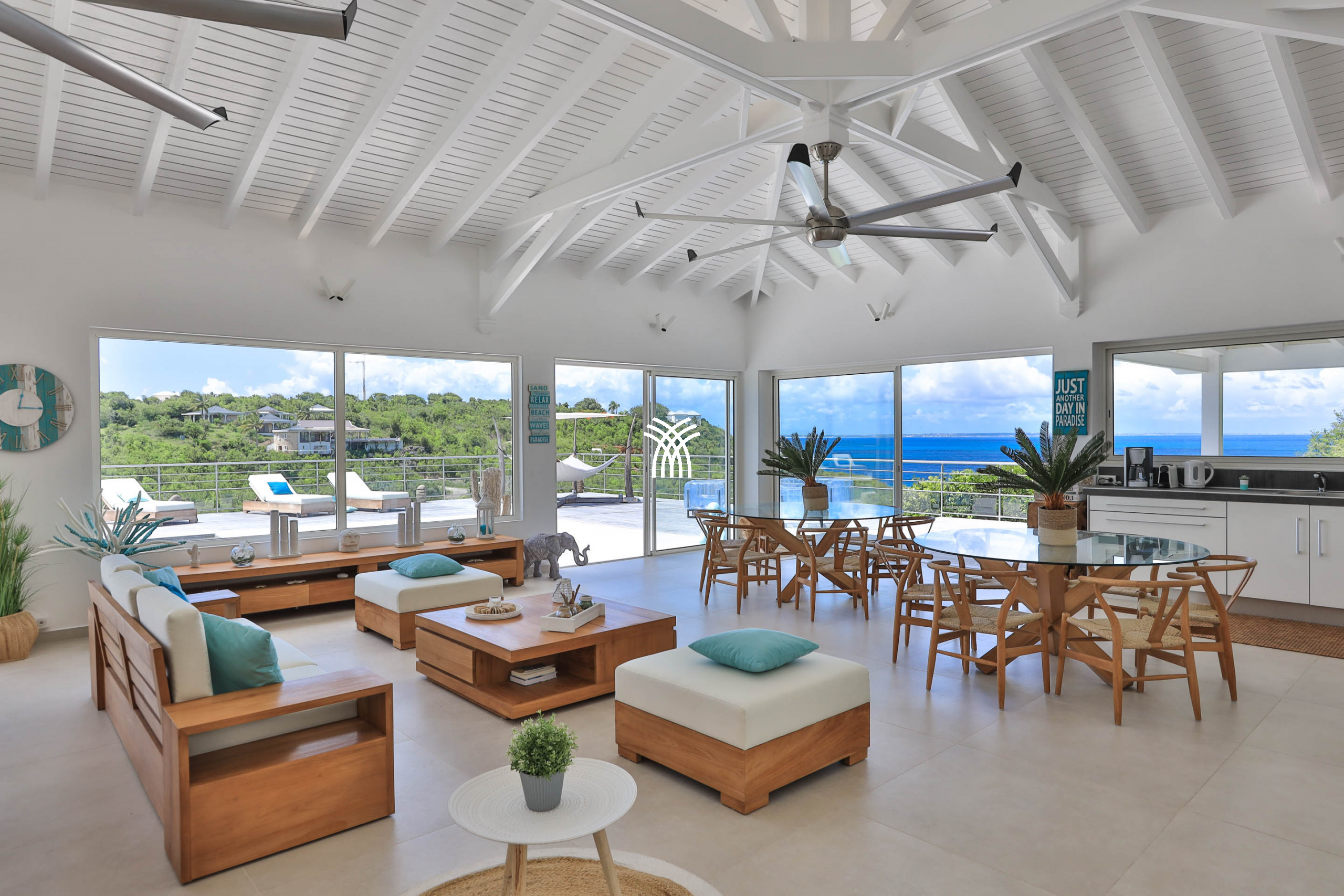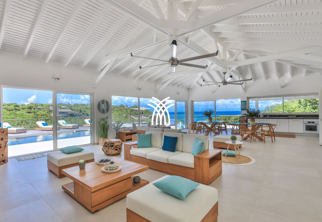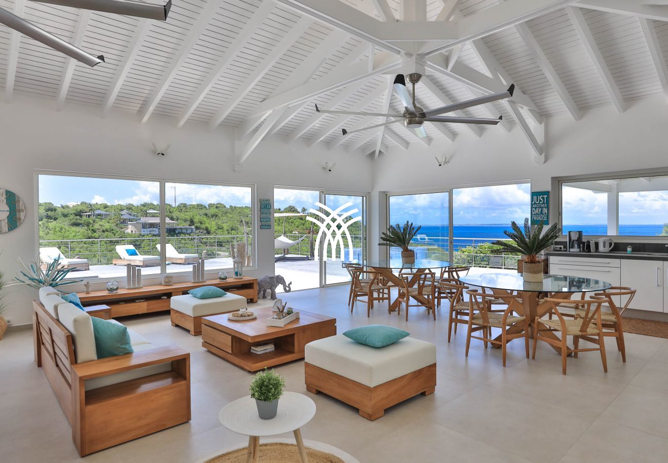 The outdoor space of this prestigious villa is simply exceptional: a huge heated pool facing the sea, a jacuzzi, several belvederes and landscaped terraces invite relaxation and idleness under the Caribbean sun.