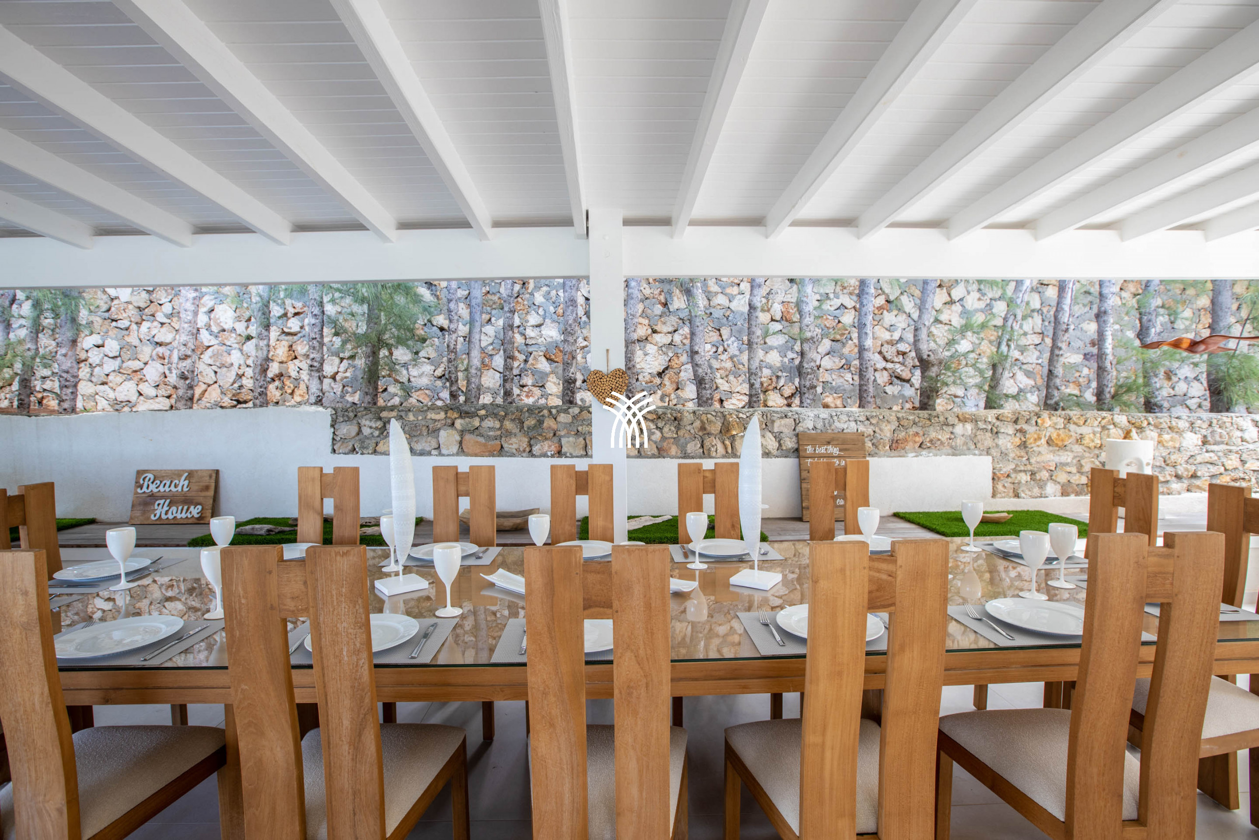 The gourmet kitchen and large outdoor dining area allow for unforgettable moments with family or friends. A private chef is available throughout the stay to prepare 3 meals per day (food and drinks at additional cost), for a personalized culinary experience.