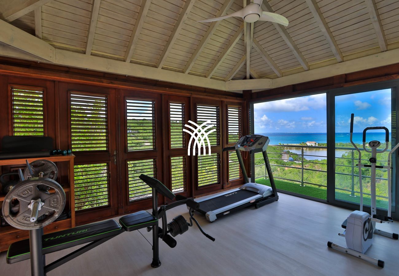 Villa Le Reve also offers rare high-end amenities for a luxury villa rental in Saint Martin: a private tennis court, a spa, a fully equipped gym, a billiard room, as well as an additional multimedia room on the lower level.