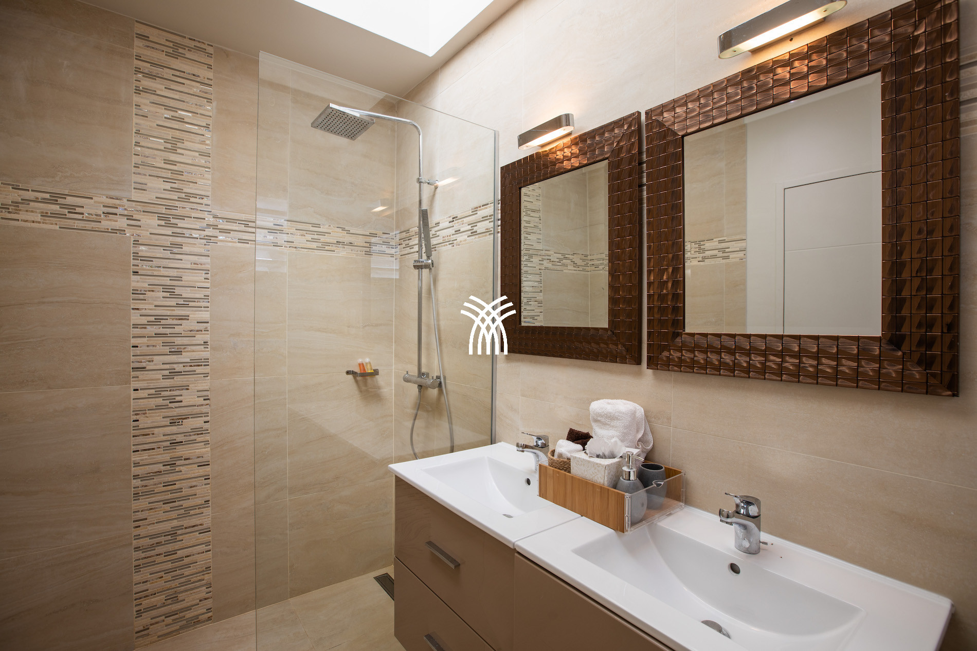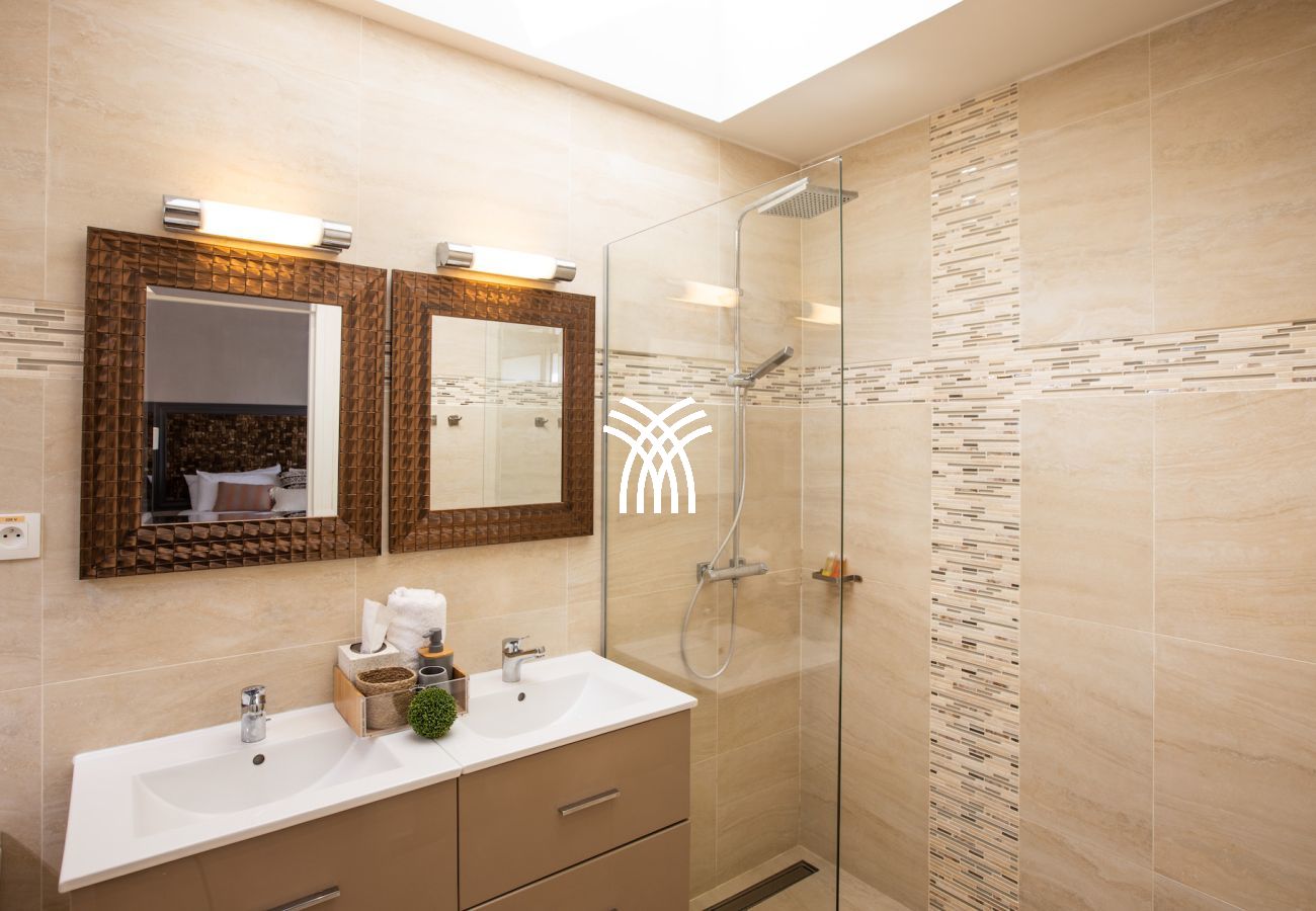 From the moment you arrive, you will be charmed by the villa's vast encompassing terrace, offering an unobstructed panoramic view of the sea and the surrounding hills. An ideal setting to relax in complete tranquility, whether at sunrise or at sunset.