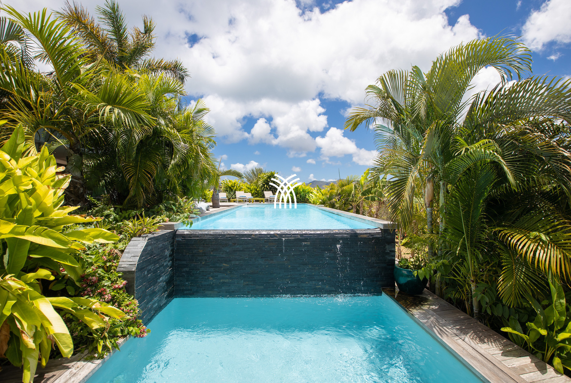 This luxury villa rental in Saint Martin features a superb heated infinity pool with a panoramic view of the surrounding vegetation. A second, smaller pool located on the lower level of the terrace also allows for refreshment and full enjoyment of the outdoors.