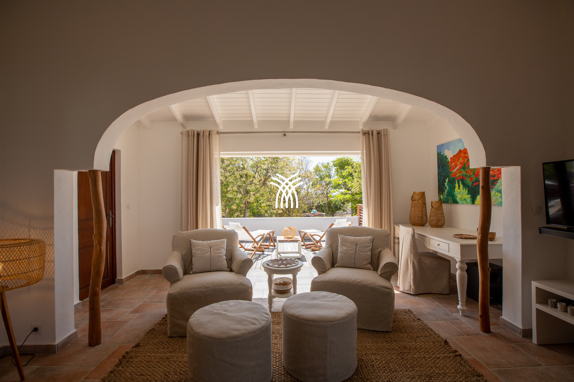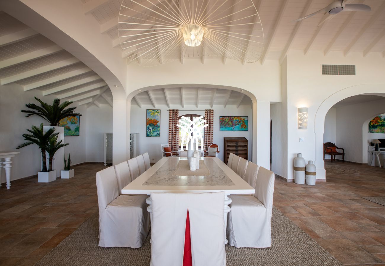 Fully air-conditioned, Villa La Dacha offers a clever blend of contemporary style and Caribbean charm. The interior spaces, bathed in natural light, stand out for their elegance and absolute comfort. The high ceilings, refined furniture, and large openings to the outside create a warm and luxurious atmosphere.