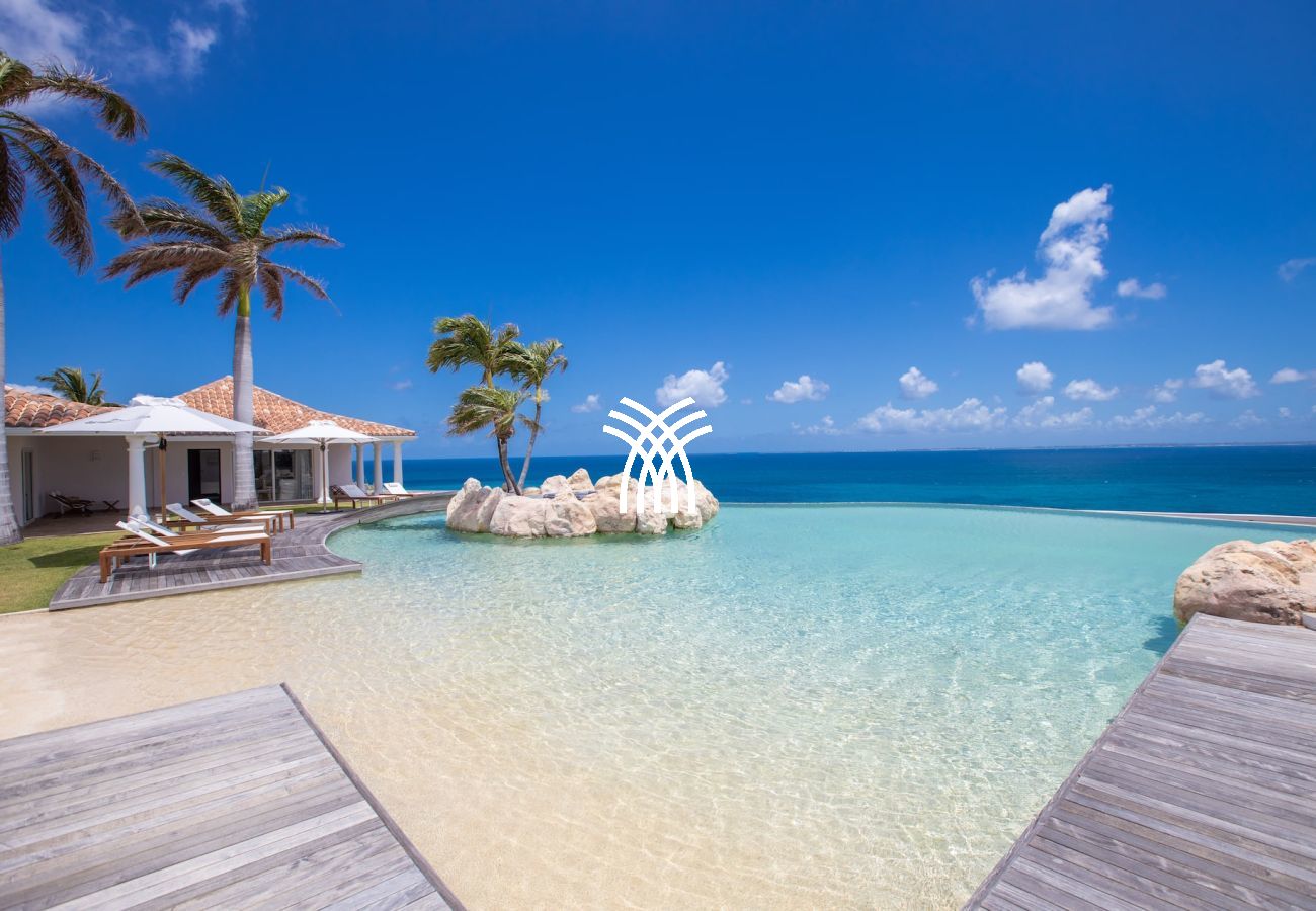La Villa La Dacha is a luxury villa for rent in Saint Martin, located in the heart of Terres Basses, one of the most exclusive and private neighborhoods on the island. Perched on the side of a cliff, this luxury villa rental in Saint Martin offers a spectacular panoramic view of the Caribbean Sea and the island of Anguilla.