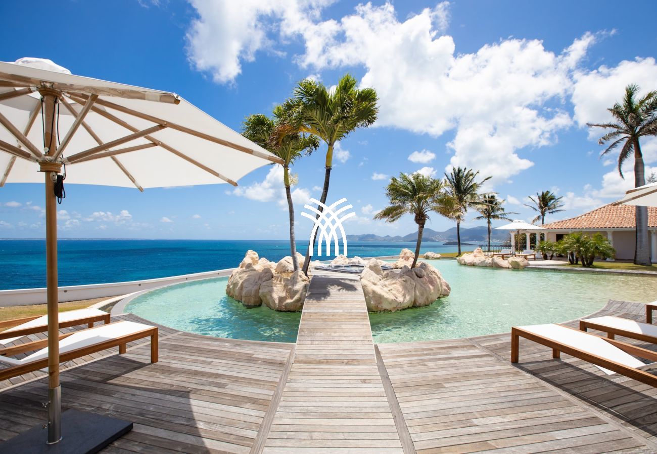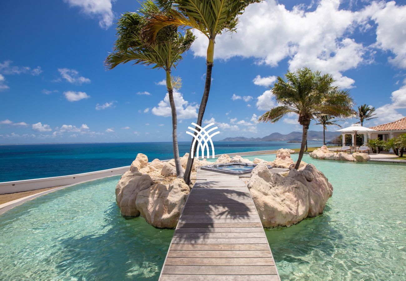 The Villa Belle Etoile is a luxury villa for rent in Saint Martin, located in the exclusive Terres Basses neighborhood. This exceptional property with a French Caribbean style offers a spectacular panoramic view of the ocean and neighboring islands, including Anguilla. The infinity pool seems to merge with the infinite shades of blue of the Caribbean Sea, creating an idyllic setting for a dream stay.