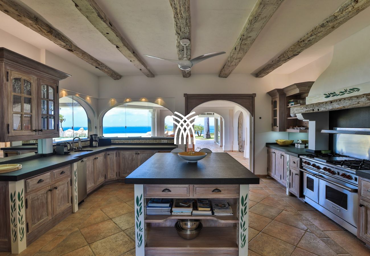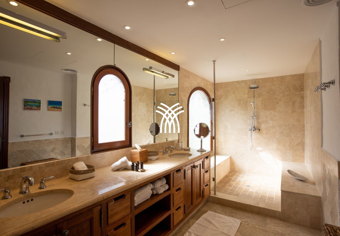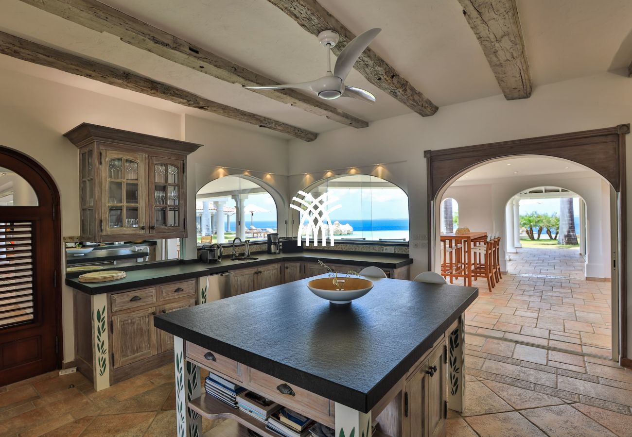 The gourmet kitchen is perfectly equipped with noble materials and high-end equipment. A private chef is available throughout the year to prepare guests' meals (2 meals per day in low and high season, 3 meals during holidays — cost of groceries extra). A dedicated villa manager also ensures that each stay in Saint Martin is unforgettable.