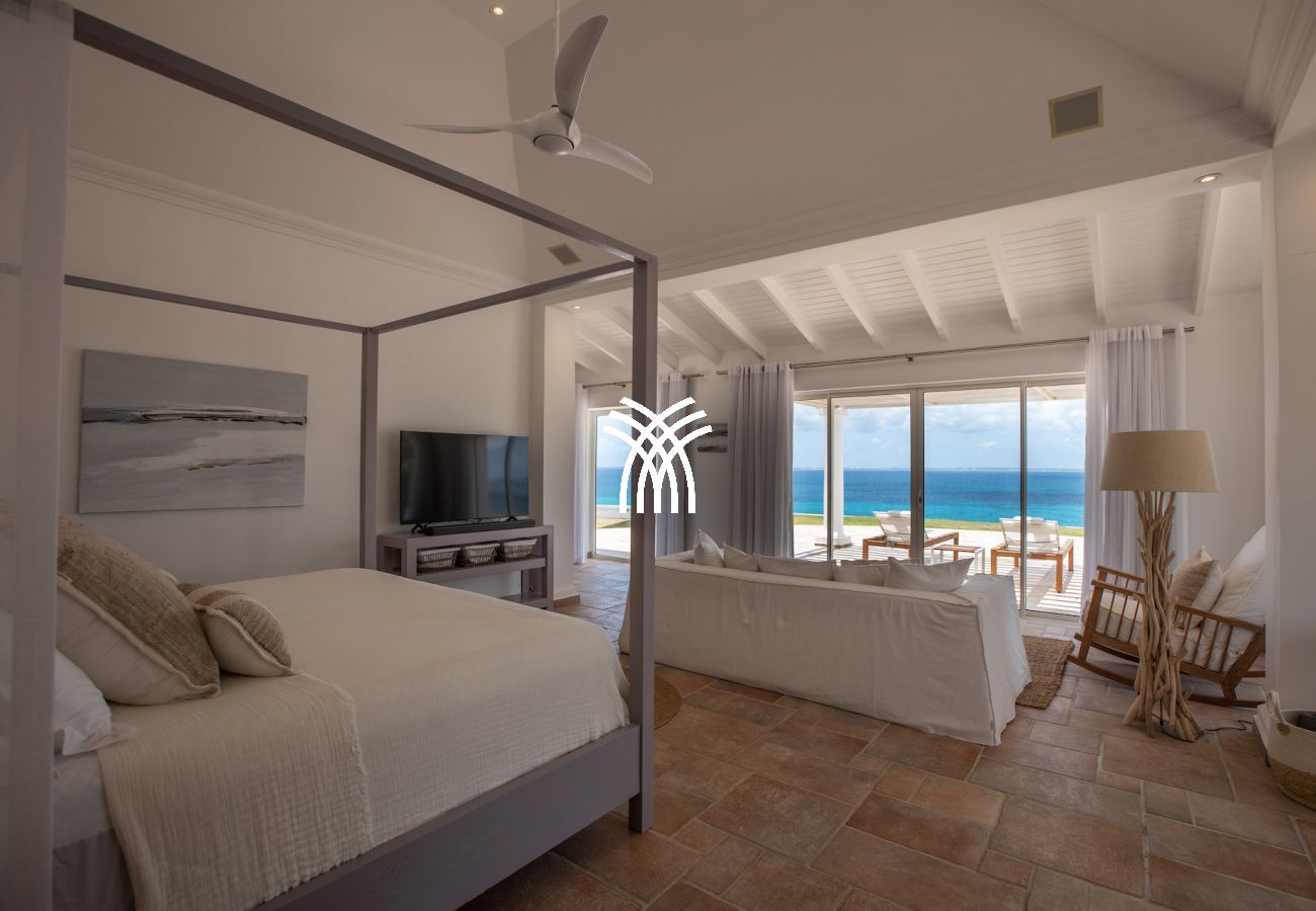 Four bedrooms of equal size have a view of the Caribbean Sea and are at the level of the pool terrace. The 5th bedroom and its ensuite bathroom are on the lower level with views of the Caribbean Sea. This bedroom also includes a kitchenette.