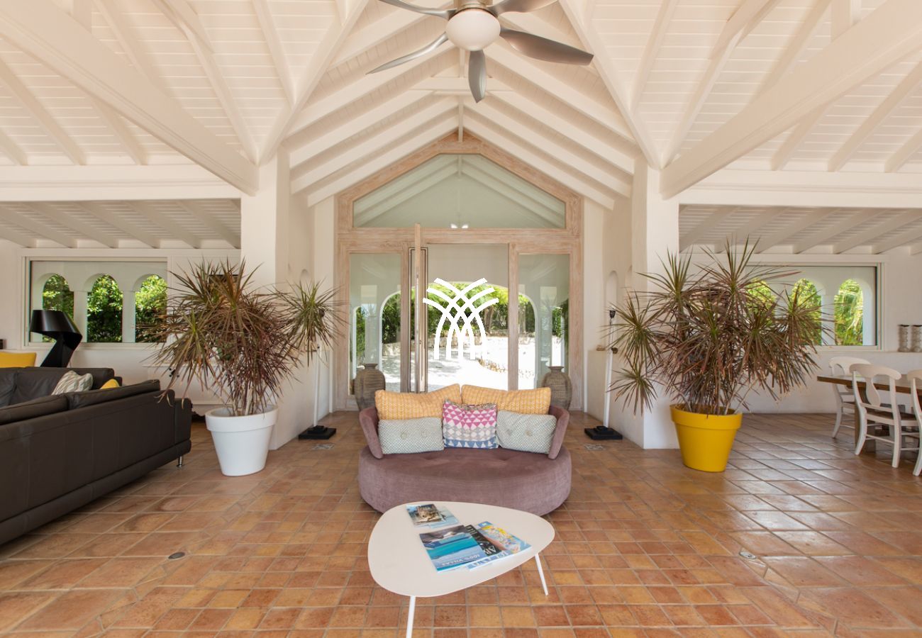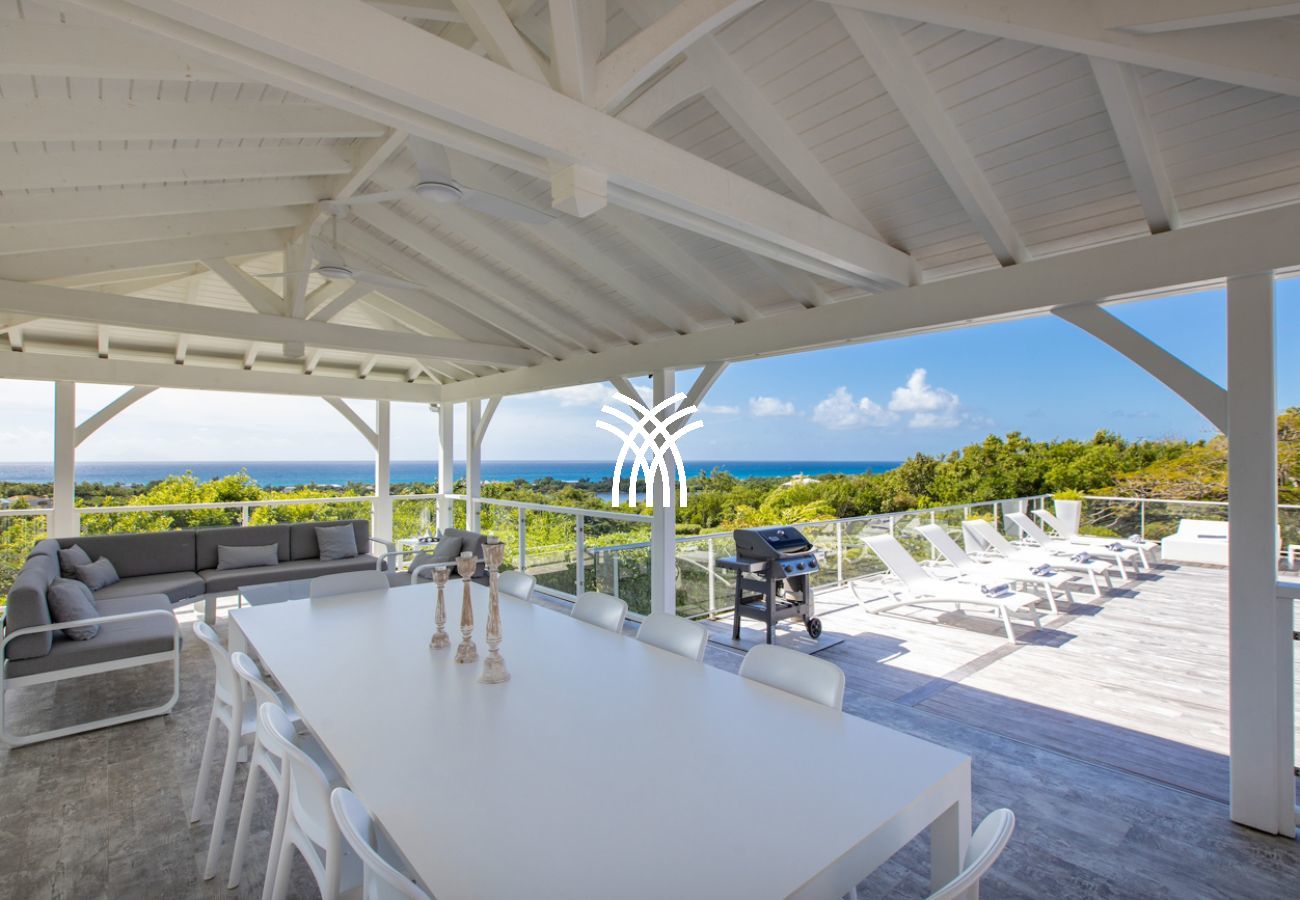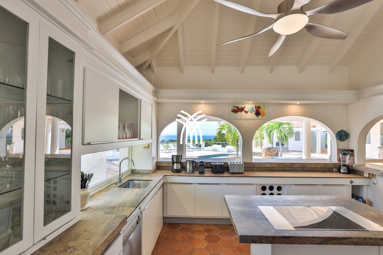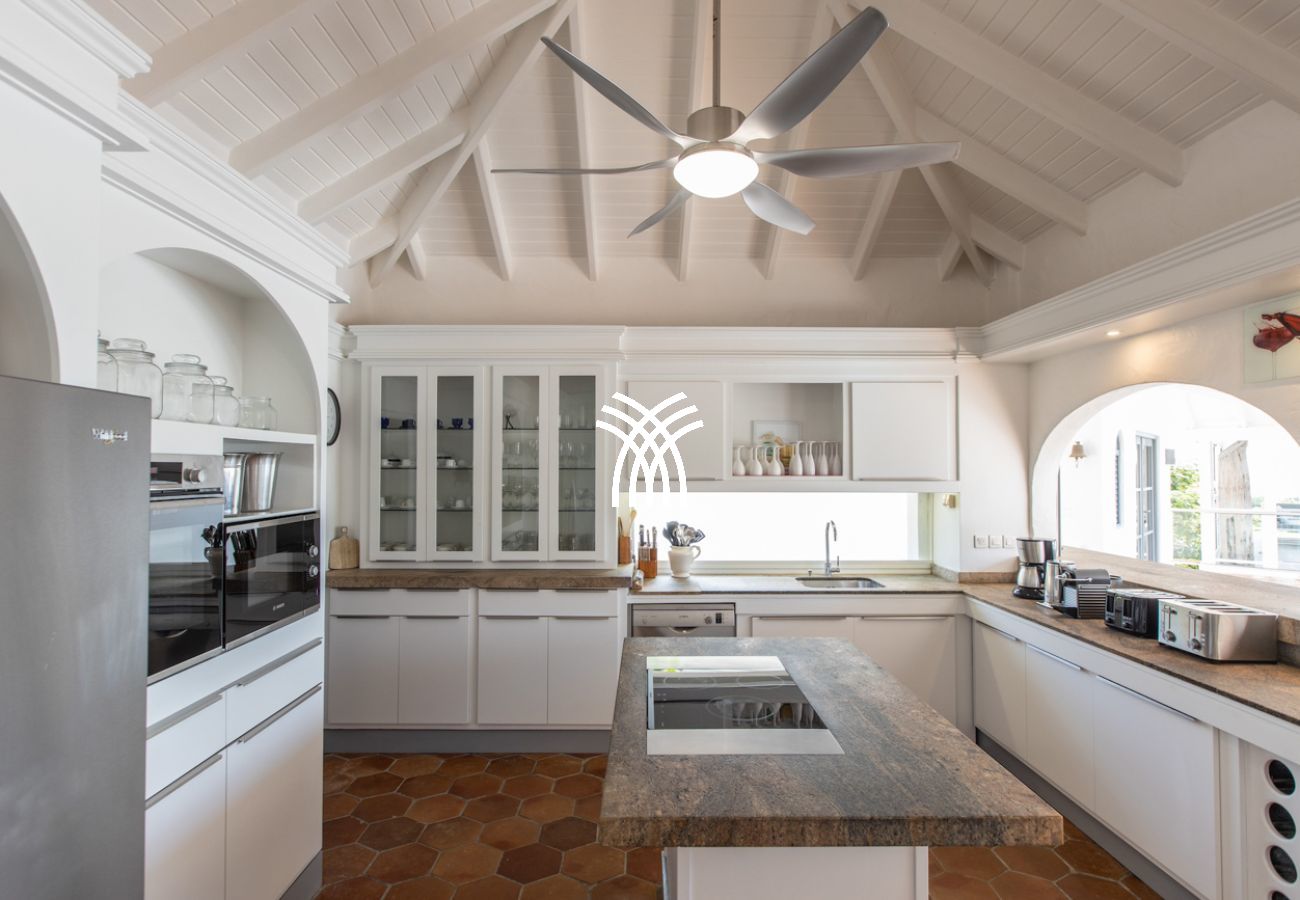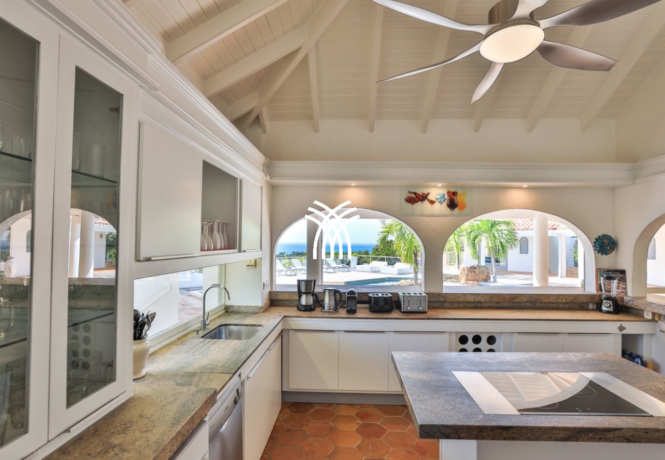 Gourmet cuisine is another asset of this luxury villa for rent in Saint Martin. Its elegant design, high-end equipment, and large arched windows open to the terrace make it a central and bright living space.