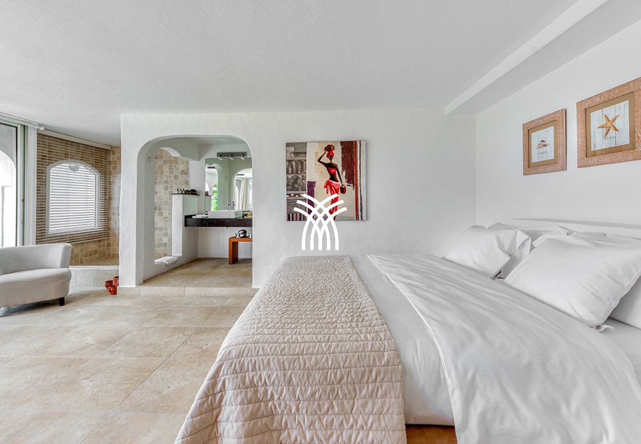 This exceptional villa has 5 bedrooms, all with private bathrooms. Three bedrooms are located on the main level, with direct access to the magnificent infinity pool, ideal for relaxing while facing the sea. The other two bedrooms are located on the lower level, each with an independent external access.