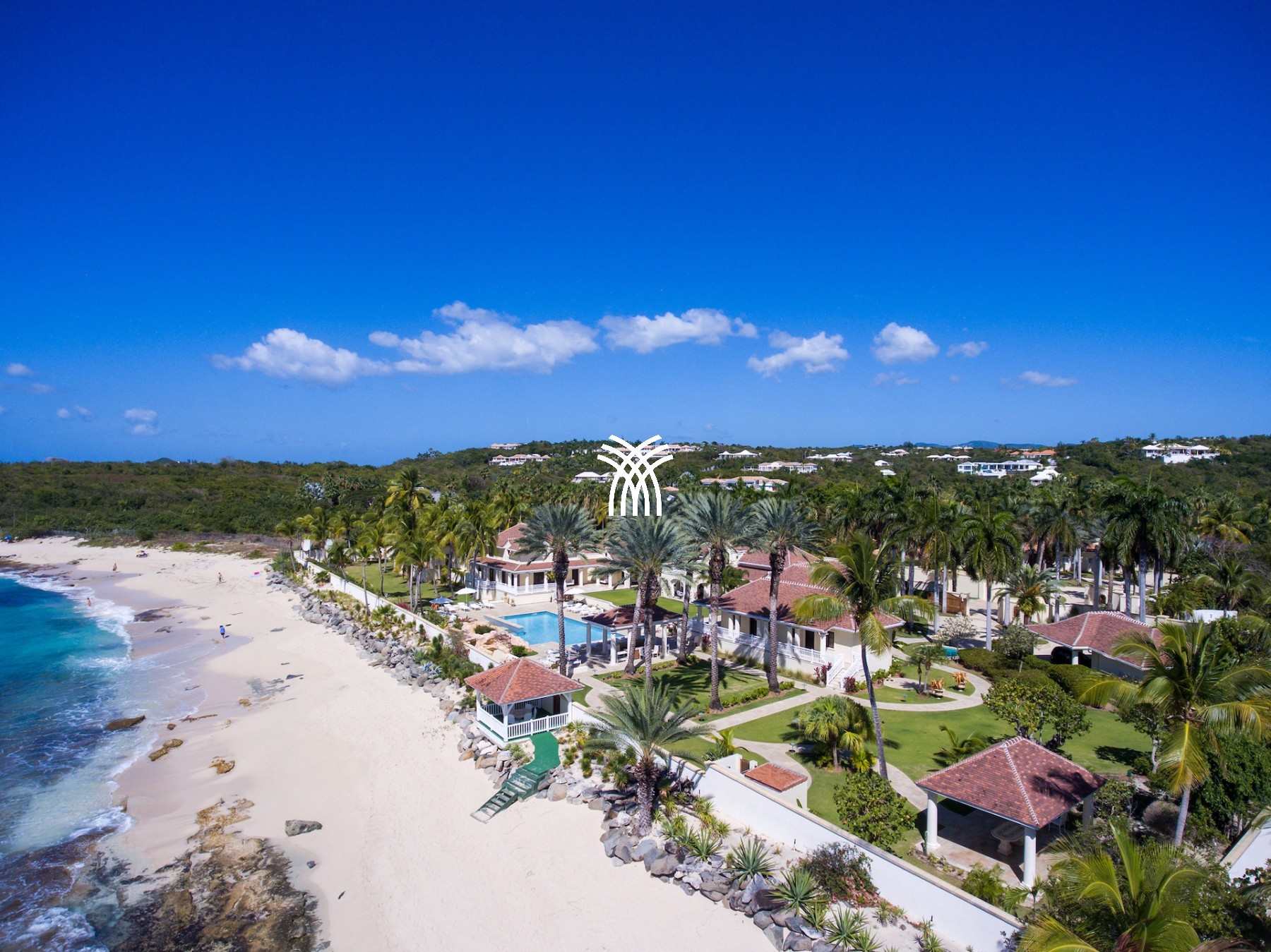 The Château des Palmiers embodies the most accomplished expression of luxury villa rental in Saint-Martin. Nestled in the heart of the prestigious Terres Basses domain, directly on the beach of the mythical Plum Bay, this private estate offers a rare experience where refinement, space, and tailored service reach an absolute level of excellence. Here, the Caribbean Sea becomes the natural extension of the property, accessible in a few steps, in a preserved and exclusive setting.