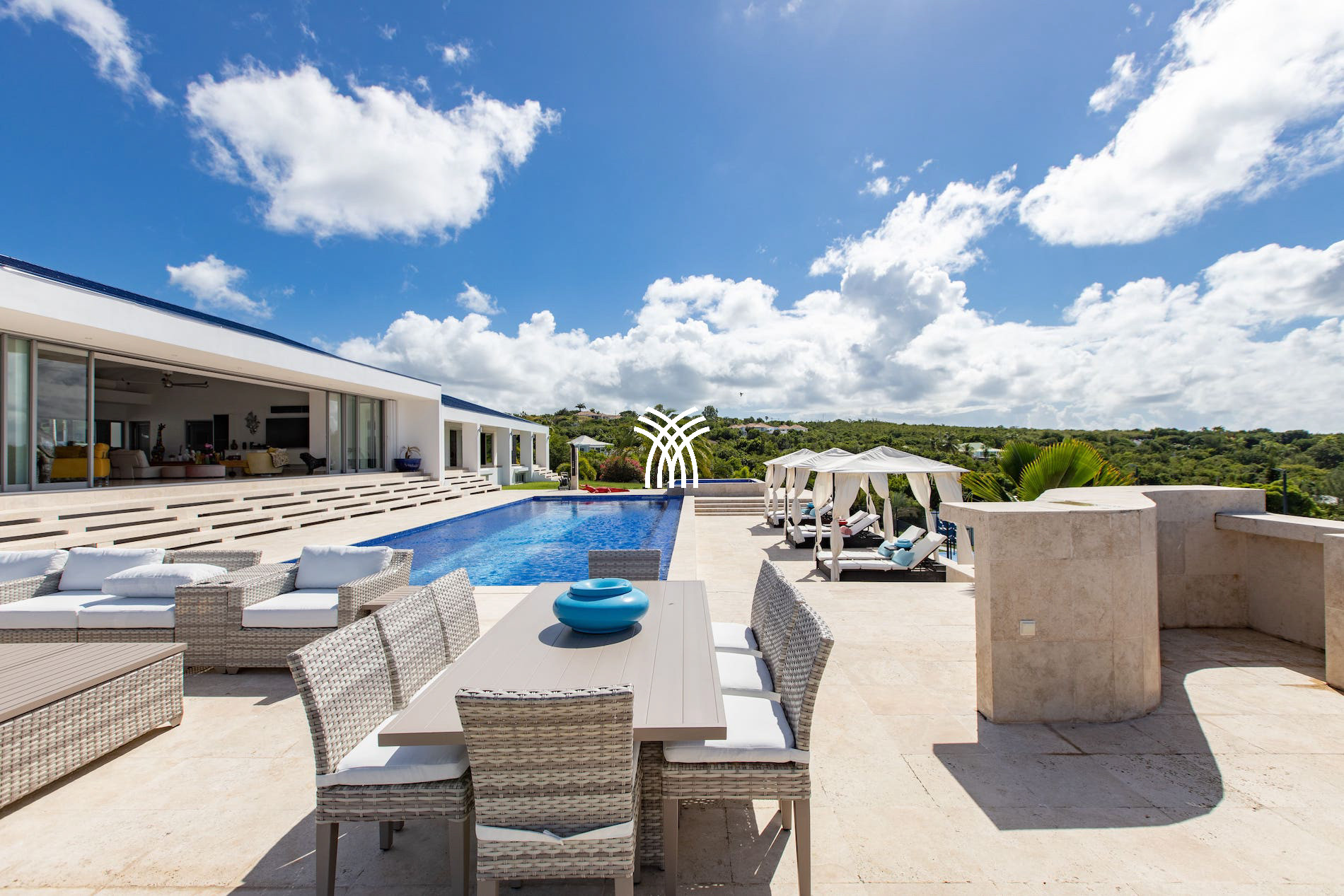 The outdoor spaces of Villa El Grande Azure are breathtaking. The large pool facing the sea invites absolute relaxation. The spacious landscaped terraces allow you to enjoy incredible views and memorable sunsets over the Caribbean Sea.
