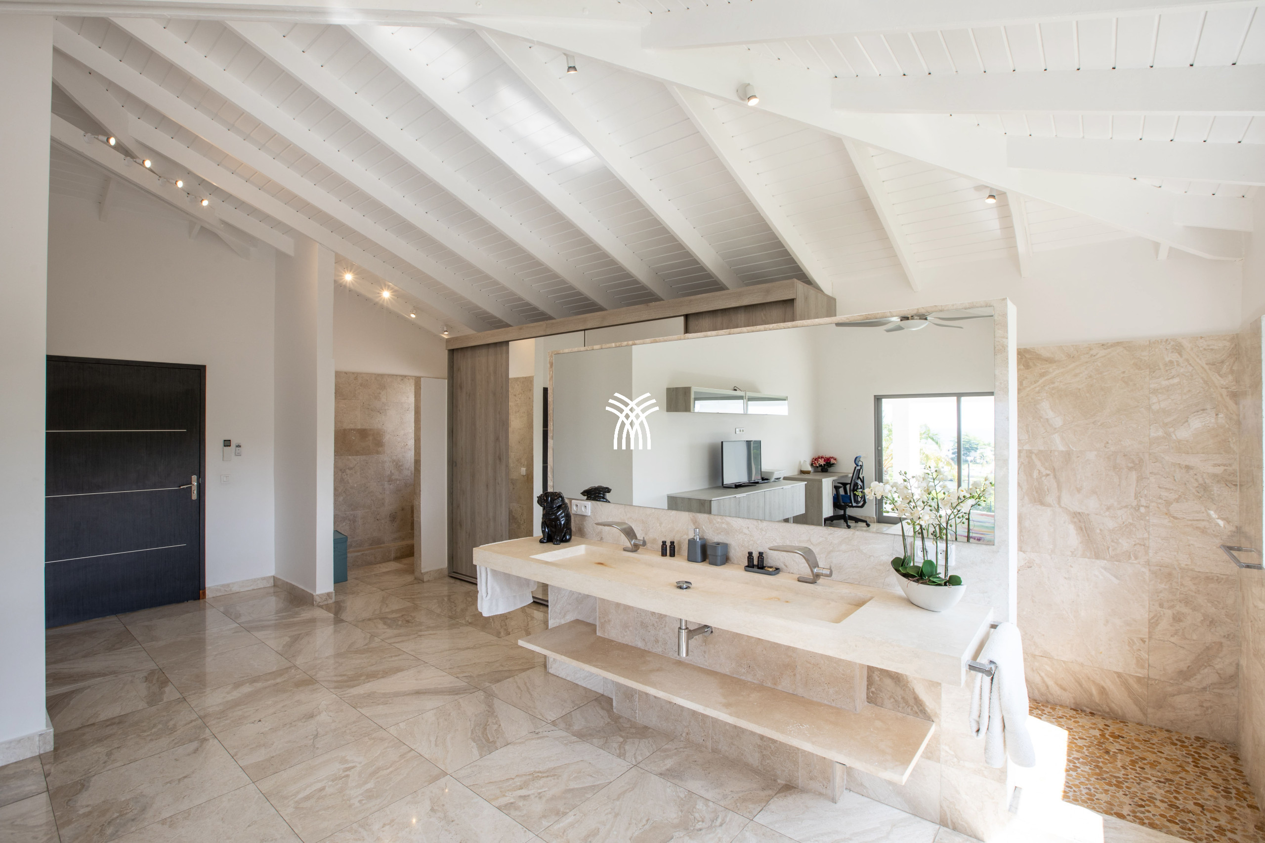 Fully air-conditioned, Villa La Dacha offers a clever blend of contemporary style and Caribbean charm. The interior spaces, bathed in natural light, stand out for their elegance and absolute comfort. The high ceilings, refined furniture, and large openings to the outside create a warm and luxurious atmosphere.