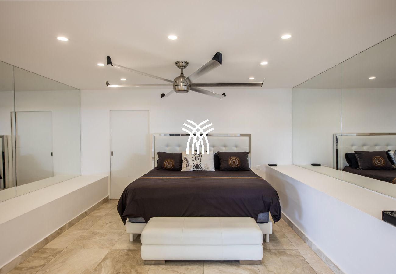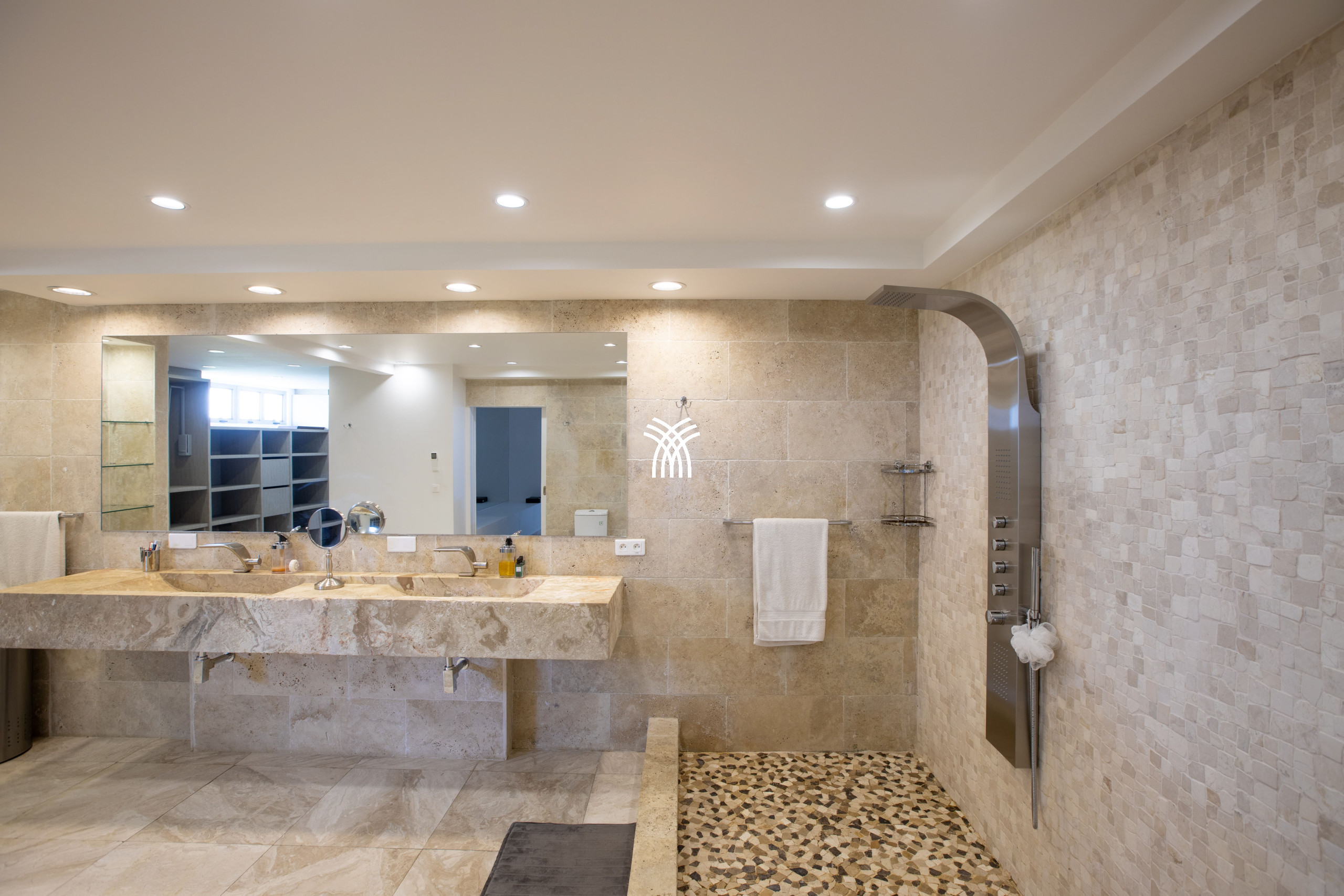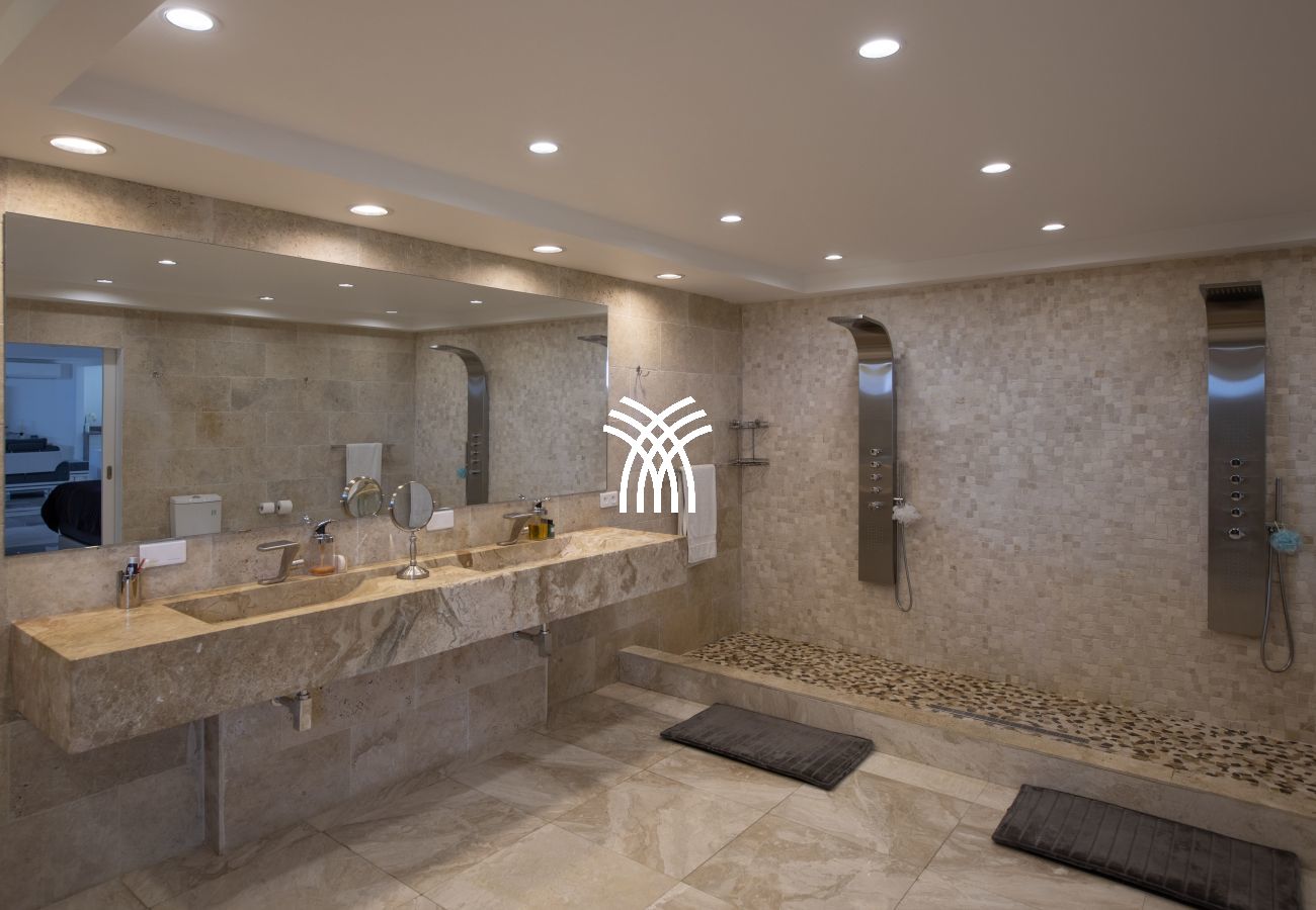 This exceptional villa has 5 bedrooms, all with private bathrooms. Three bedrooms are located on the main level, with direct access to the magnificent infinity pool, ideal for relaxing while facing the sea. The other two bedrooms are located on the lower level, each with an independent external access.