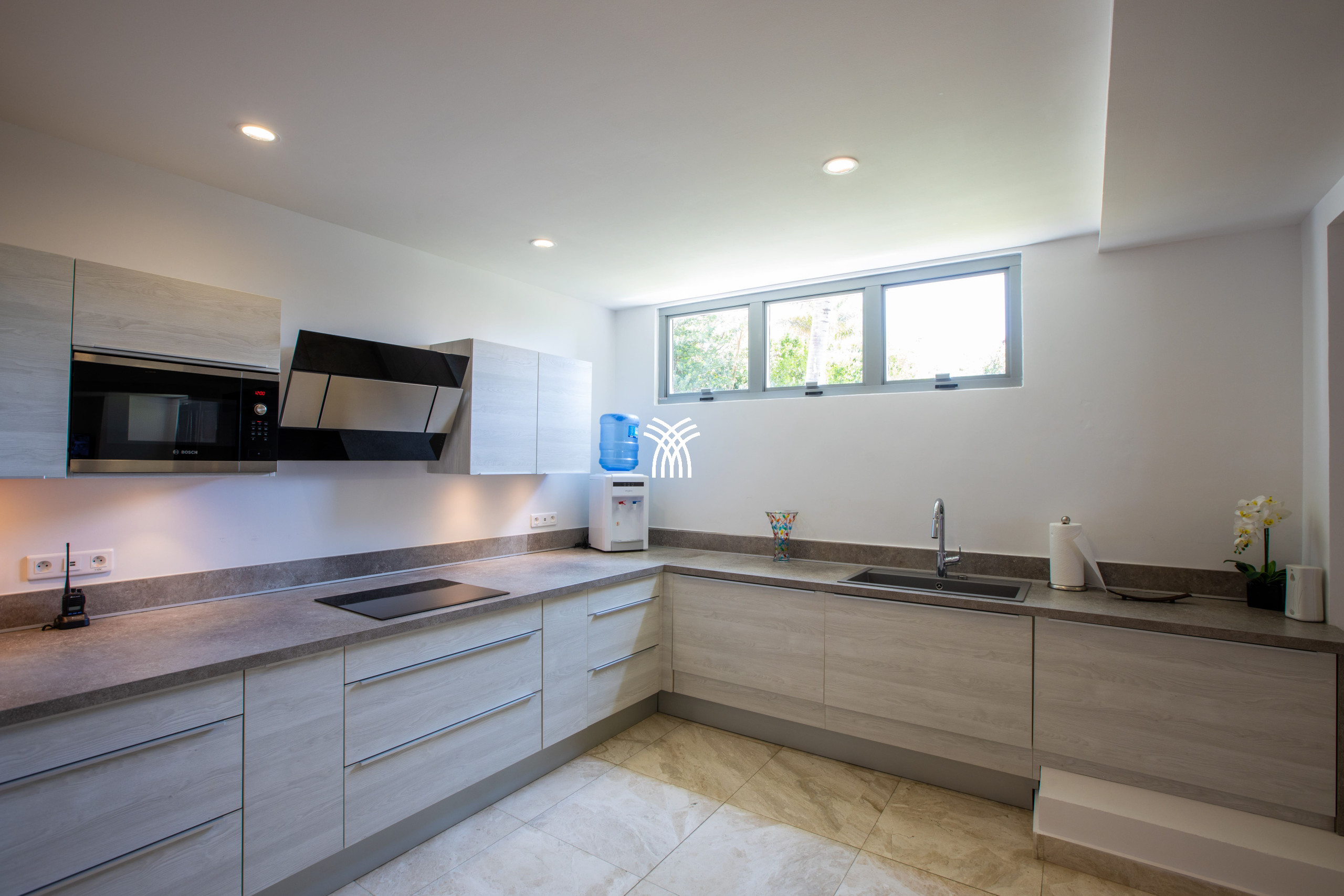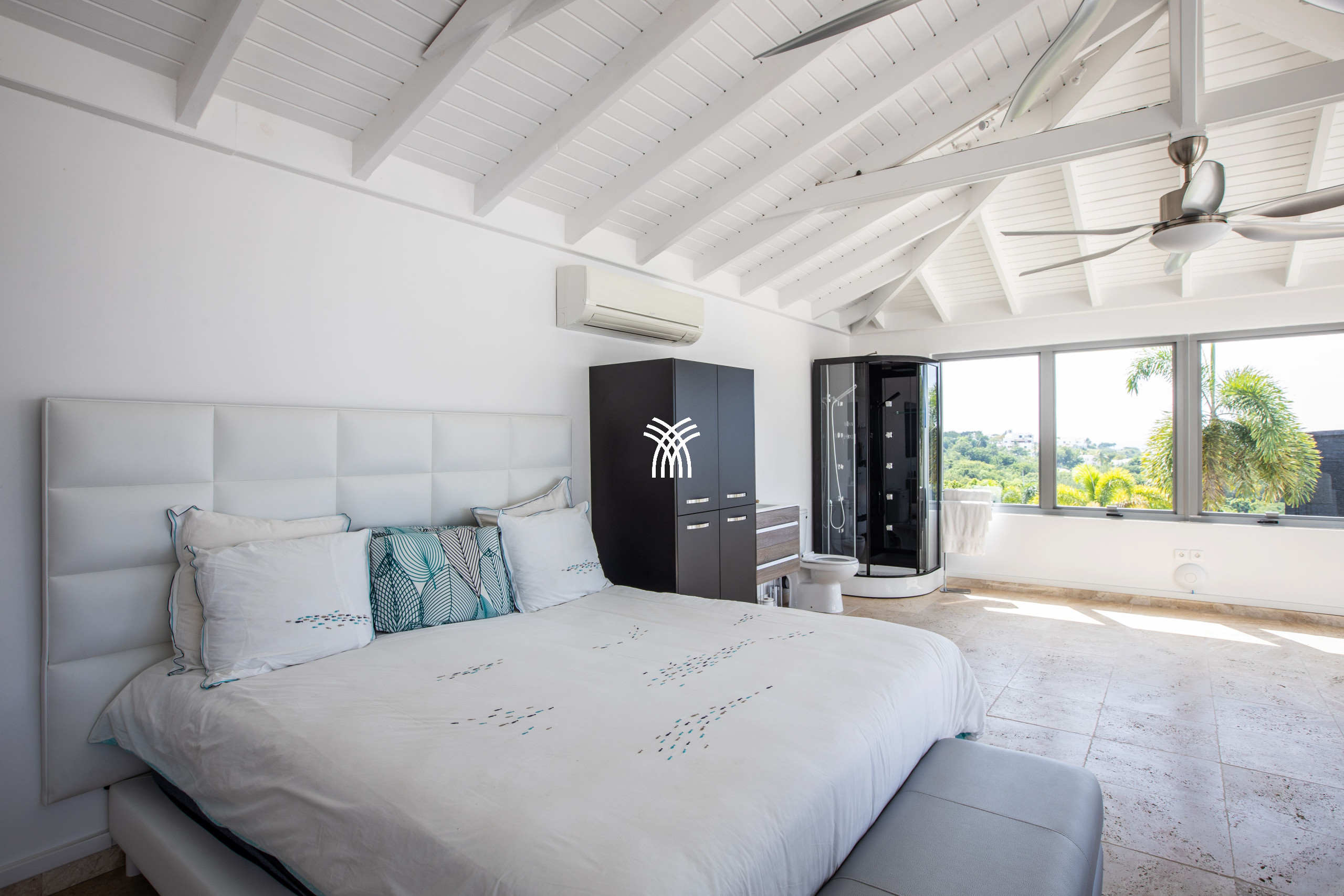 Perfect for a family stay or a trip with friends, this luxury villa rental in Saint Martin offers 5 bedrooms, all with private bathrooms. Three bedrooms are located near the pool and outdoor terraces. The main suite, a true private apartment, is located on a lower level with its own kitchen, a large walk-in closet, and a sleeping area offering peace and privacy.