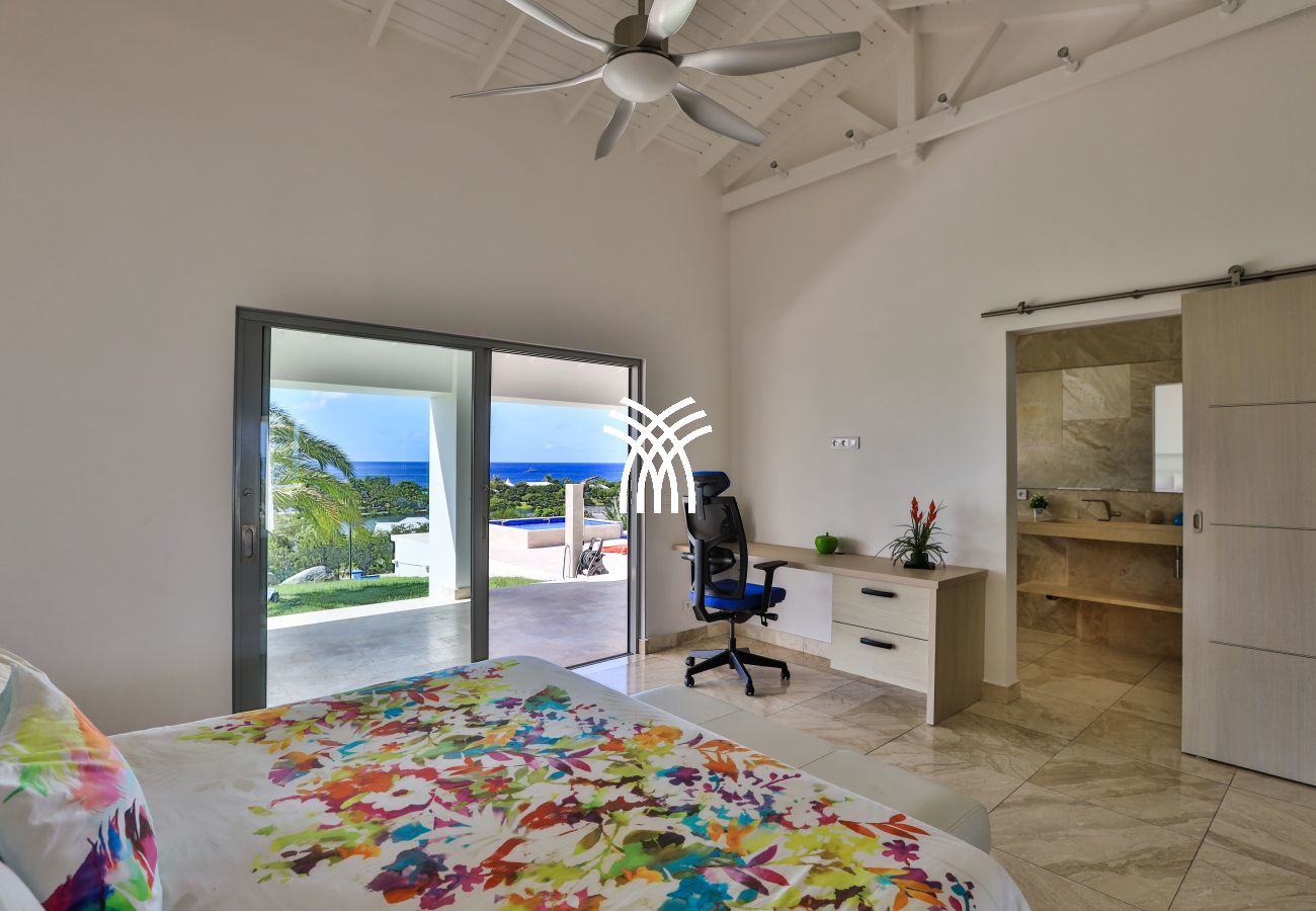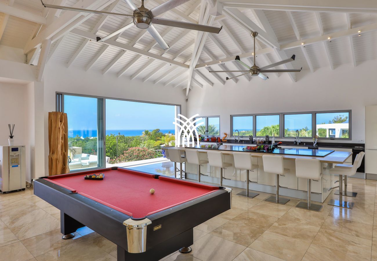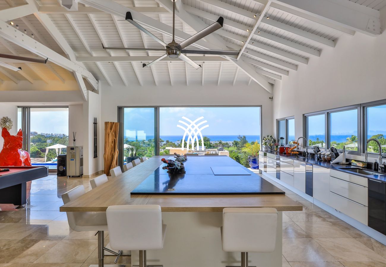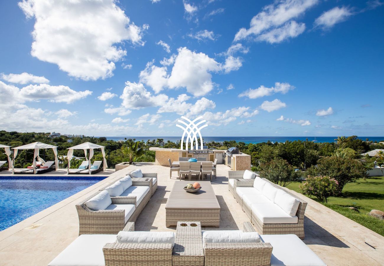 The Villa El Grande Azure is a luxury villa for rent in Saint Martin, a true gem facing the Caribbean Sea. This exceptional property located in Terres Basses offers a breathtaking panoramic view of the ocean and an ultra-private setting for an unforgettable stay.