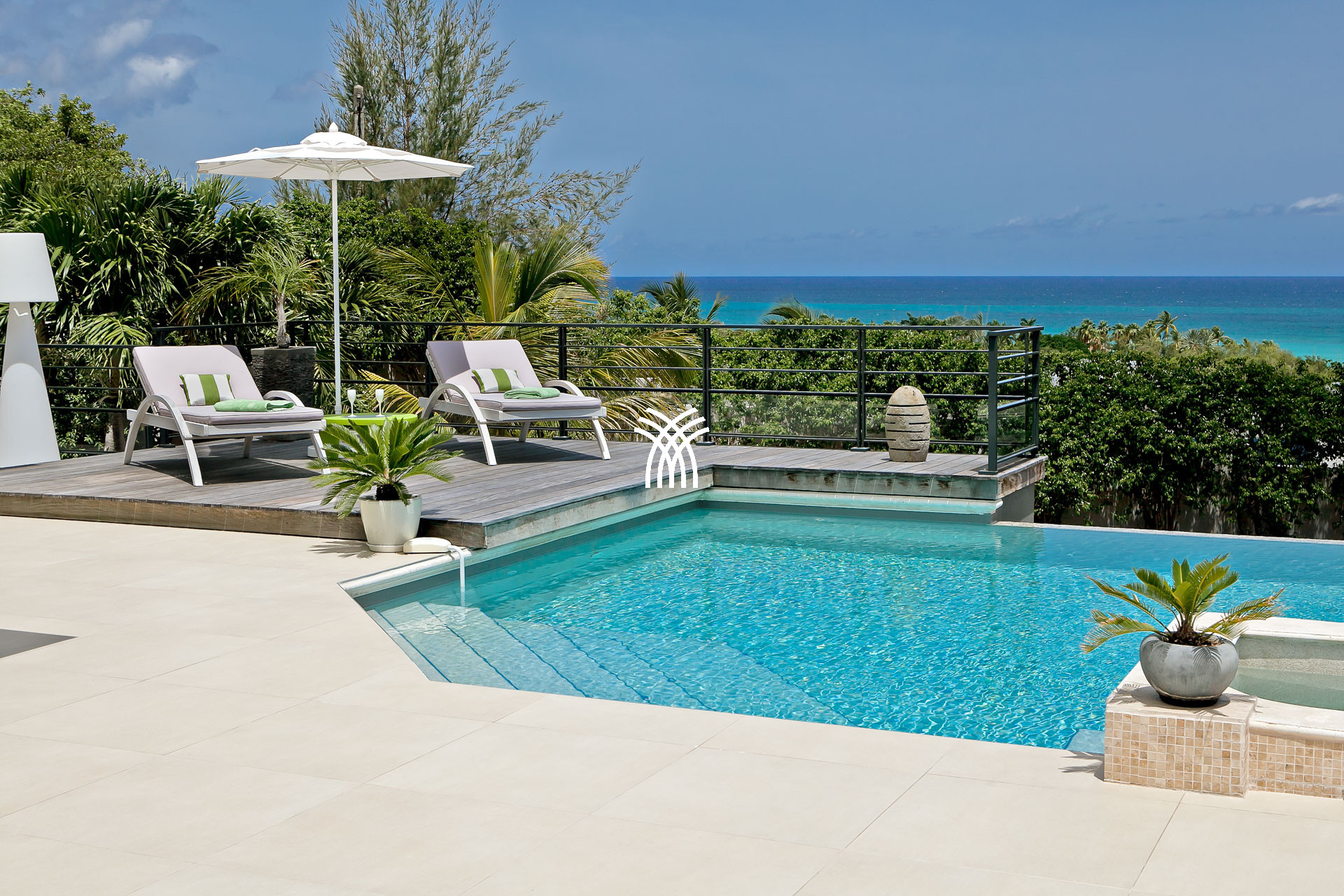 A large deck, on each side of the heated infinity pool, welcomes you to enjoy the sublime sunsets over the Caribbean Sea.