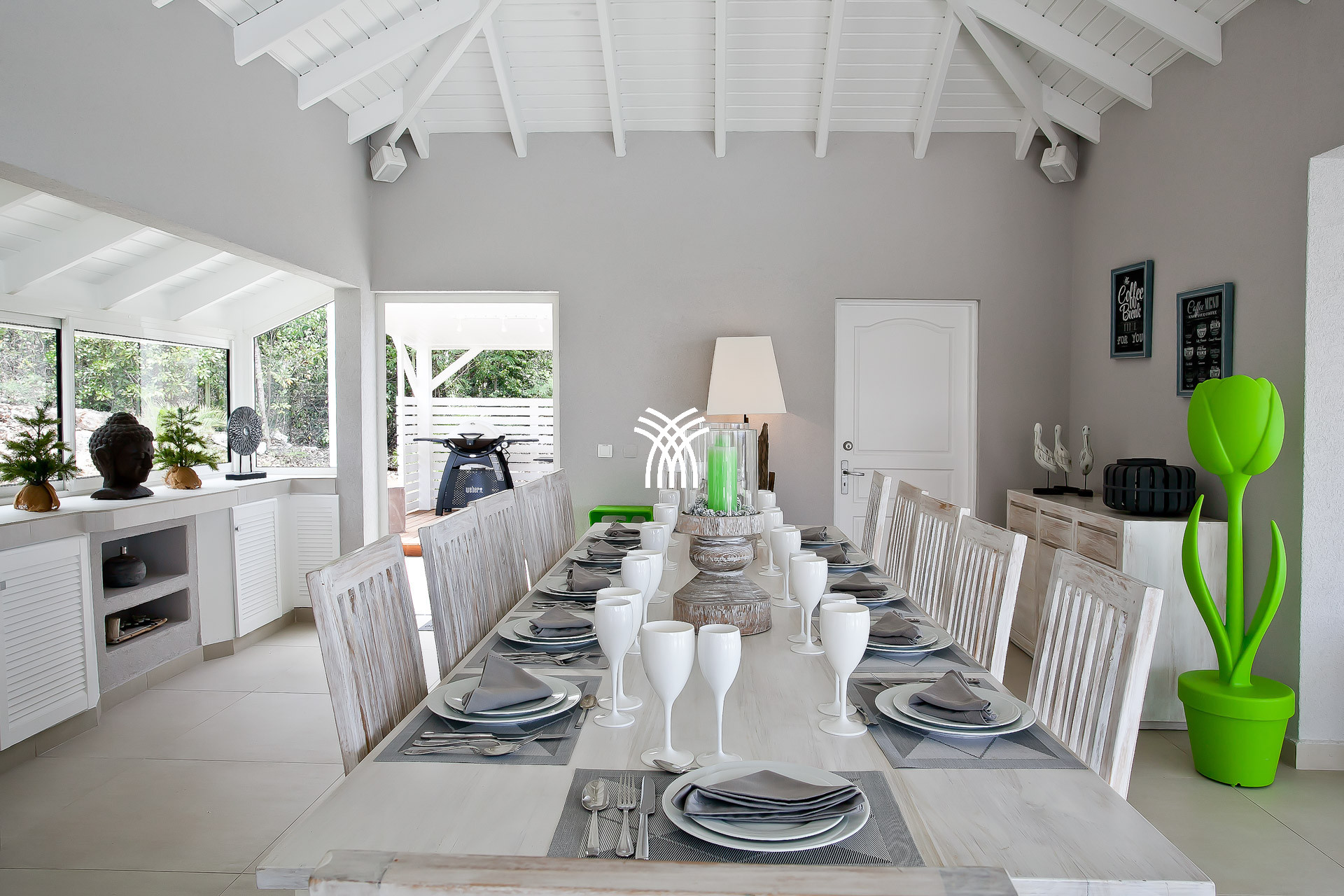 Fully air-conditioned, Villa La Dacha offers a clever blend of contemporary style and Caribbean charm. The interior spaces, bathed in natural light, stand out for their elegance and absolute comfort. The high ceilings, refined furniture, and large openings to the outside create a warm and luxurious atmosphere.