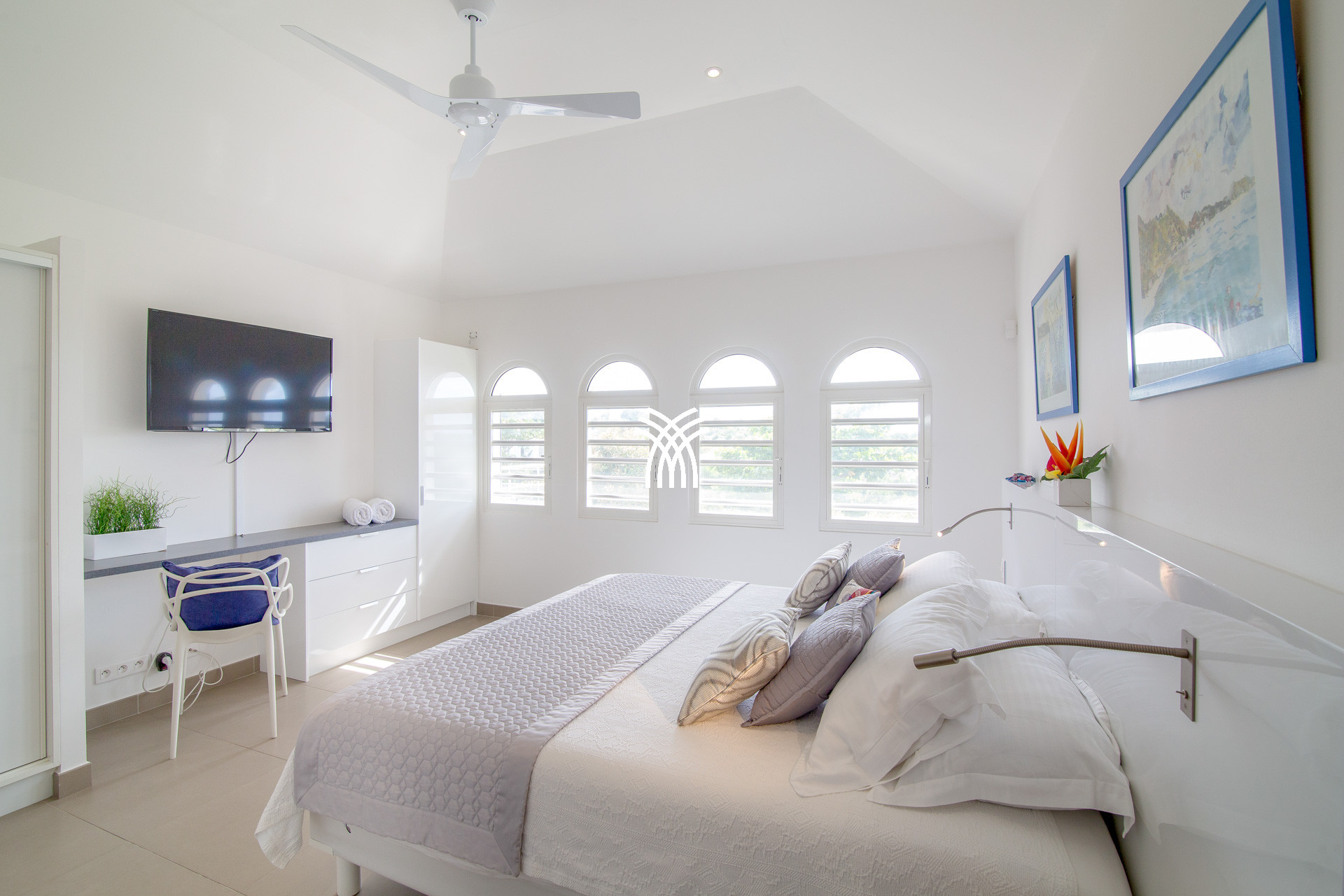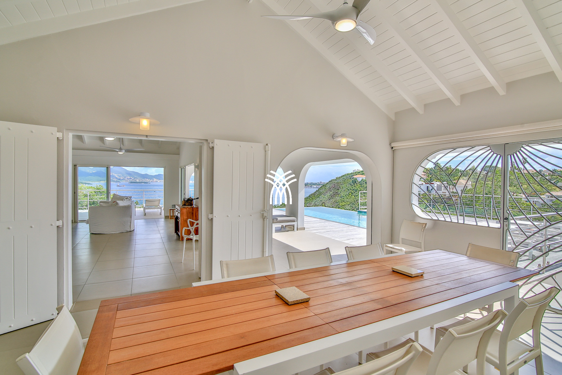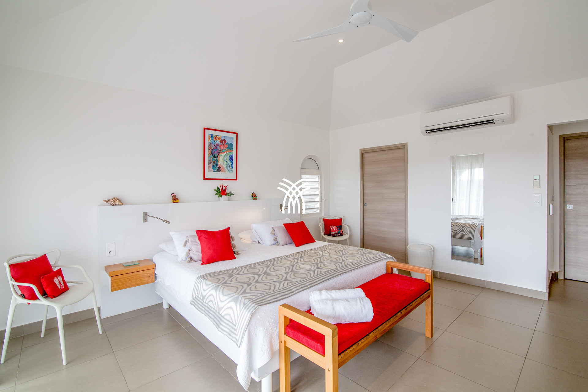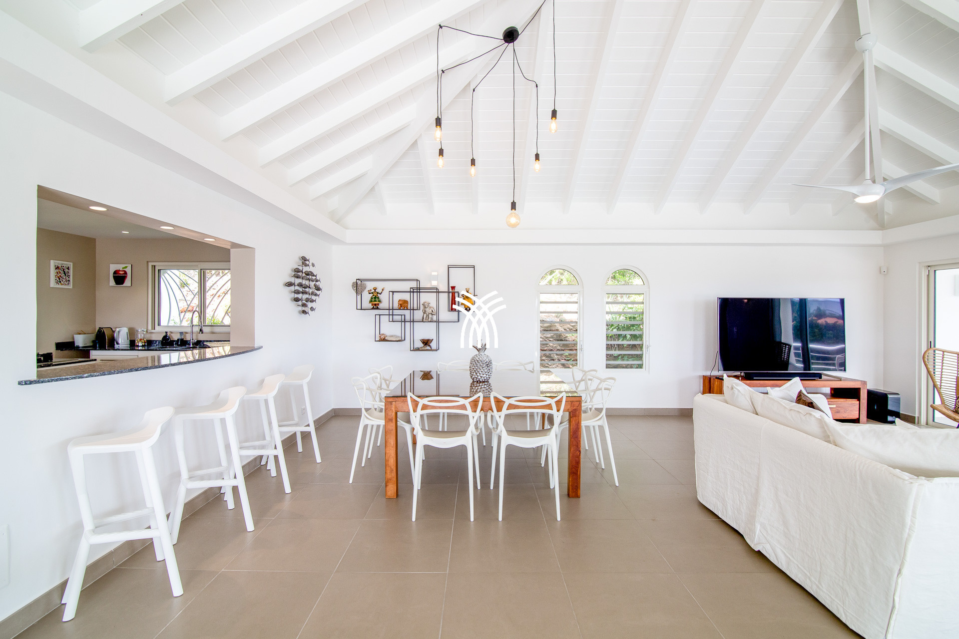 Fully air-conditioned, Villa La Dacha offers a clever blend of contemporary style and Caribbean charm. The interior spaces, bathed in natural light, stand out for their elegance and absolute comfort. The high ceilings, refined furniture, and large openings to the outside create a warm and luxurious atmosphere.